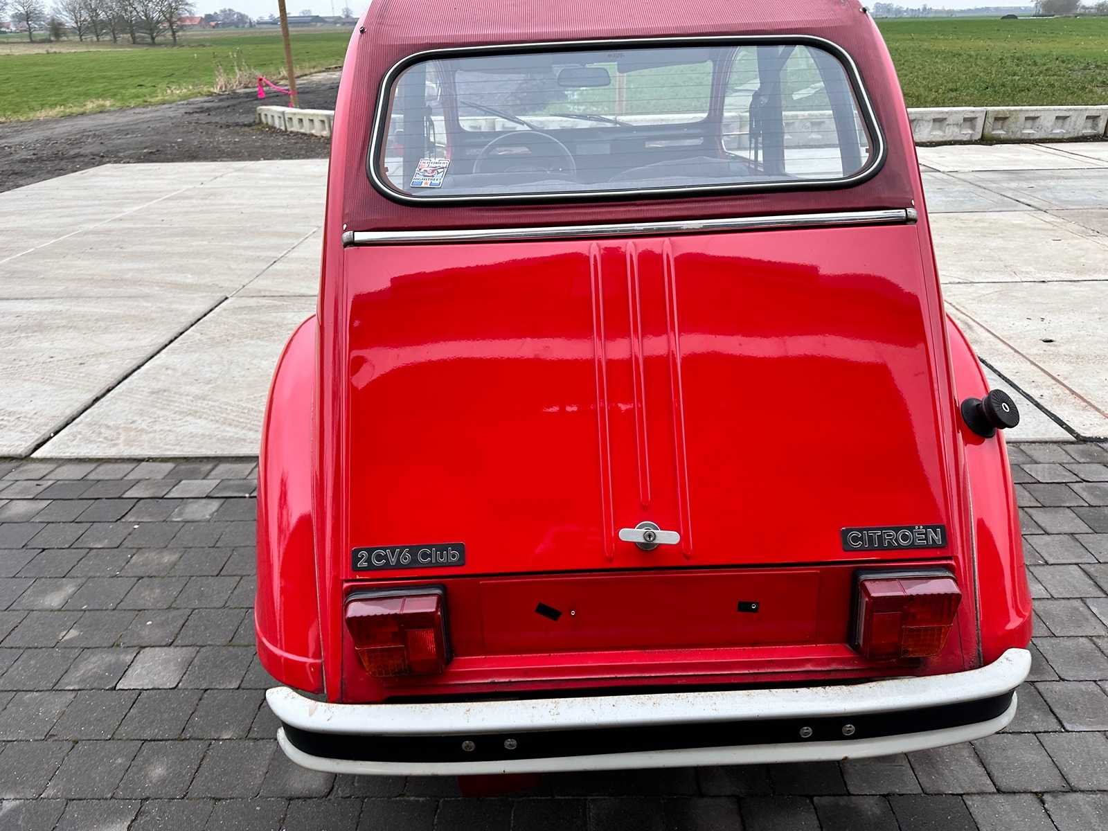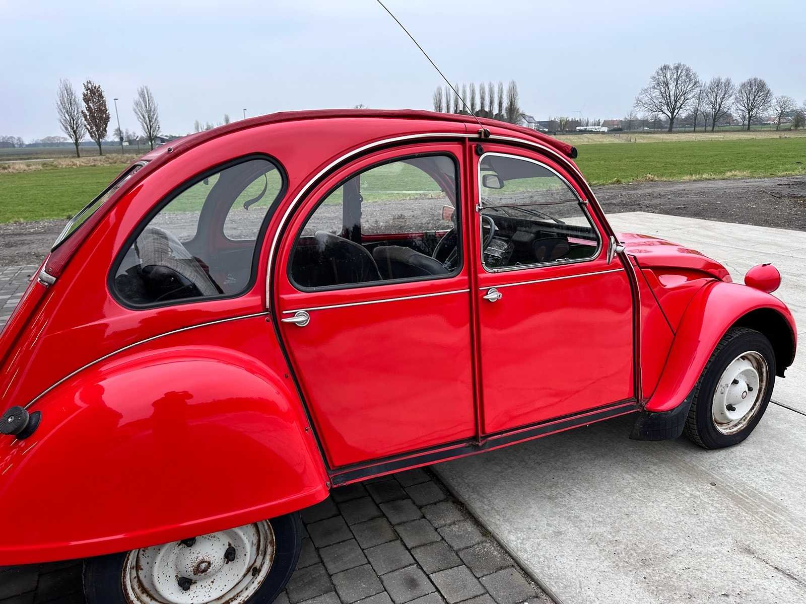 Eerste eigenaar tot 09/2025. Eerste lak. Auto rijdt en remt prima. APK tot 11/2025. No Type: 2CV6 Club Bouwjaar: 30-10-1987 Chassisnummer: VF7AZKA00KA295865 Afgelezen kilometerstand: 38136 Datum eerste toelating (NL): 30-10-1987 Boorddocumenten aanwezig?: true Nationaliteit documenten: Nederlands Kentekenpapieren compleet?: true Aandrijving: ja Transmissie: manueel Vermogen (pk): 34 Aantal deuren: 5 Aantal zitplaatsen: 4 Aantal sleutels: 1 Startinformatie: start Kleur: rood Cilinderinhoud: 600 Aantal cilinders: 2
