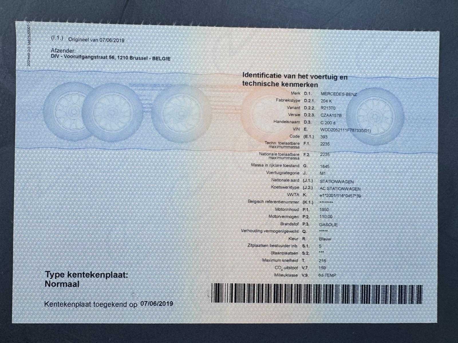 De wagen start en rijdt, op de bumper is wat schade aanwezig voor de rest is het gebruikersschade. Volgende opties zijn aanwezig: -Automatische airco -Achteruitrijcamera -Electrisch dak -Elektrische stoelen -Parkeersensoren v+a -Navigatie -Leren zetels. No Merk: Mercedes-Benz Model: C 200 D Break Type: Stationwagen Bouwjaar: 2019 Afgelezen kilometerstand: 213632km Cilinderinhoud: 1950cc Vermogen (kW): 110kW Brandstof: Diesel Chassisnummer: WDD2052111F787335 Datum eerste toelating: 07/06/2019 Aantal zitplaatsen: 5 Kleur: Blauw Transmissie: Automaat Emissieklasse: Euro 6d Aantal deuren: 5 Aantal sleutels: 2 Nationaliteit documenten: Belgisch Gelijkvormigheidsattest aanwezig: true Vavato voert geen technische keuring uit.: true Airconditioning: true Navigatie: true LED-koplampen: true Leder bekleed: true