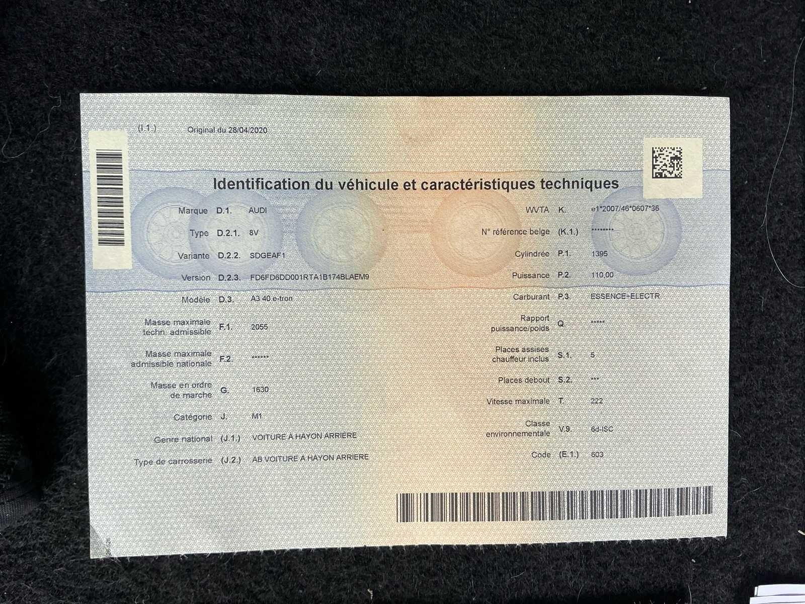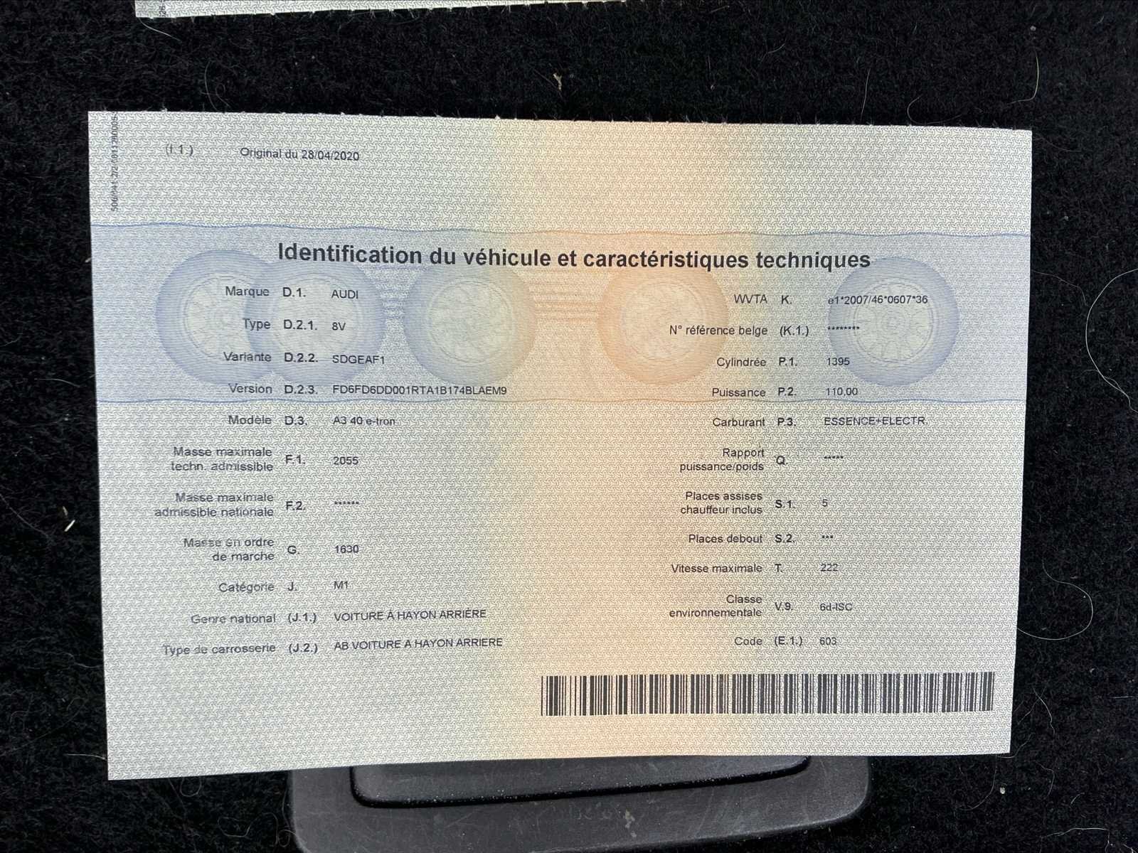 De wagen bevindt zich in goede staat, start en rijdt. Er is enkel wat schade aan de bumper. Opties: -Parkeersensoren V+A -Opendak -Navigatie -Lederen stoelen -Bluetooth No Merk: Audi Model: A3 40 E-Tron Type: Hatchback Hybride Bouwjaar: 2020 Afgelezen kilometerstand: 85970km Cilinderinhoud: 1395cc Vermogen (kW): 110kW Brandstof: Benzine+Elektrisch Chassisnummer: WAUZZZ8V8LA029761 Datum eerste toelating: 28/04/2020 Aantal zitplaatsen: 5 Kleur: Donkerblauw Transmissie: Automaat Emissieklasse: Euro 6d Aantal deuren: 5 Nationaliteit documenten: Belgisch Gelijkvormigheidsattest aanwezig: true oplaadkabel : Aanwezig Vavato voert geen technische keuring uit.: true Airconditioning: true Navigatie: true Leder bekleed: true