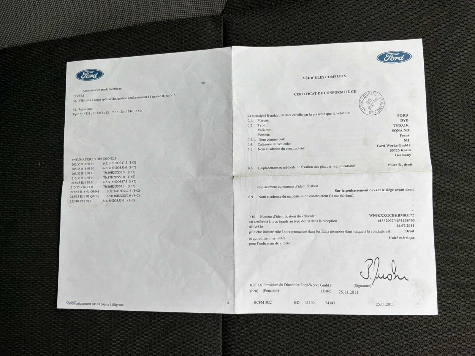 De mechaniek is oké, er ontbreekt een mistlicht Defect: meerdere krassen cf. foto's No Merk: Ford Model: Focus Type: DYB Bouwjaar: 2011 Afgelezen kilometerstand: 185589km Cilinderinhoud: 1997cc Vermogen (kW): 85kW Brandstof: Diesel Chassisnummer: WF0KXXGCBKBM03172(01) Laadvermogen: 1522kg Datum eerste toelating: 13/12/11 Vermogen (pk): 116hp Energielabel: EURO5 Aandrijving: Oké Aantal zitplaatsen: 5 Kleur: Middernachtblauw Transmissie: Automatisch Stuurwiel: Links Aantal deuren: 5 Aantal sleutels: 2 Aantal cilinders: 4 Gelijkvormigheidsattest aanwezig: true Carpass: true Start en rijdt: Oké startinformatie : Oké Zichtbare schade: Zie foto's Vavato voert geen technische keuring uit.: true Airconditioning: true Inschrijvingsbewijs - deel 1 : Oké Inschrijvingsbewijs - deel 2: Oké