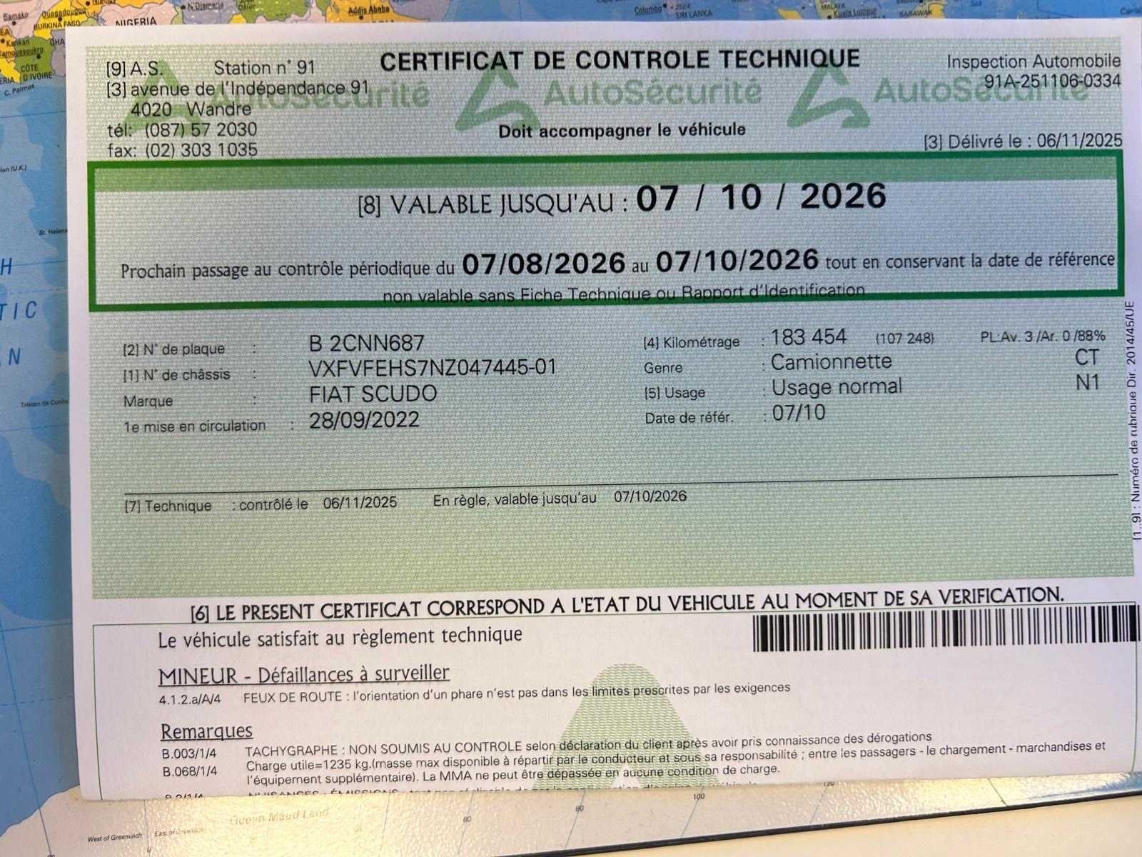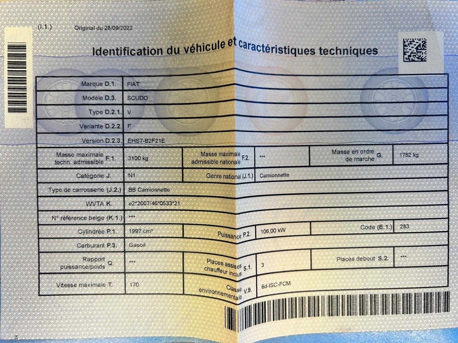 Schaalbare km No Merk: Fiat Model: Scudo Type: V Bouwjaar: 2022 Afgelezen kilometerstand: 202183km Cilinderinhoud: 1997cc Vermogen (kW): 106kW Brandstof: Diesel Chassisnummer: VXFVFEH57NZ047445 Datum eerste toelating: 28/09/2022 APK vervaldatum: 07/10/2026 Energielabel: 6d Kleur: Zwart Transmissie: Automatisch Stuurwiel: Links Aantal deuren: 5 Carrosserie: Pick-up truck Nationaliteit documenten: België Gelijkvormigheidsattest aanwezig: true Vavato voert geen technische keuring uit.: true Airconditioning: true Inschrijvingsbewijs - deel 1 : Oké Inschrijvingsbewijs - deel 2: Oké