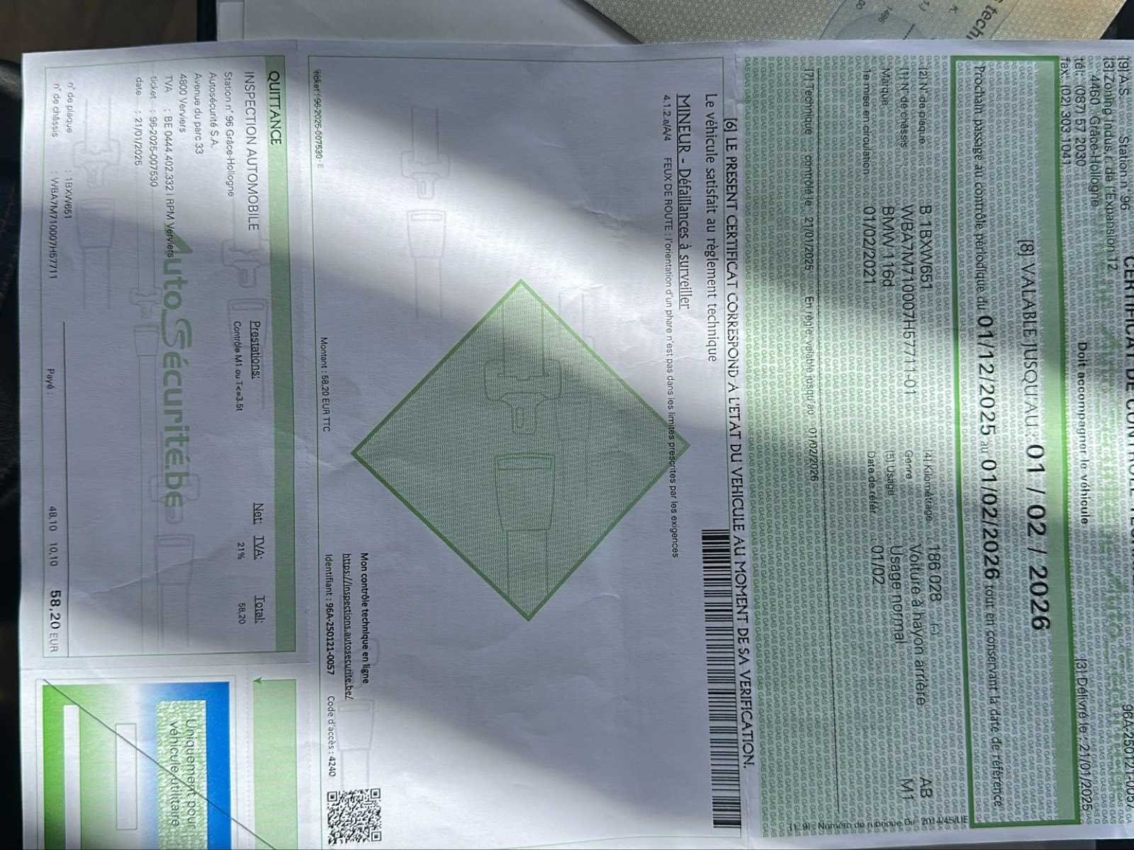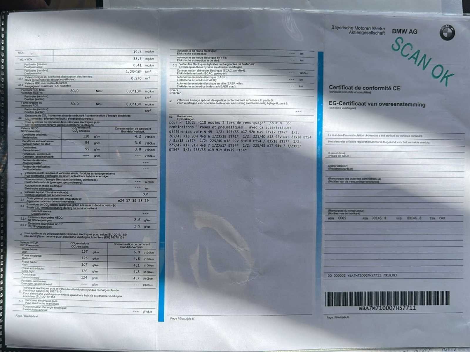 No Merk: BMW Model: Série 1 Type: 116d Bouwjaar: 2021 Afgelezen kilometerstand: 231951km Cilinderinhoud: 1496cc Vermogen (kW): 85kW Brandstof: Diesel Chassisnummer: WBA7M710007H57711 Datum eerste toelating: 01/02/2021 APK vervaldatum: 01/02/2026 Vermogen (pk): 116hp Energielabel: Euro 6d Aantal zitplaatsen: 5 Kleur: Metallic grijs Transmissie: Automatisch Stuurwiel: Links Aantal deuren: 5 Carrosserie: Hatchback Nationaliteit documenten: België Gelijkvormigheidsattest aanwezig: true Carpass: true Vavato voert geen technische keuring uit.: true Airconditioning: true Navigatie: true Leder bekleed: true Inschrijvingsbewijs - deel 1 : Oké Inschrijvingsbewijs - deel 2: Oké