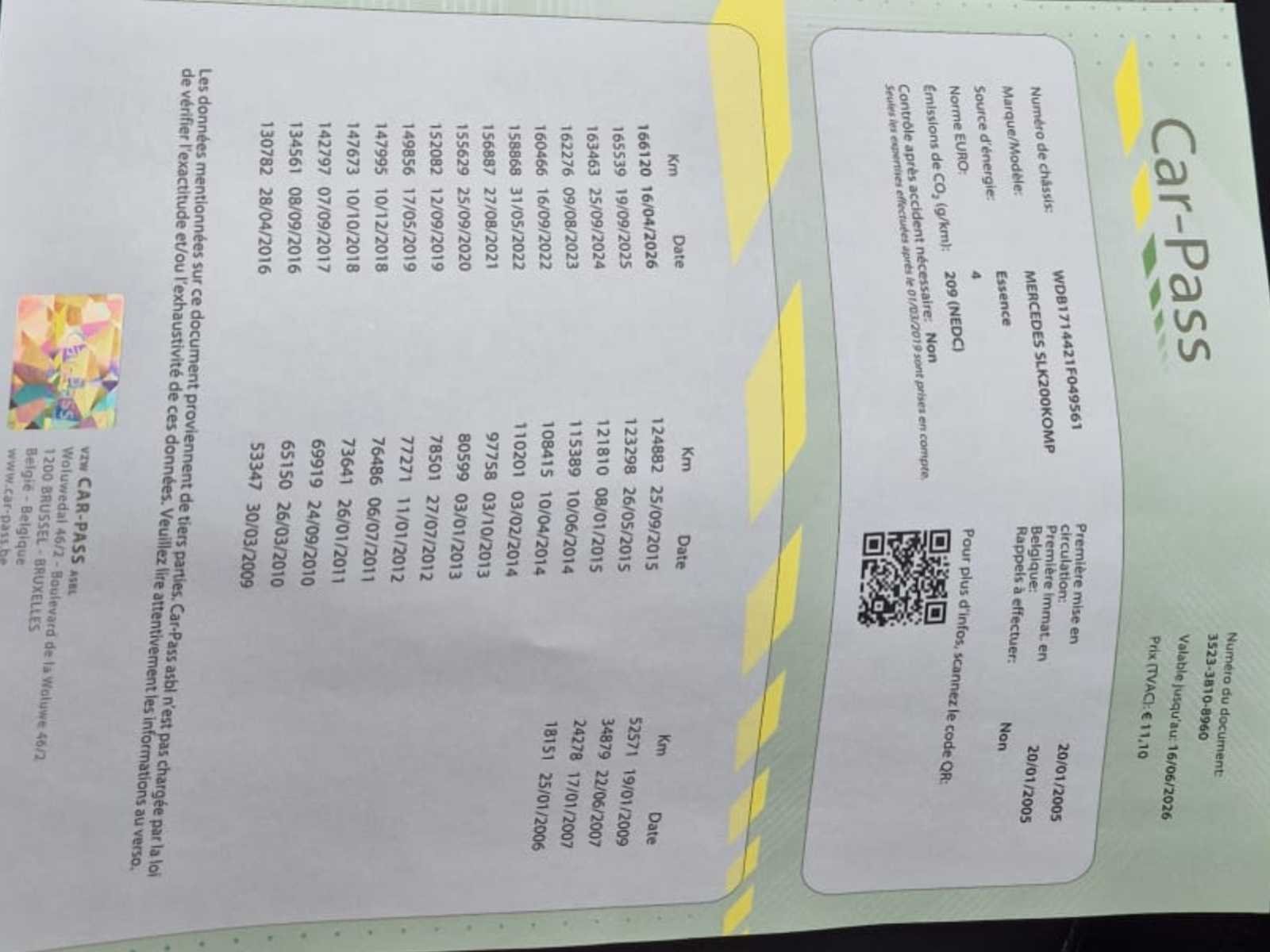 No Merk: Mercedes Bouwjaar: 2005 Afgelezen kilometerstand: 166110km Brandstof: Benzine Chassisnummer: WDB1714421F049561 Aandrijving: Ja Kleur: Grijs Stuurwiel: Links Emissieklasse: Euro 4 Aantal deuren: 3 Aantal sleutels: 1 Nationaliteit documenten: België CO2-uitstoot NEDC: 209