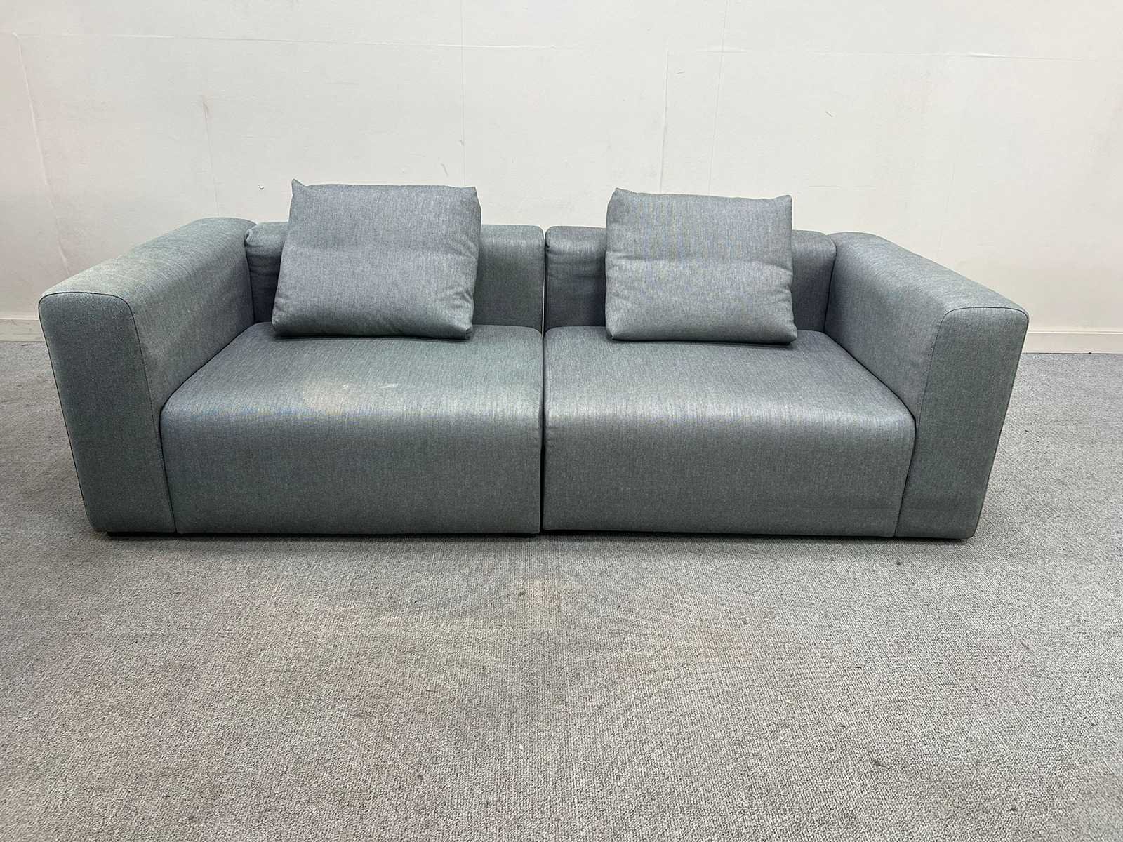 Strakke en comfortabele design 2-zitsbank van HAY, model Mags, uitgevoerd in een tijdloze grijze stof. De Mags-serie staat bekend om zijn minimalistisch Scandinavisch design, diepe zit en hoog zitcomfort. De bank bestaat uit modulaire zitdelen met brede armleuningen en wordt geleverd met 2 bijpassende rugkussens in dezelfde stof. Ideaal voor zowel residentieel gebruik als kantoor- of projectinrichting. De zetel verkeert in goede gebruikte staat met lichte gebruikssporen, zonder opvallende beschadigingen. Nee Merk: HAY Type: Zitbank Model: Mags Kleur: shiny grey Gewicht: 120kg Lengte: 225cm Breedte: 90cm Hoogte: 65cm Materiaal: textiel