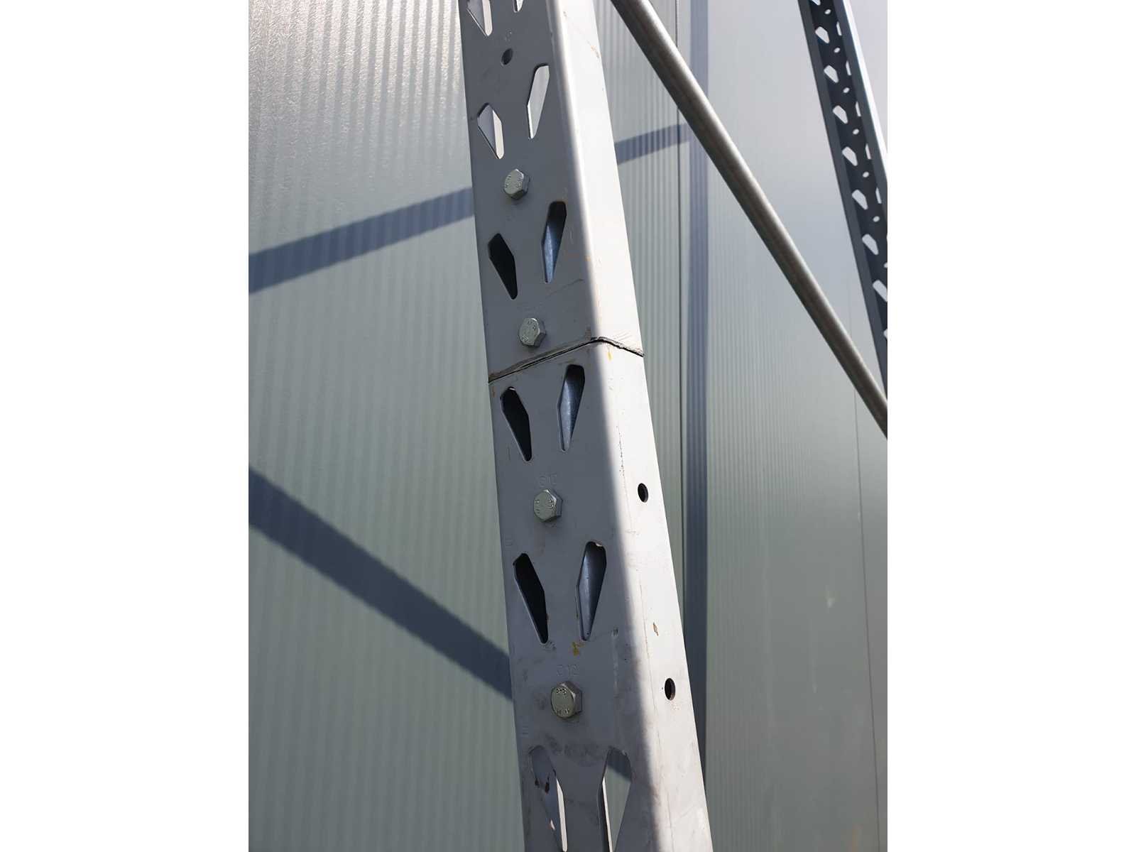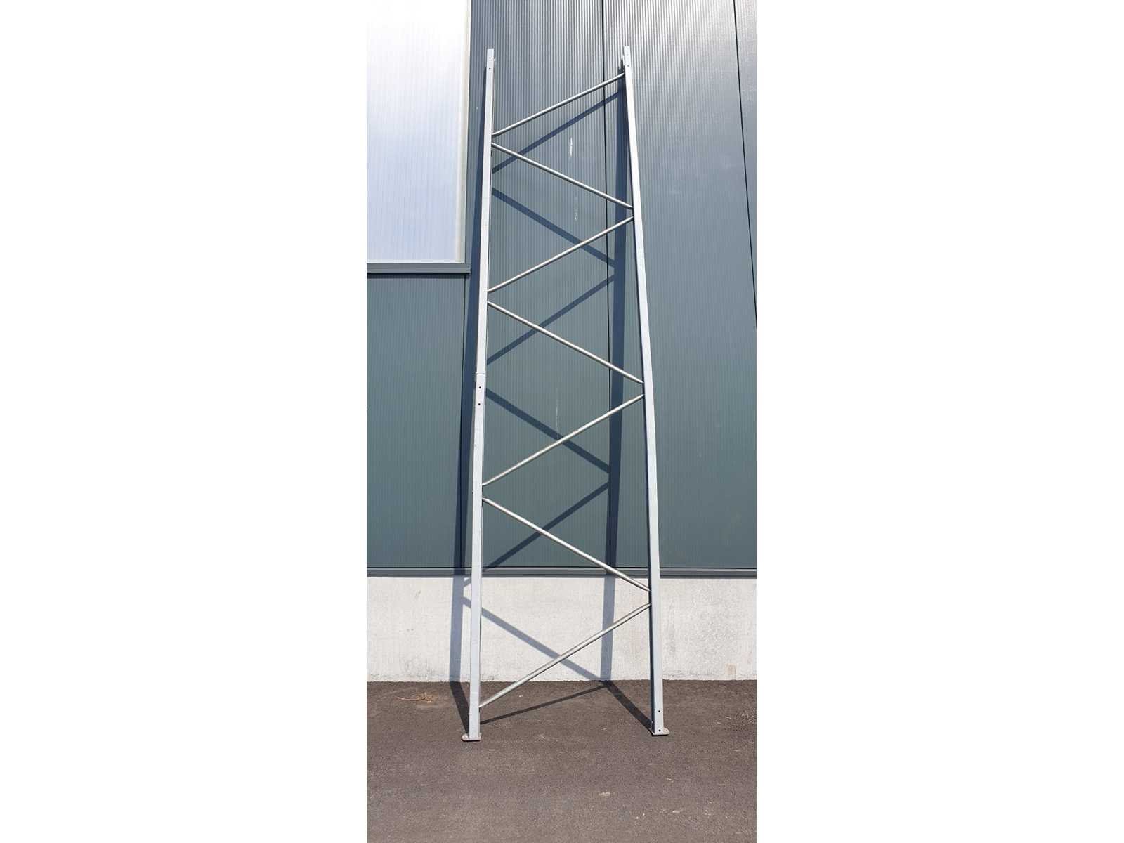 - Extra info: In deze opstelling: 3 grijze staanders, 450cm hoog, 105cm diep (buitenmaat), 95cm diep (binnenmaat) 12 oranje liggers, 270cm lang Draagvermogen per pallet: 800kg Draagvermogen per niveau: 2400kg (3 paletten breed) Nee Merk: ELECTROLUX Type: C12 Aantal secties: 2 Sectie afm. b: 270mm Sectie diepte: 105mm Sectie afm. h: 450mm Aantal staanders: 3 Aantal liggers: 12 Materiaal: metaal Totale afmeting L: 540cm Totale afmeting Breedte: 105cm Totale afmeting Hoogte: 450cm