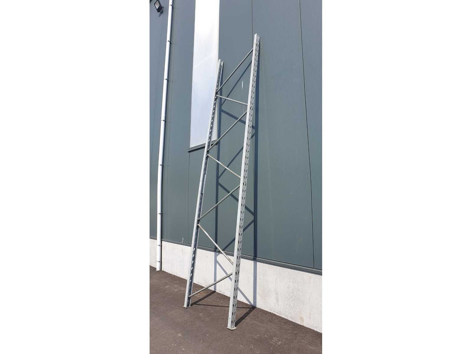- Extra info: In deze opstelling: 3 grijze staanders, 450cm hoog, 105cm diep (buitenmaat), 95cm diep (binnenmaat) 12 oranje liggers, 270cm lang Draagvermogen per pallet: 800kg Draagvermogen per niveau: 2400kg (3 paletten breed) Nee Merk: ELECTROLUX Type: C12 Aantal secties: 2 Sectie afm. b: 270mm Sectie diepte: 105mm Sectie afm. h: 450mm Aantal staanders: 3 Aantal liggers: 12 Materiaal: metaal Totale afmeting L: 540cm Totale afmeting Breedte: 105cm Totale afmeting Hoogte: 450cm