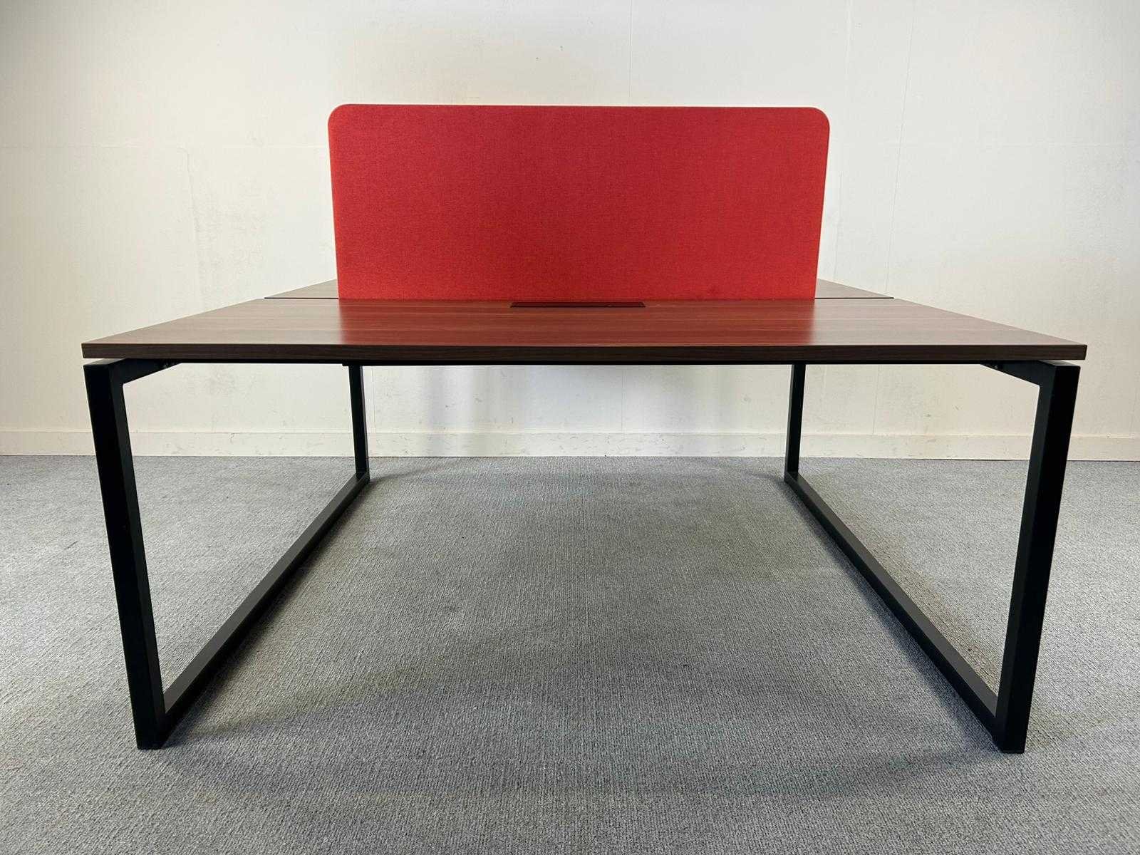 2-persoons werkbench met zwart metalen U-poot onderstel en een stijlvol donkerhouten werkblad. De set bevat een brede selectie scheidingspanelen in diverse kleuren. Paneel: rood (120x47) Nee Product type: 2-p workbench Kleur: Rood / Hout Gewicht: 50kg Materiaal: Donker hout