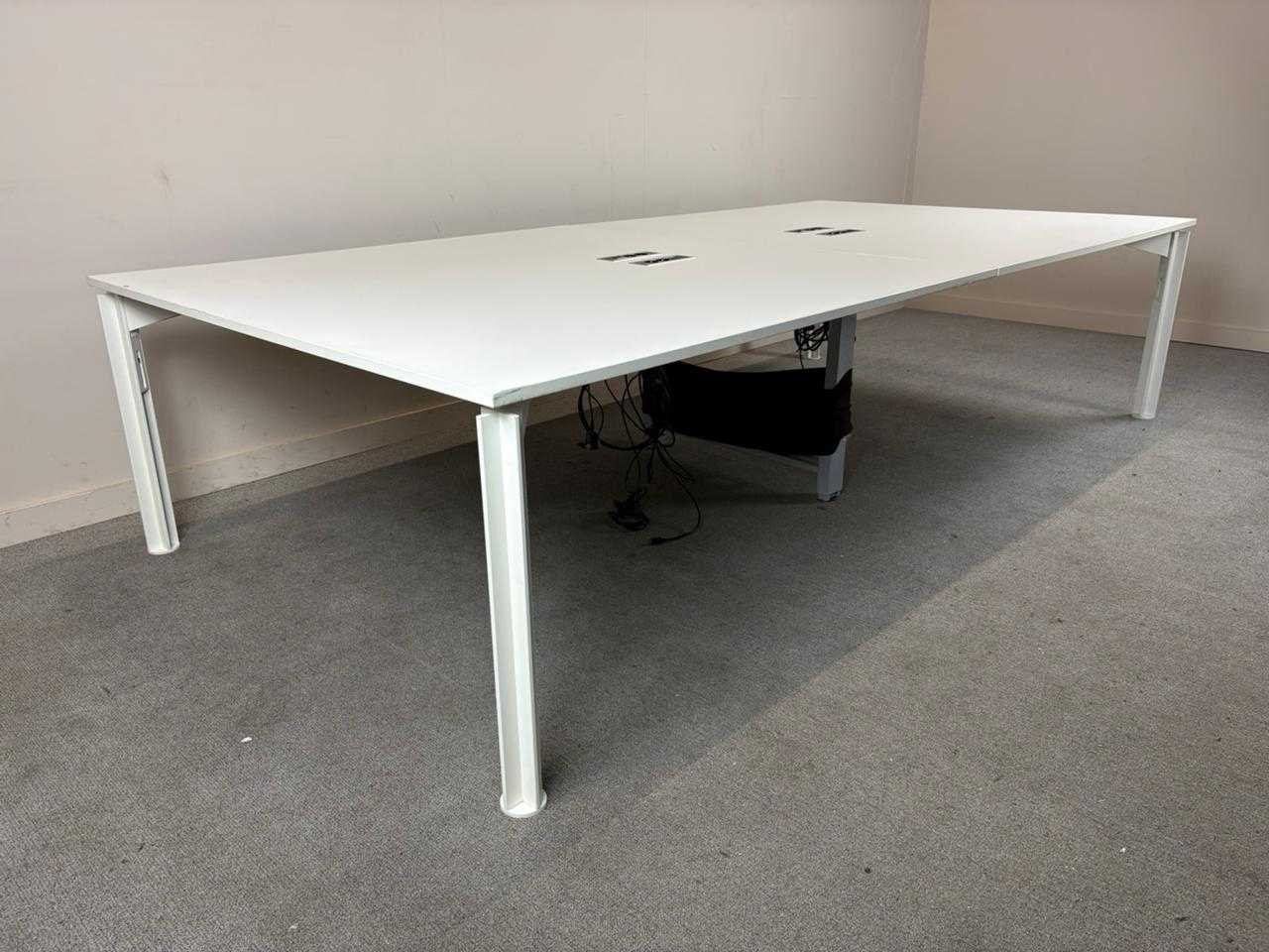 BULO H2O Workbench – 4 werkplaatsen Afmetingen: ca. L320 x D160 x H66–76 cm Uitvoering: wit melamine blad / wit metalen onderstel Merk: Bulo – model H2O Omschrijving: Strakke en kwalitatieve Bulo H2O workbench geschikt voor 4 werkplekken. Voorzien van geïntegreerde elektrificatie met kabeldoorvoeren in het werkblad en centrale kabelmanagement onder het blad. In hoogte instelbaar onderstel (manueel), ideaal voor ergonomisch gebruik in kantooromgevingen. Degelijke constructie met stabiel metalen frame en tijdloze witte afwerking die in elk interieur past. Kenmerken: 4-persoons werkbench Geïntegreerde elektrificatie (stopcontacten + bekabeling) Kabelmanagement onderaan Hoogte instelbaar (ca. 66–76 cm) Robuust metalen onderstel Professionele kantoor kwaliteit Staat: gebruikte staat, met normale gebruikssporen Nee Merk: BULO Type: H2O Model: 4p workbench Kleur: Wit Lengte: 320cm Breedte: 160cm Hoogte: 65-79cm Materiaal: Melamine