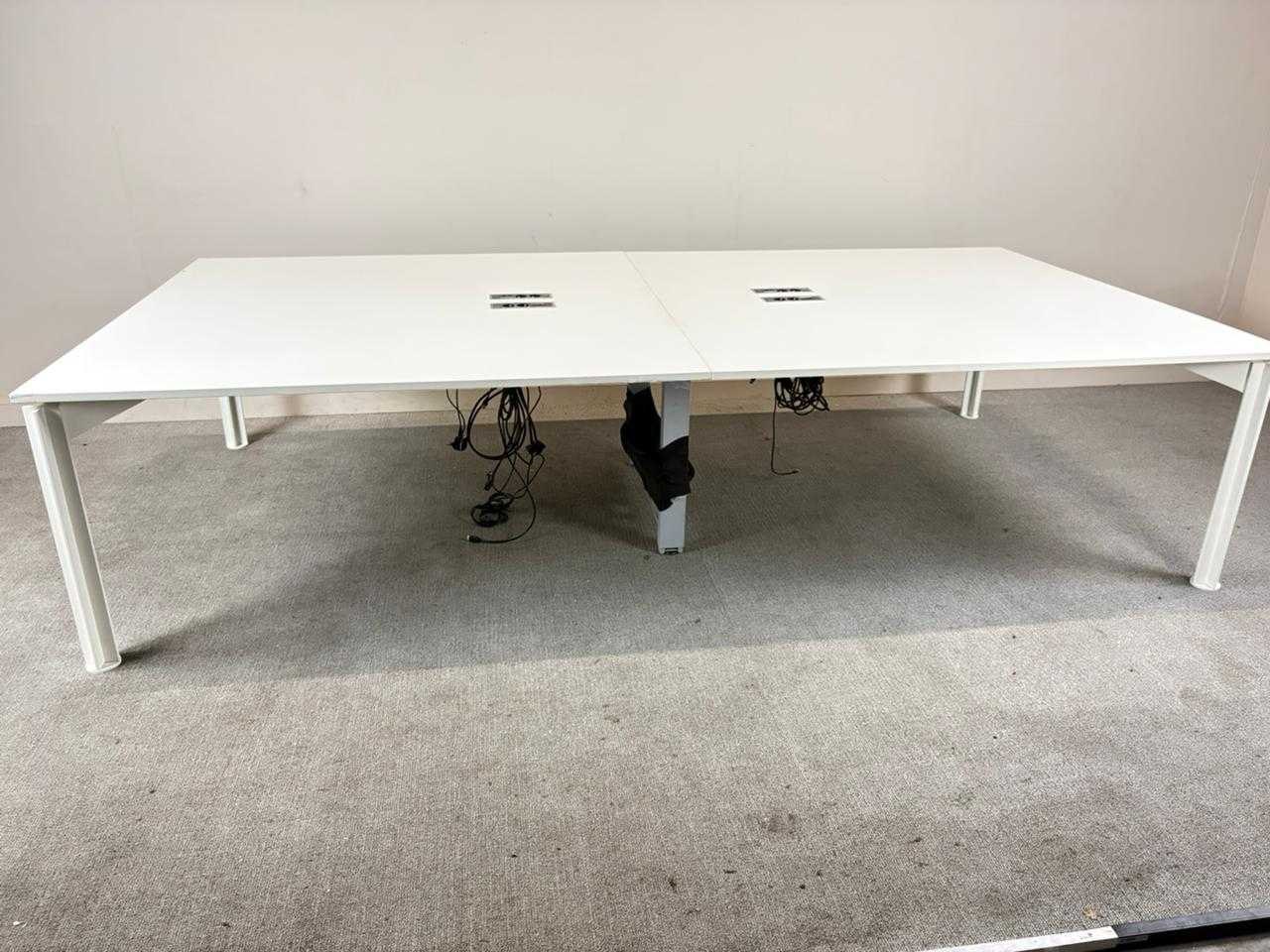 BULO H2O Workbench – 4 werkplaatsen Afmetingen: ca. L320 x D160 x H66–76 cm Uitvoering: wit melamine blad / wit metalen onderstel Merk: Bulo – model H2O Omschrijving: Strakke en kwalitatieve Bulo H2O workbench geschikt voor 4 werkplekken. Voorzien van geïntegreerde elektrificatie met kabeldoorvoeren in het werkblad en centrale kabelmanagement onder het blad. In hoogte instelbaar onderstel (manueel), ideaal voor ergonomisch gebruik in kantooromgevingen. Degelijke constructie met stabiel metalen frame en tijdloze witte afwerking die in elk interieur past. Kenmerken: 4-persoons werkbench Geïntegreerde elektrificatie (stopcontacten + bekabeling) Kabelmanagement onderaan Hoogte instelbaar (ca. 66–76 cm) Robuust metalen onderstel Professionele kantoor kwaliteit Staat: gebruikte staat, met normale gebruikssporen Nee Merk: BULO Type: H2O Model: 4p workbench Kleur: Wit Lengte: 320cm Breedte: 160cm Hoogte: 65-79cm Materiaal: Melamine