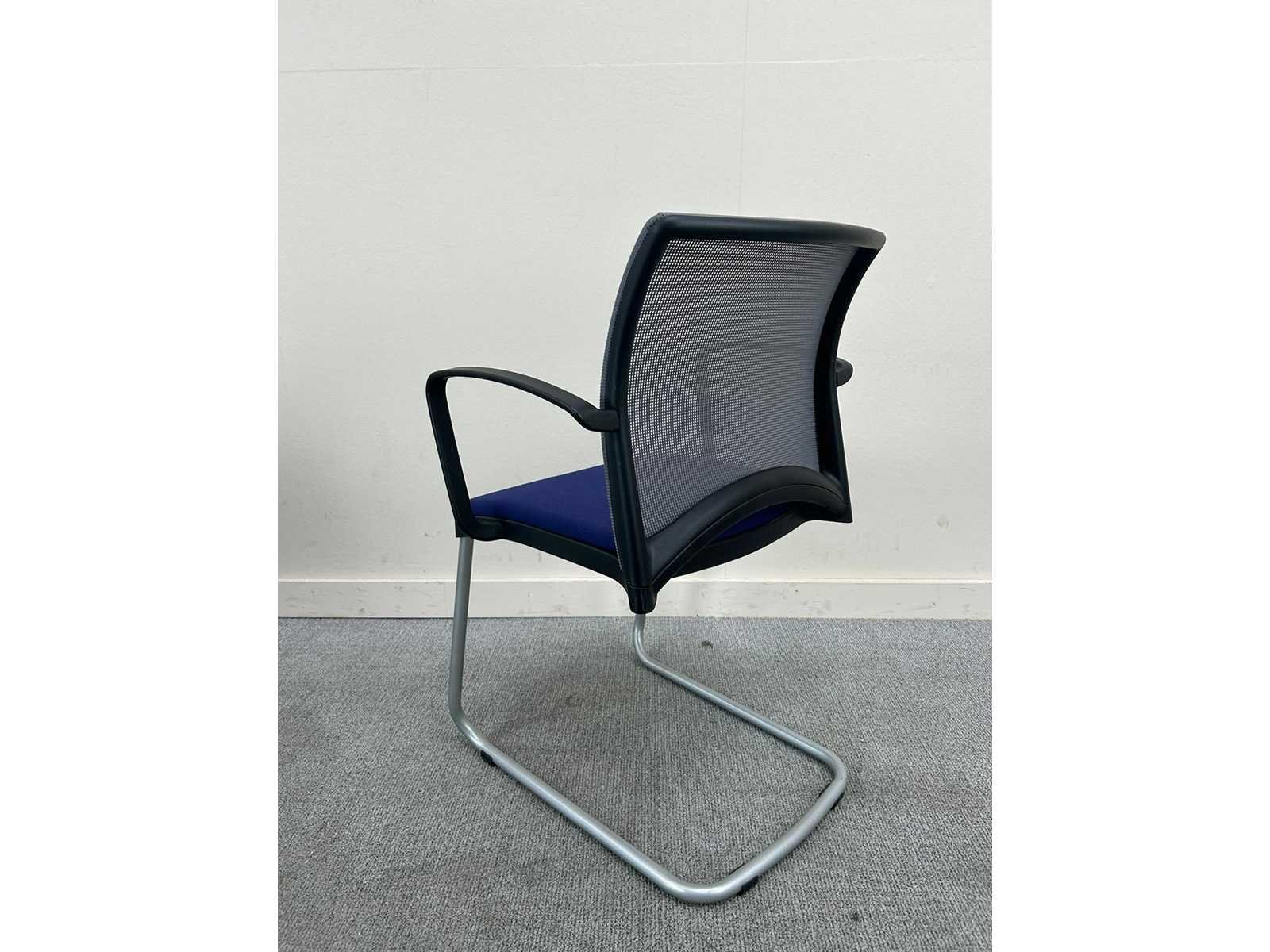 Viasit vergaderstoel, blauwe zitting , grijze mesh rug, stapelbaar met armleuningen Nee Merk: VIASIT Type: slede Kleur: blauw/grijs Materiaal: textiel/mesh