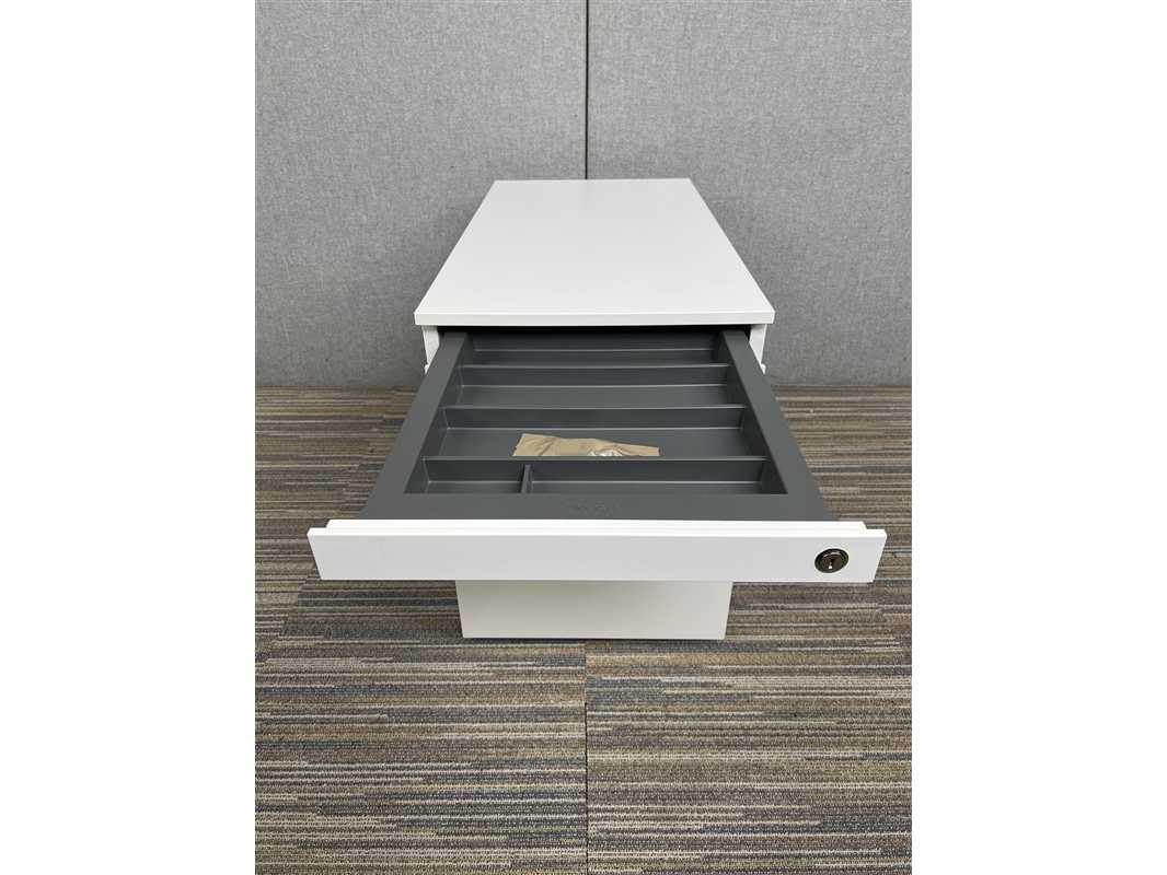 STEELCASE Ladeblok, 1 schuiflade, 1 pennelade, 1 lade voor hangdossiers H56xB42xD80 - Wit Metaal / Wieltjes Nee Merk: STEELCASE Kleur: Wit Gewicht: 25kg Breedte: 42cm Hoogte: 56cm Materiaal: Metaal Diepte: 80cm Aantal laden: 2