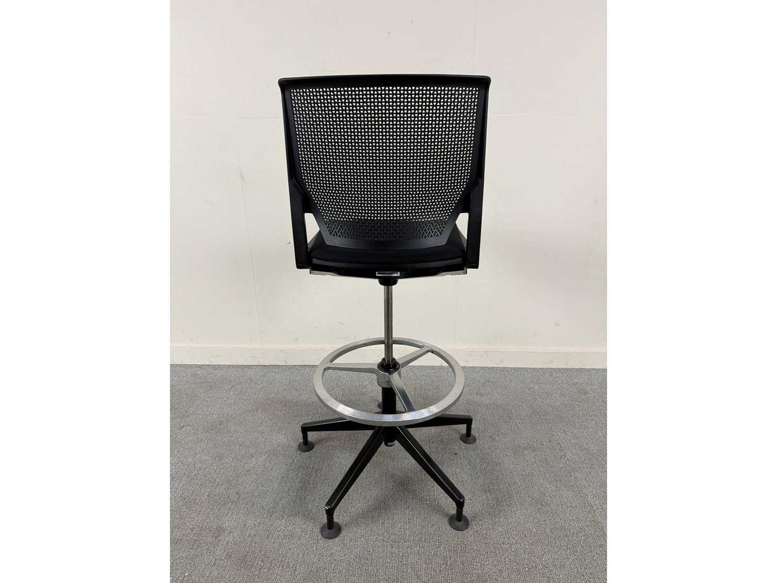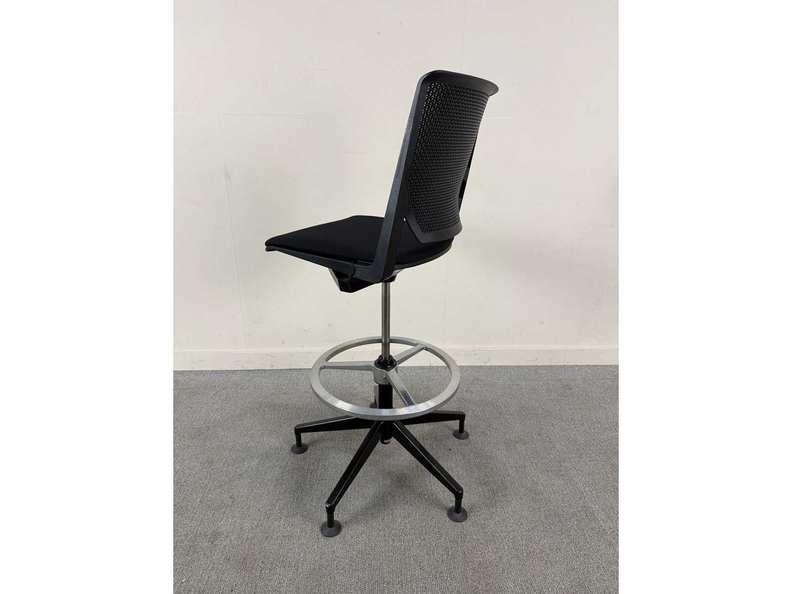 Merk: HAWORTH Nieuw / 2de Hands: 2de Hands Staat vh product: *** (Zeer lichte gebruikssporen) Soort detail: Bureaustoel Materiaal Bekleding: Stof Kleur: Zwart Soort onderstel: Voetkruis met wielen Materiaal onderstel: Kunststof Anti transpiratie: Ja : Haworth hoge stoel Haworth hoge stoel met een ademende mesh rugleuning, Voorzien van een comfortabele draaibare zitting en een voetring voor ondersteuning van de voeten. Geschikt voor hoge werkplekken, overlegtafels of balie-opstellingen waar eenvoud en functionaliteit centraal staan. Nee Merk: HAWORTH Type: Receptiestoel Kleur: zwart