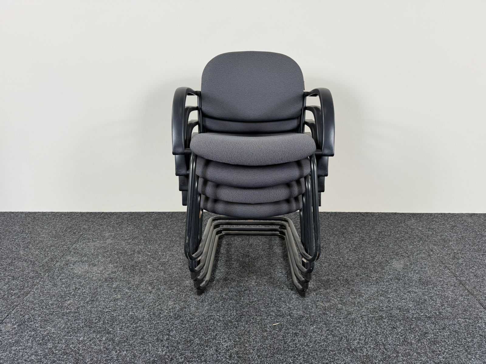 Omschrijving: Set van 12 comfortabele vergaderstoelen van Dauphin met tijdloos design. Uitgevoerd met grijze stoffering en zwart metalen sledeframe, voorzien van armleuningen voor extra zitcomfort. Dankzij het stapelbare ontwerp zijn deze stoelen praktisch in gebruik voor vergaderruimtes, wachtruimtes of polyvalente ruimtes. Kenmerken: Set van 12 stoelen Grijze stoffering Zwart metalen sledeframe Met armleuningen Stapelbaar Comfortabele zit Staat: goede gebruikte staat, lichte gebruikssporen Nee Merk: DAUPHIN Type: slede Kleur: grijs