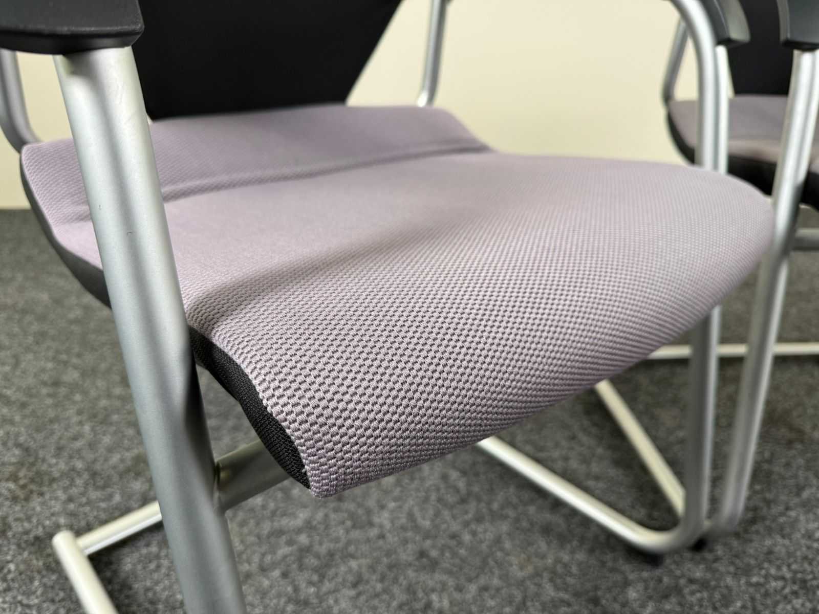 Omschrijving: Set van 4 hoogwaardige vergaderstoelen van het premium merk Wilkhahn. Deze stoelen combineren een strak, ergonomisch design met degelijk zitcomfort. Uitgevoerd met een grijs gestoffeerde zitting, zwarte rugleuning en een stabiel zilvergrijs metalen sledeframe met armleuningen. Ideaal voor vergaderruimtes, kantoren of ontvangstruimtes. Kenmerken: Set van 4 stoelen Model 277/7 Grijze stoffen zitting Zwarte rug (kunststof/textiel) Zilvergrijs metalen sledeframe Met armleuningen Hoog zitcomfort Kwalitatieve afwerking (Made in Germany) Staat: goede gebruikte staat, normale gebruikssporen Nee Merk: WILKHAHN