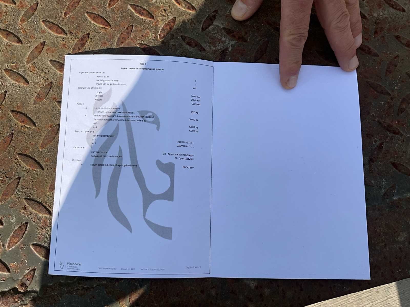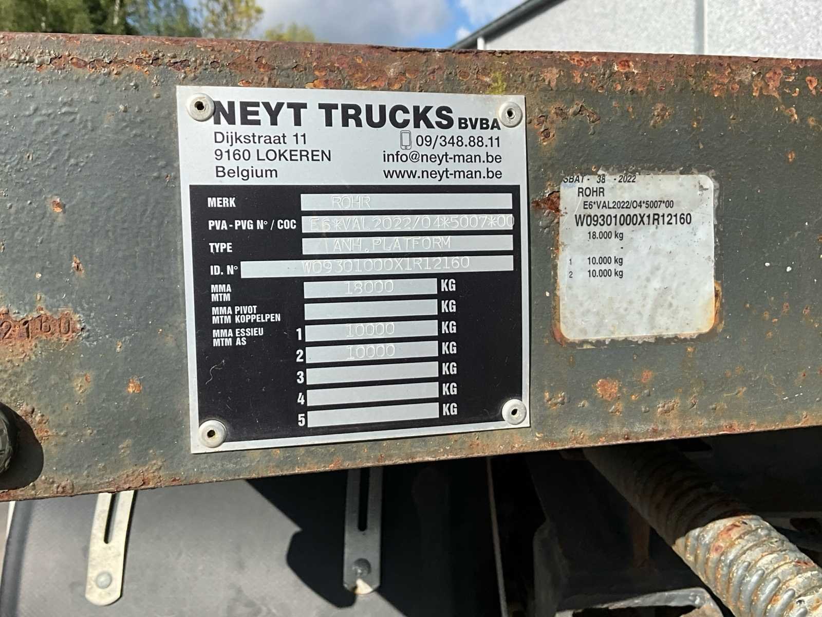 No Merk: Rohr Type: ANH.Platform Bouwjaar: 1999 Aantal assen: 2 Hoogte: 105cm Lengte: 512cm Breedte: 248cm