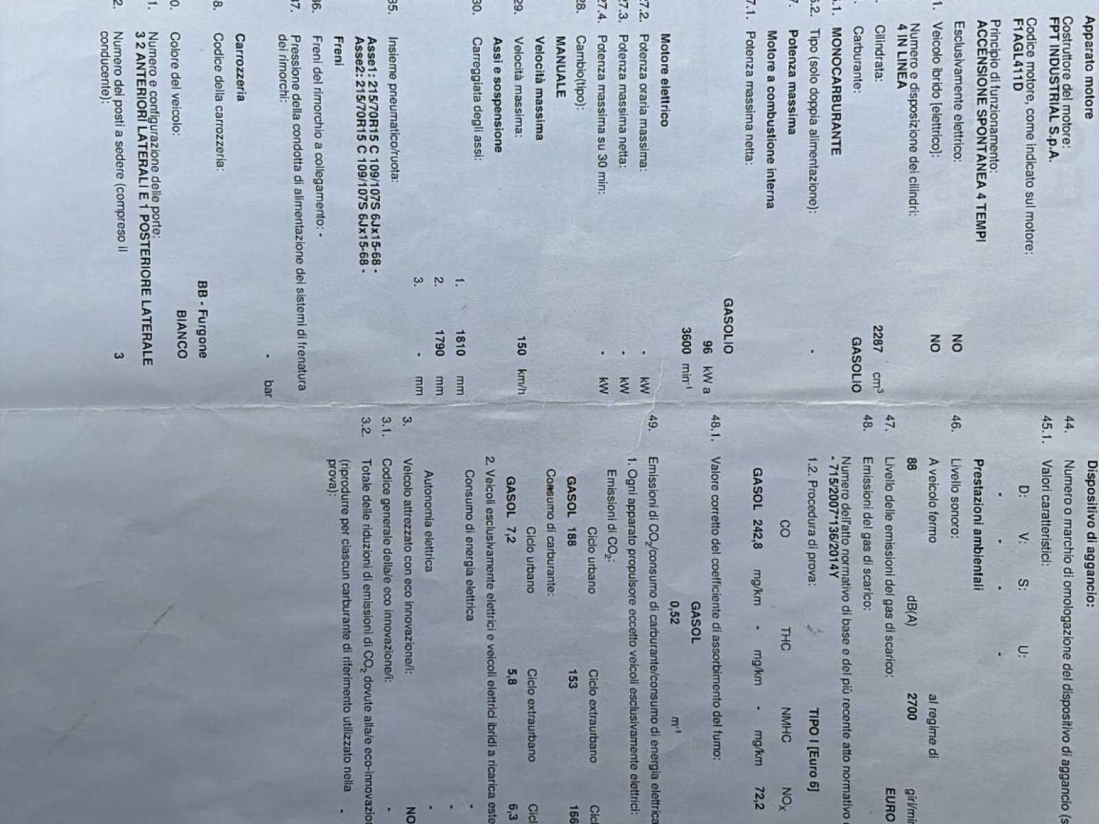 No Merk: Fiat Type: Euro 6 Model: Ducato Bouwjaar: 2016 Chassisnummer: ZFA25000002C65606 Afgelezen kilometerstand: 226973km Cilinderinhoud: 2287cc Vermogen (kW): 96kW Brandstof: Diesel Transmissie: Handgeschakeld Nationaliteit documenten: België Emissieklasse: Euro 6b Kentekenpapieren compleet?: true Boorddocumenten aanwezig?: true Startinformatie: Start & rijdt