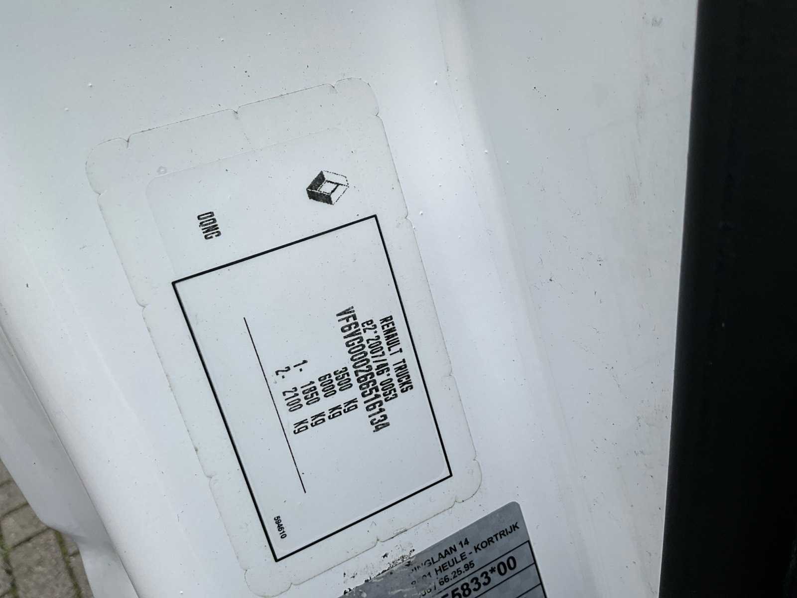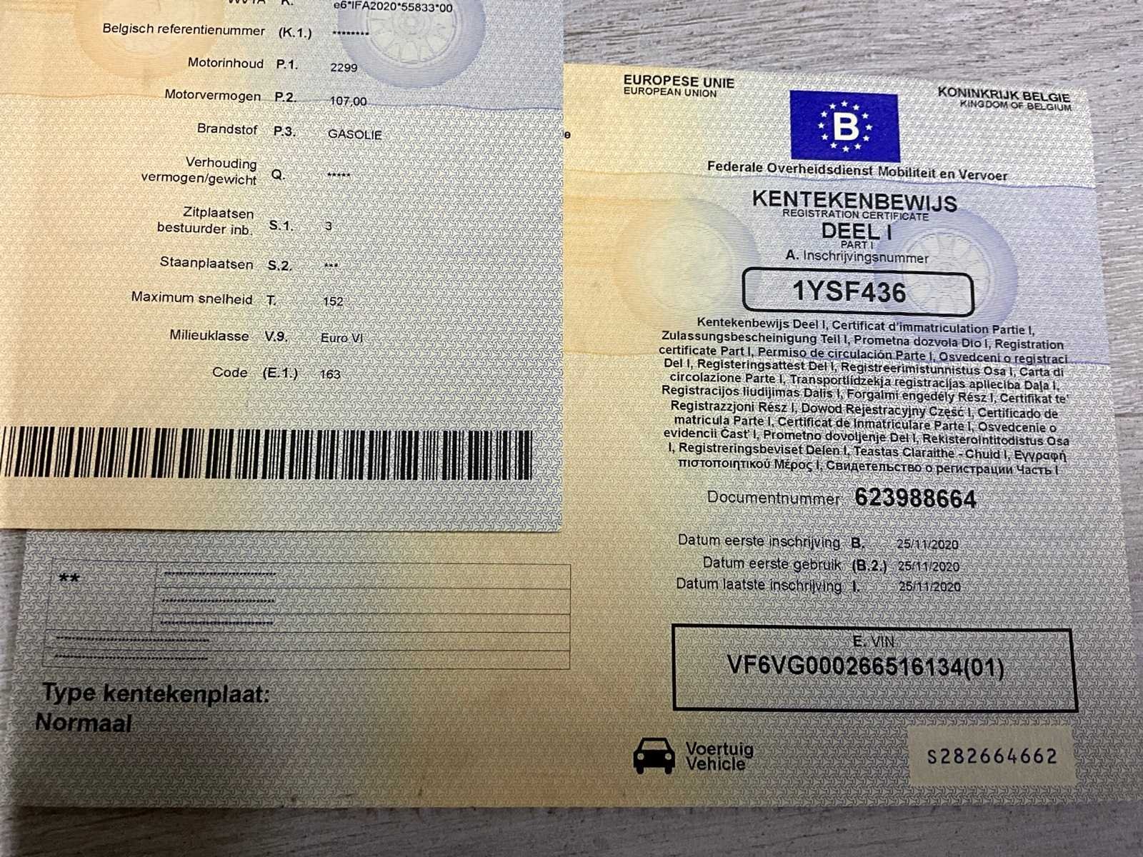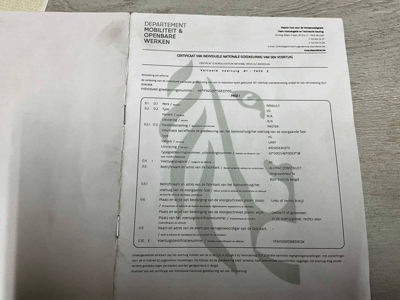 Technische keuring dd. 6/12/2024 op 448779km. met slechts 1 opmerking 8.2.2/A/5. - eerste en tweede versnelling maakt lawaai - 6 versnellingen - beschadiging aan beide spiegels maar functioneel - met airco Nee Merk: Renault Model: Master Type: lichte vracht Bouwjaar: 2020 Afgelezen kilometerstand: 521571km Cilinderinhoud: 2299cc Vermogen (kW): 107kW Brandstof: diesel Chassisnummer: VF6VG000266516134 Laadvermogen: 995kg Datum eerste toelating: 25/11/2020 Aantal zitplaatsen: 3 Transmissie: Handgeschakeld Emissieklasse: Euro 6 Aantal deuren: 2 Ledig gewicht: 2430kg Nationaliteit documenten: B Gelijkvormigheidsattest aanwezig: true Start en rijdt: ja Keuringsrapport geldig tot: 27/11/2025 Zichtbare schade: ja Vavato voert geen technische keuring uit.: true Airconditioning: true Navigatie: true Inschrijvingsbewijs - deel 1 : Aanwezig Inschrijvingsbewijs - deel 2: Aanwezig