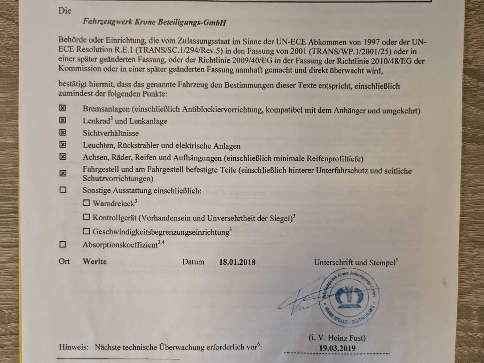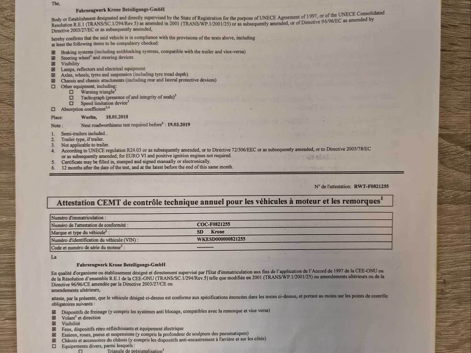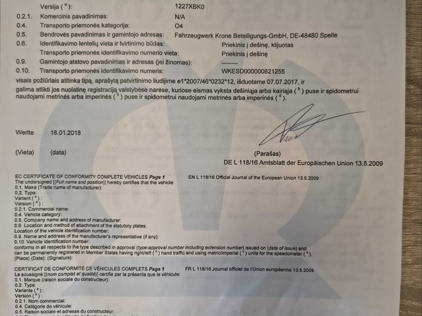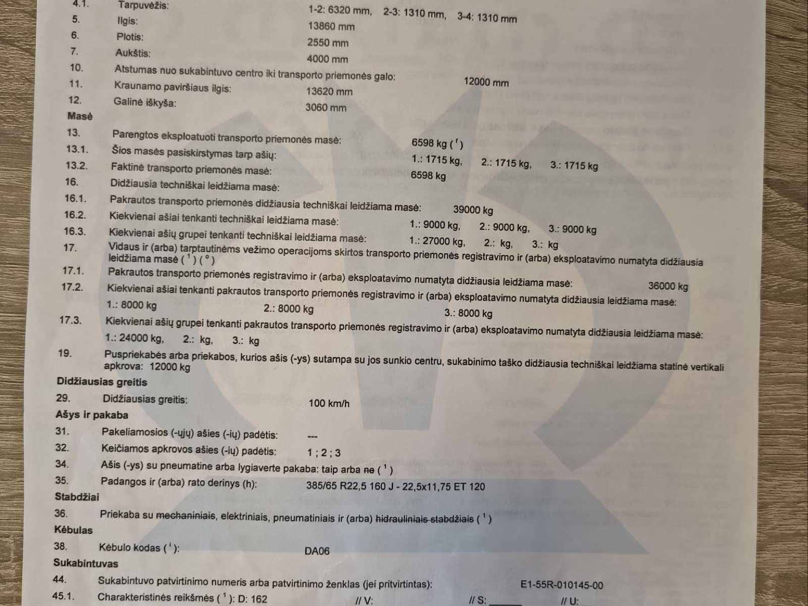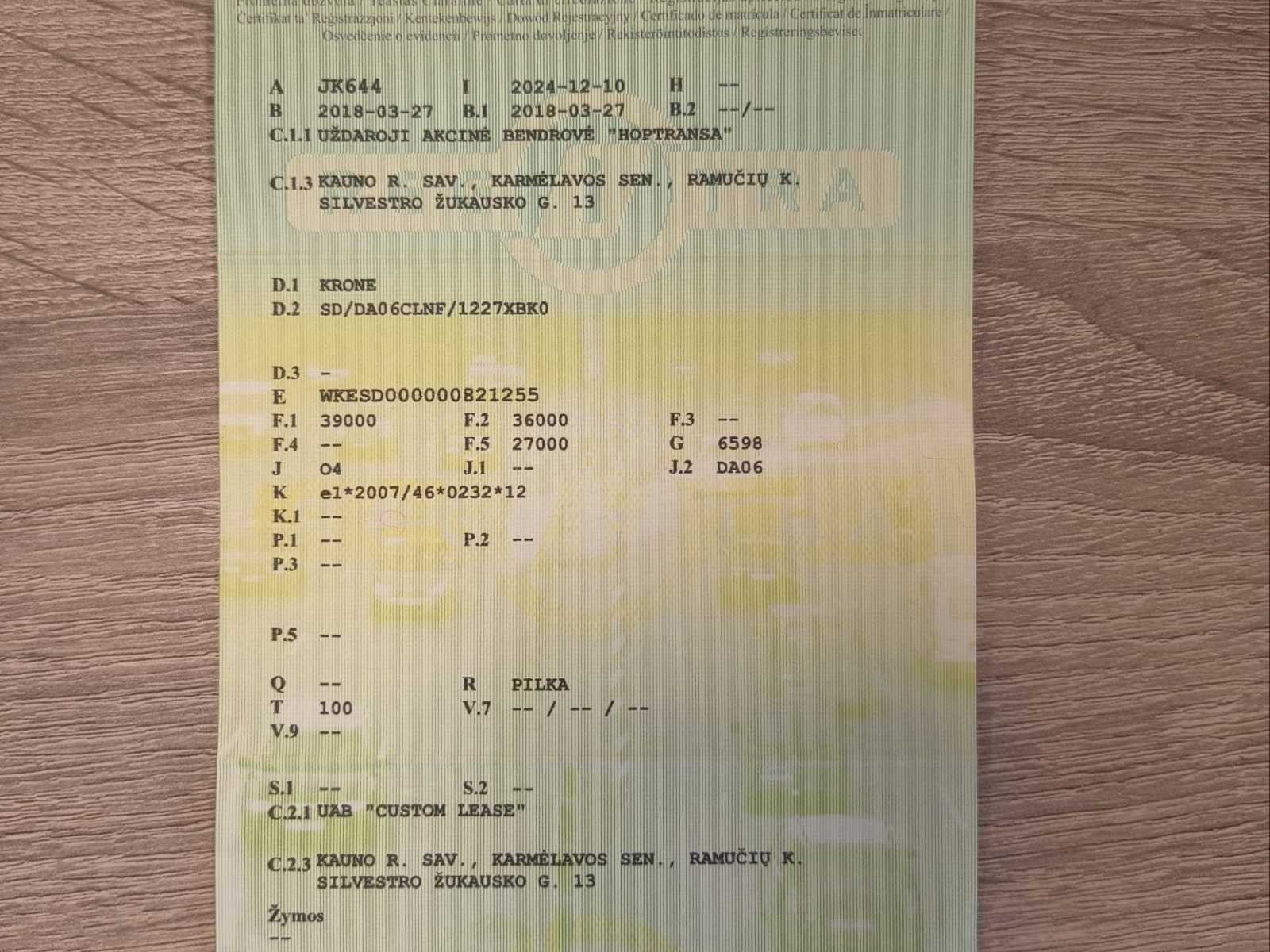 Krone SD schuifzeiloplegger uit 2018 in nette, direct inzetbare staat. Voorzien van 3 assen met luchtvering, schuifzeilen, schuifdak en dubbele achterdeuren. Europese documenten (Estland) aanwezig inclusief typegoedkeuring en ECMT certificaat. Voertuig dient door koper ingevoerd te worden in land van bestemming. Maximaal toegestaan totaalgewicht 39.000 kg. Ideaal voor internationaal transport. Normale gebruikssporen passend bij leeftijd en inzet - specificaties: Schuifzeil links en rechts, Schuifdak, Aluminium zijborden, Houten vloer geschikt voor palletvervoer, Achterdeuren (dubbele deuren), ABS / EBS remsysteem, Trommelremmen, Liftas, Reservewielhouder, Achterbumper conform EU-norm, Snelheidsstickers 60/70/80 km/u, ECMT / CEMT certificaat aanwezig, Europees typegoedkeuringsdocument aanwezig, geschikt voor 33 europallets No Merk: Krone Bouwjaar: 2018 Chassisnummer VIN: WKESD000000821255 Datum eerste toelating: 27/3/2018 Aantal assen: 3 Eigen gewicht: 6598kg Totale afmeting L: 13860mm Totale afmeting Breedte: 2550mm Totale afmeting Hoogte: 4000mm