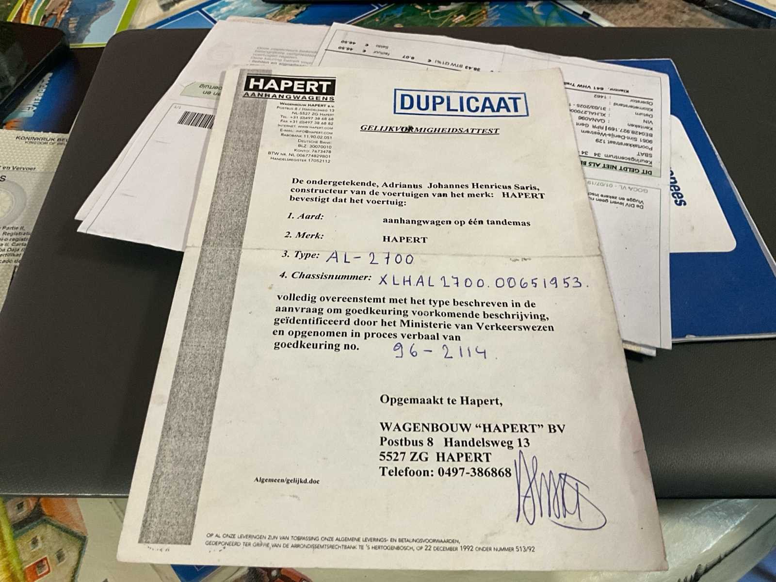 335x200 alle papieren aanwezig Nee Merk: Happert Type: AL2700 Bouwjaar: 2001 Nationaliteit documenten: belg