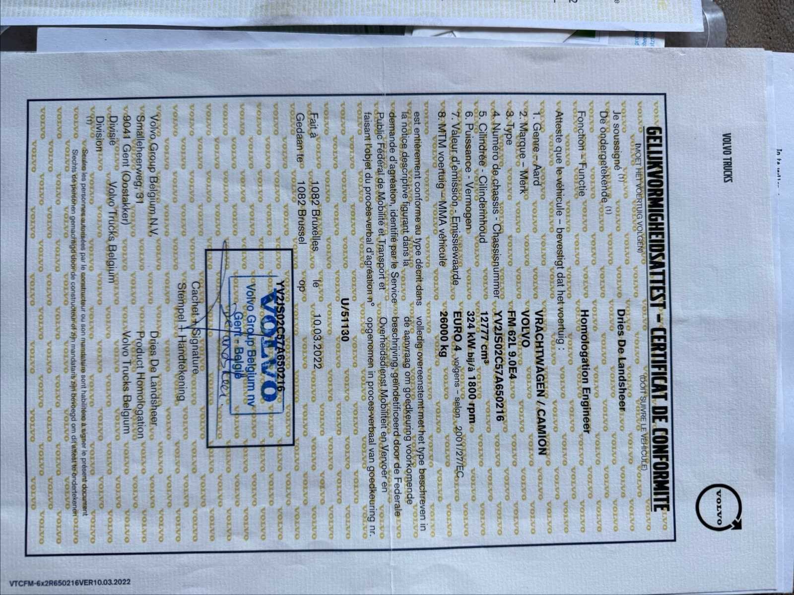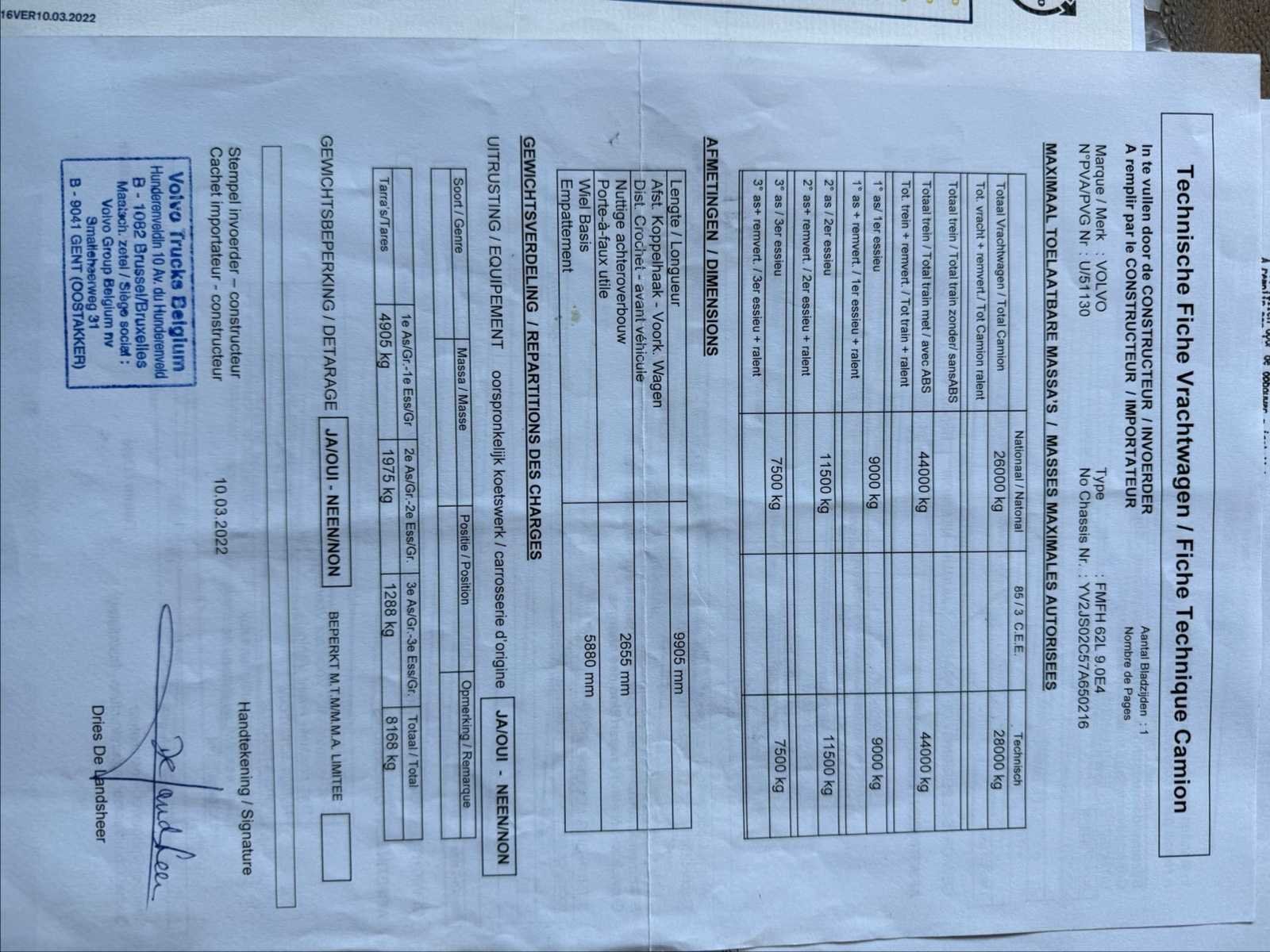 Met hulpkraan hiab 211 nijlpaard 21t/m 6x2 met stuurassen Liften Nieuwe containerlifter met afstandsbediening Sleepstang Achteruitrijcamera Airconditioning Onderhoud gedaan, versnellingsbak gerepareerd, remmen gerepareerd, stuuras gereviseerd, banden 60% Problemen: watercircuitlek, laswerk aan cilindersteun, lichte olielekkage, carrosserie / lampen nog te beoordelen Verkocht zoals het is No Merk: Volvo Type: FM440 Lève-container hiab les 21t Bouwjaar: 2007 Cilinderinhoud: 12800cc Kilometerstand bij opname: 475000km Slaapcabine: true Automaat: true Diesel: true
