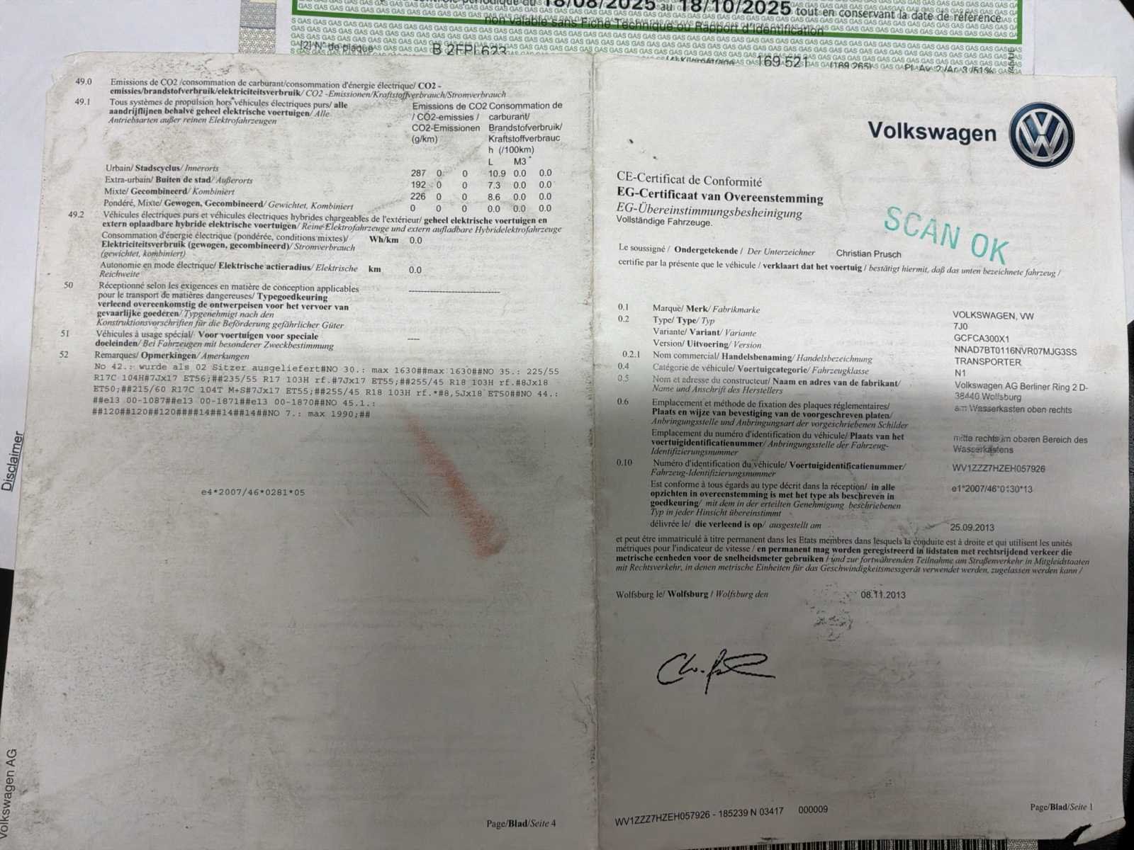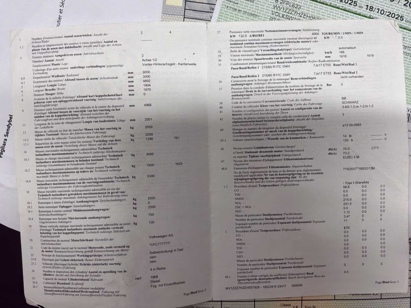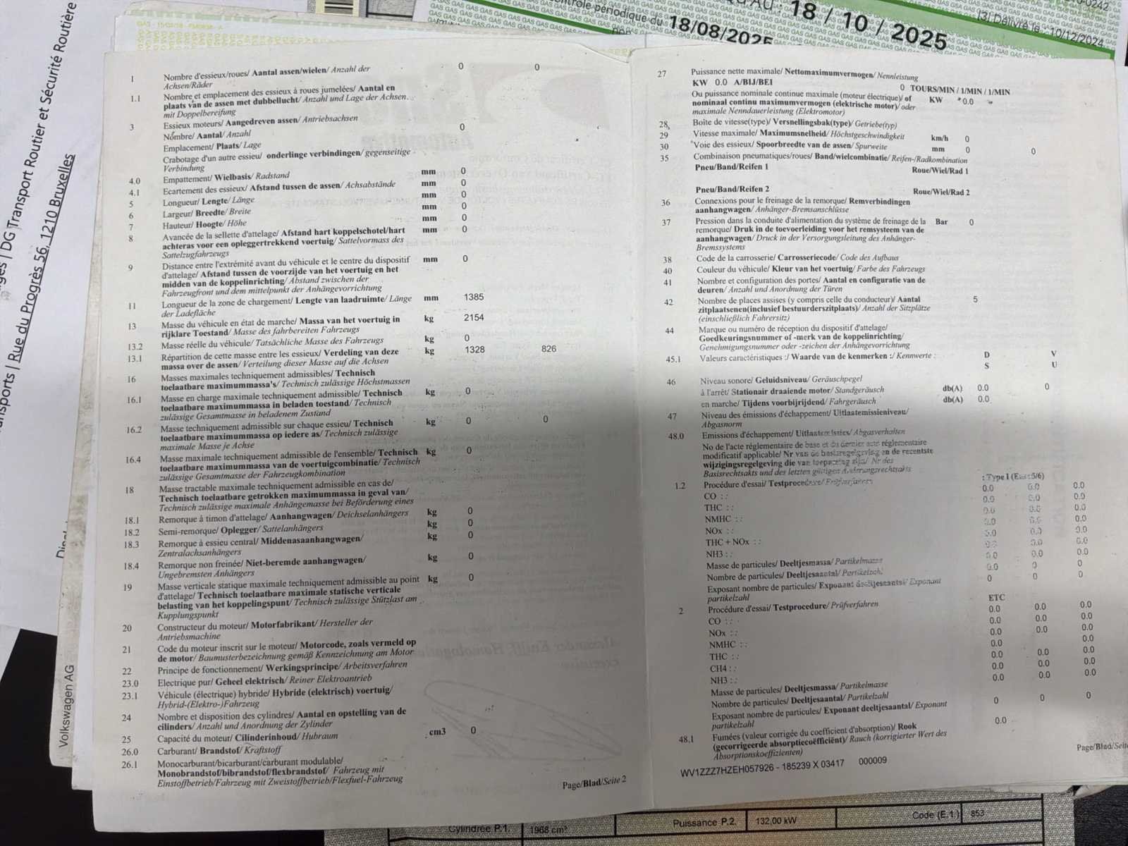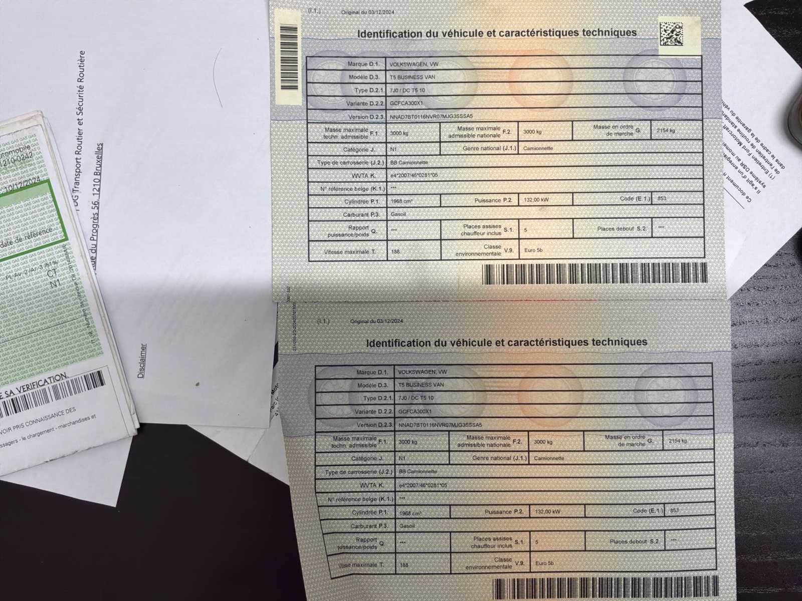 No Merk: Volkswagen Type: Businessman Model: T5 Bouwjaar: 2013 Chassisnummer: WVIZZZ7HZEH057926 Afgelezen kilometerstand: 172525km Cilinderinhoud: 1968cc Vermogen (kW): 132kW Brandstof: Diesel Datum eerste inschrijving: 02/12/2013 APK vervaldatum: 18/10/2025 Transmissie: Automatisch Aantal zitplaatsen: 3 Kleur: Zwart Nationaliteit documenten: België Stuurwiel: Links Aantal deuren: 5 Aantal sleutels: 2 Vermogen (pk): 180 Aantal cilinders: 4 Carrosserie: Utility bus Energielabel: Euro5 h
