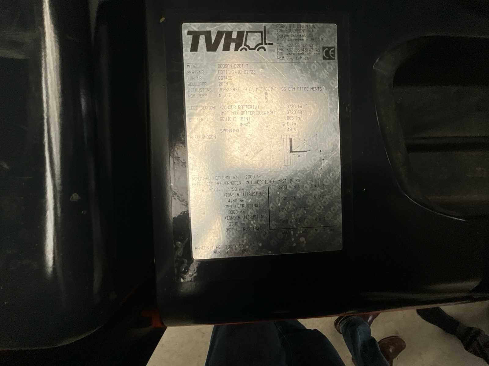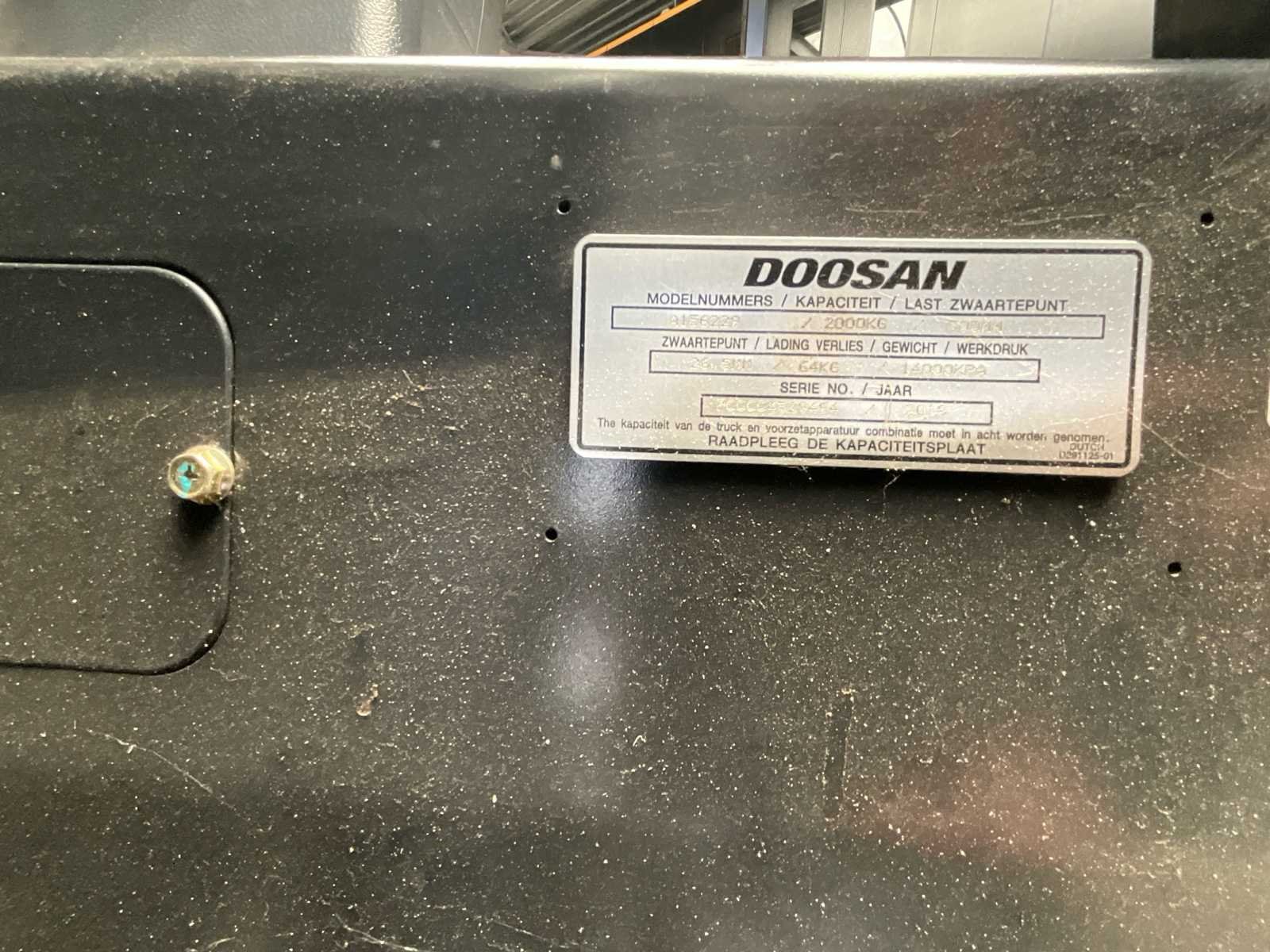 Vorkversteller 150 uren gewerkt Altijd binnen gebruikt No Merk: DOOSAN Type: B20T Bouwjaar: 2018 Serienummer: FBA11-2410-02723 Hijsvermogen: 2000kg Max. hefhoogte: 4750m