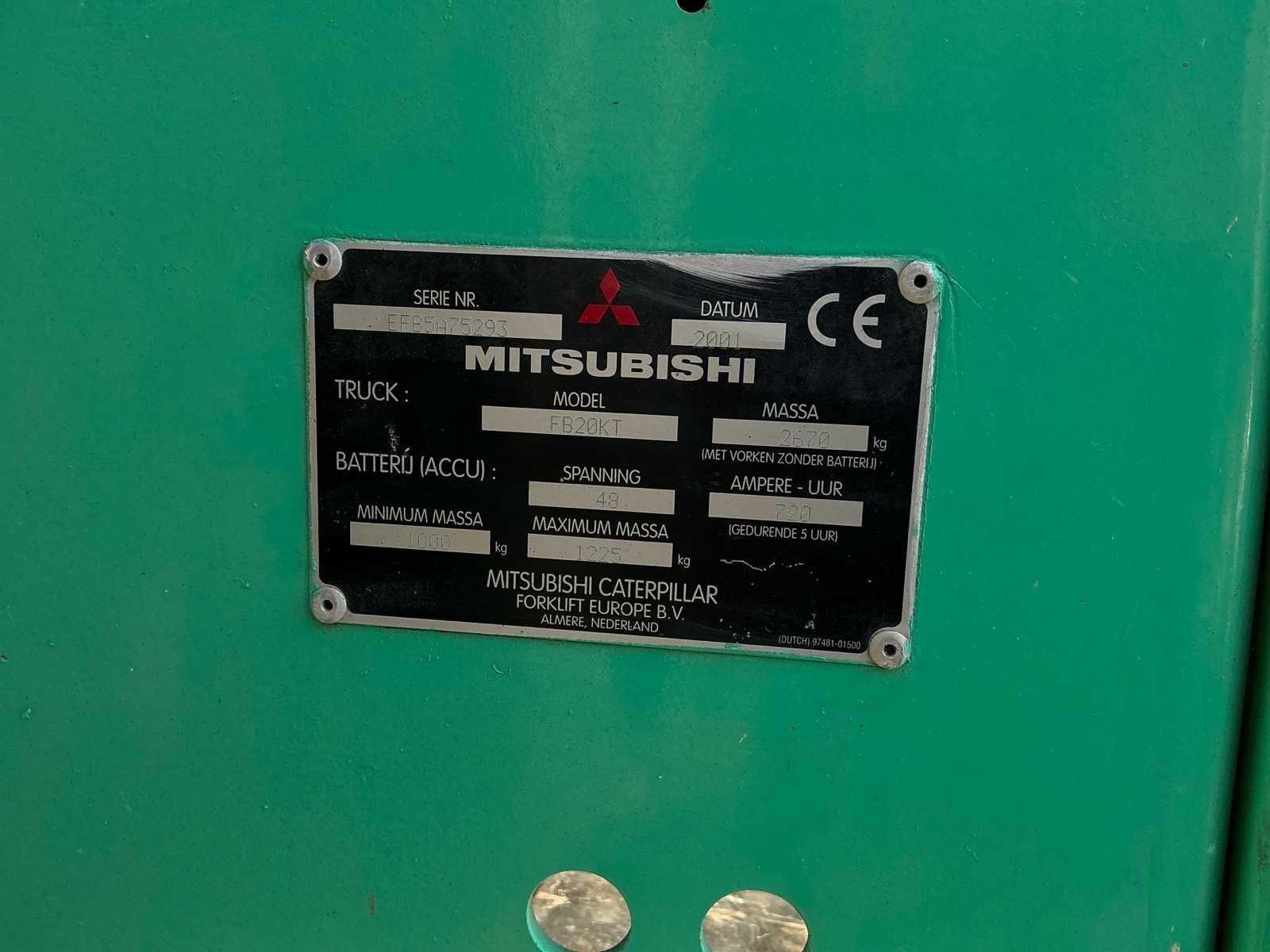Start rijdt en voert alle functie’s uit, de batterij is in matige staat. Nee Merk: Mitsubishi Type: Fb2026 Bouwjaar: 2001 Brandstof: Electric Mast: Triple Aantal wielen: 3 Accu lader: true Side-shift: true Triple mast: true Hefvermogen: 1950kg Max. hefhoogte: 4750mm Vol rubber banden: true Minimale doorrijhoogte: 2200mm Leveringsvoorwaarden: Gratis op vrachtwagen