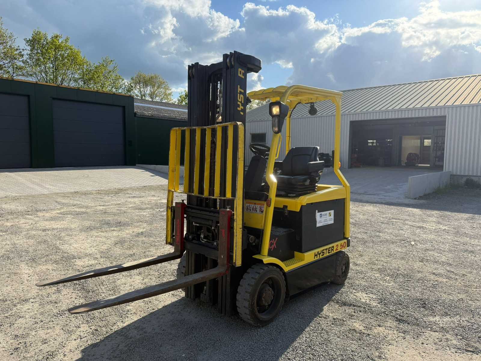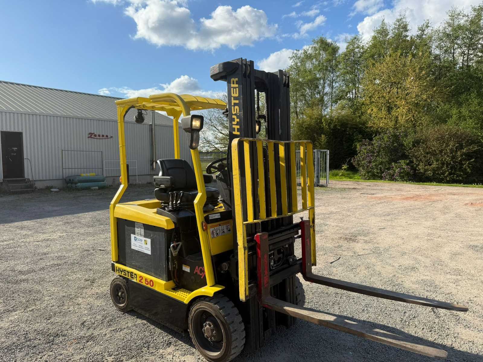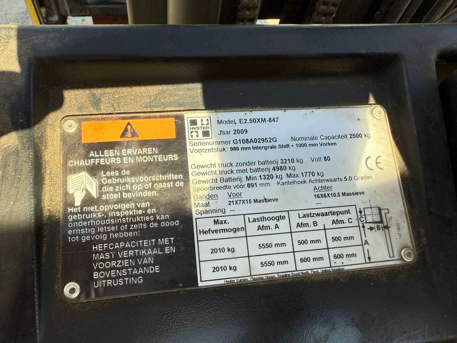 Ophalen in 2580 Putte Nee Merk: Hyster Type: E2.50XM-847 Bouwjaar: 2009 Serienummer: G108A02952G Brandstof: Elektrisch Mast: Triple Soort band: Volrubber banden Aantal wielen: 549 Afgelezen urenstand: 5490 Triple mast: true Eigen gewicht: 4980kg Hefvermogen: 2500kg Lepellengte: 1100mm Max. hefhoogte: 5500mm Vol rubber banden: true Minimale doorrijhoogte: 2400mm Leveringsvoorwaarden: Niet gefundeerd - onverpakt