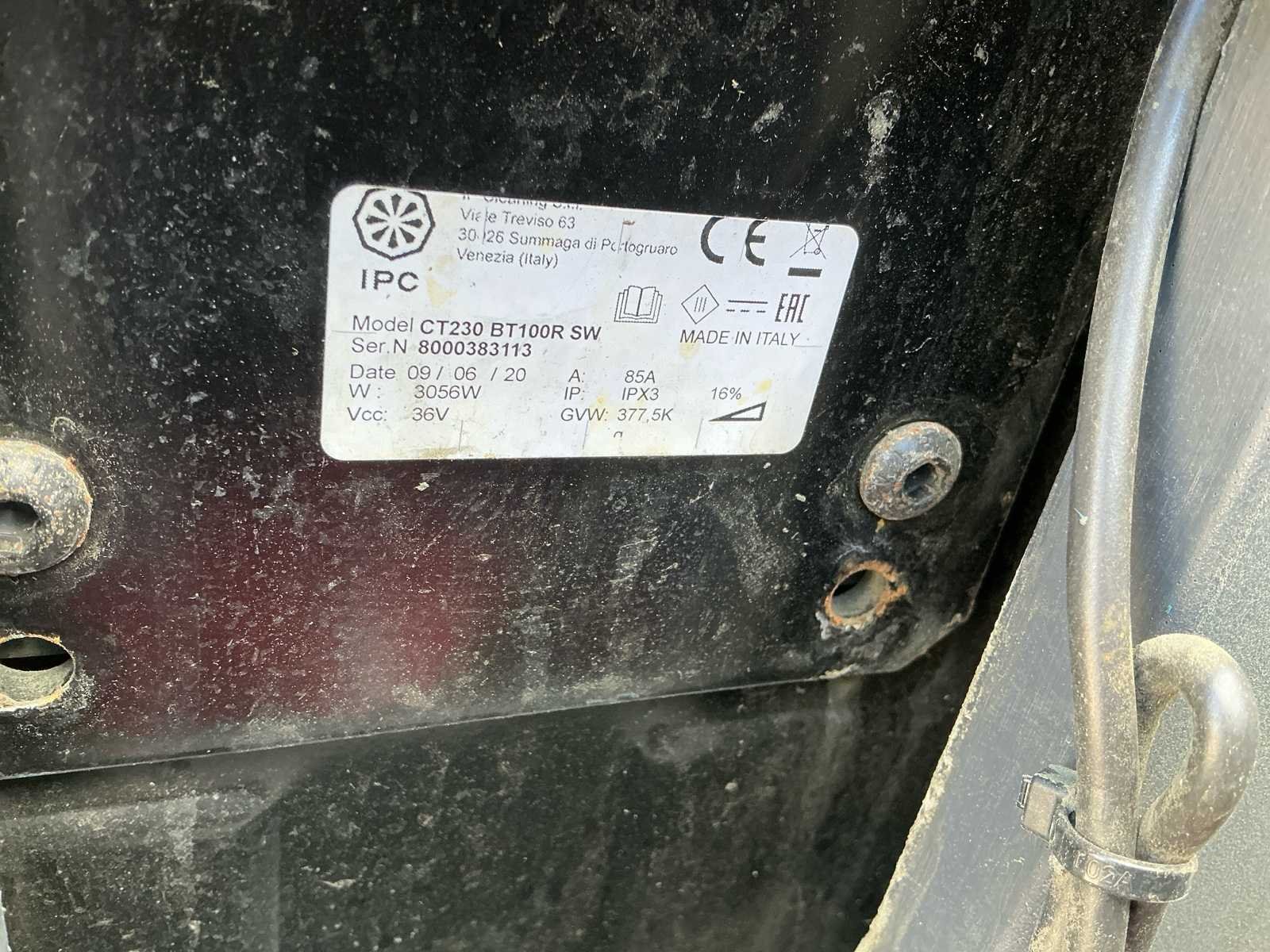 Opzit-schrobzuigmachine IPC CT230 BT100R SW, batterij-aangedreven (36V). - Uitgerust met pre-sweep systeem (zijborstel + veegfunctie), dubbele schrobborstels en achteraan een zuigmond voor gelijktijdig reinigen en drogen. * Werkbreedte borstels: ± 1000 mm * Zuigbreedte: ± 1280 mm * Capaciteit tanks: 205 L (schoon) / 225 L (vuil) * Aandrijving: 36V batterij (6x 6V) * Productiviteit: tot ca. 7.500–9.000 m²/u * Zelfrijdend, 3 reinigingsprogramma’s, automatische water- en zuigregeling No Merk: Dibo Type: IPC CT230 BT100R Bouwjaar: 2020 Werkbreedte: 1000mm Elektrisch: true Afgelezen urenstand: 1524hr Accu lader: true Aansluiting: 36V