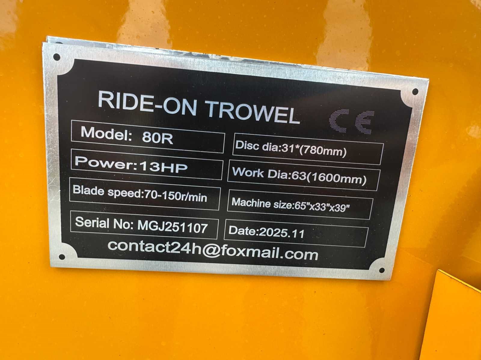 -OHV Benzinemotor 420cc - 13PK. -Werkbreedte 1600mm. -Blad diameter 2 x 780mm -Nieuw -Geen documenten. Nee Merk: SDLOOL Type: 80R Bouwjaar: 2025 Serienummer: MGJ251107 Diameter circa: 780mm Merk motor: OHV 420cc Brandstof: Benzine Eigen gewicht: 270kg Totale afmeting L: 1700mm Totale afmeting Breedte: 850mm Totale afmeting Hoogte: 1000mm