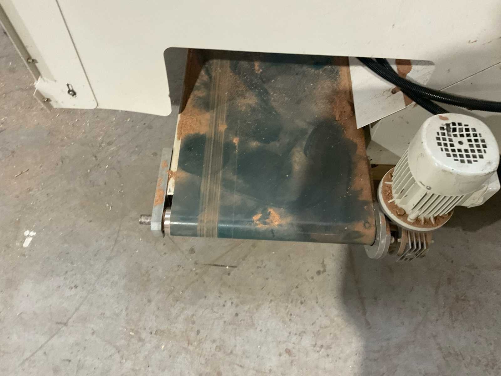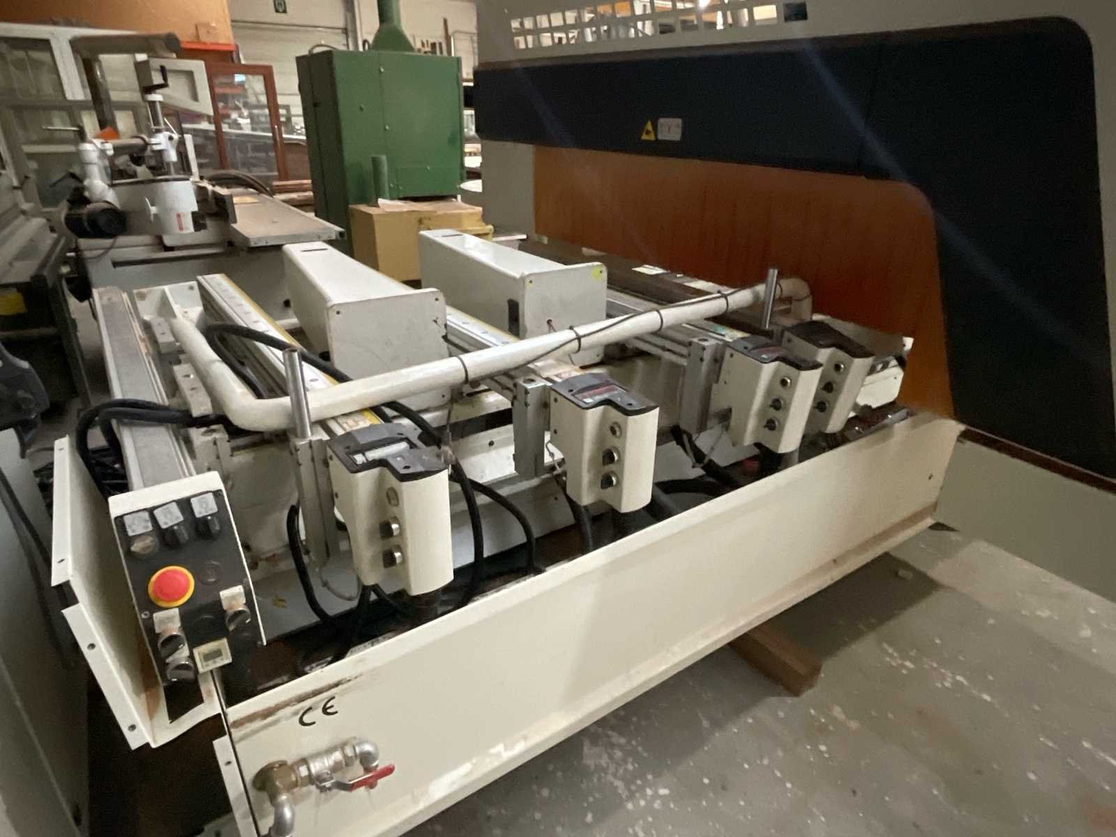 SCM merk houtbewerking CNC bewerkingscentrum, Record 142 TV-model, gebouwd in 2002 Fabrikantgegevens Fabrikant: SCM Group Model: Record 142 TV Bouwjaar: 2002 Serienummer: A01/01352 Voeding: 400 V – Driefasig – 50 Hz Geschatte gewicht: 5.800 kg Beschrijving CNC-machine voor de verwerking van houtpanelen en elementen en afgeleide materialen. 3 Assen De machine is uitgerust met een mobiele portaal, een omhulde bewerkingskop en een vacuümtafel met zuignapklemsysteem om de werkstukken tijdens het bewerken vast te houden. Aanwezigheid van een ingebouwd gereedschapsmagazijn (aantal en type gereedschap niet geverifieerd). De machine wordt geleverd met een aparte elektrische kast, een geïntegreerde bedieningsconsole en een transportband/uitvoertafel die ter plaatse zichtbaar is. Er is een verbinding voor zuigkracht. Zichtbare apparatuur CNC-vacuümtafel met zuignappen Mobiele portaalkraan Gefaired bewerkingskop Gereedschapsmagazijn Aparte elektrische kast Bedieningspaneel Transportband / uitvoertafel Beschermende omheiningen No Merk: SCM Type: Record 142 Bouwjaar: 2002 Serienummer: A01/01352