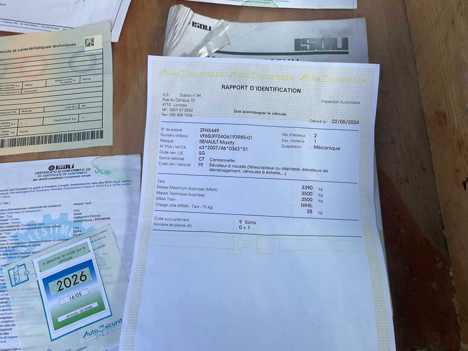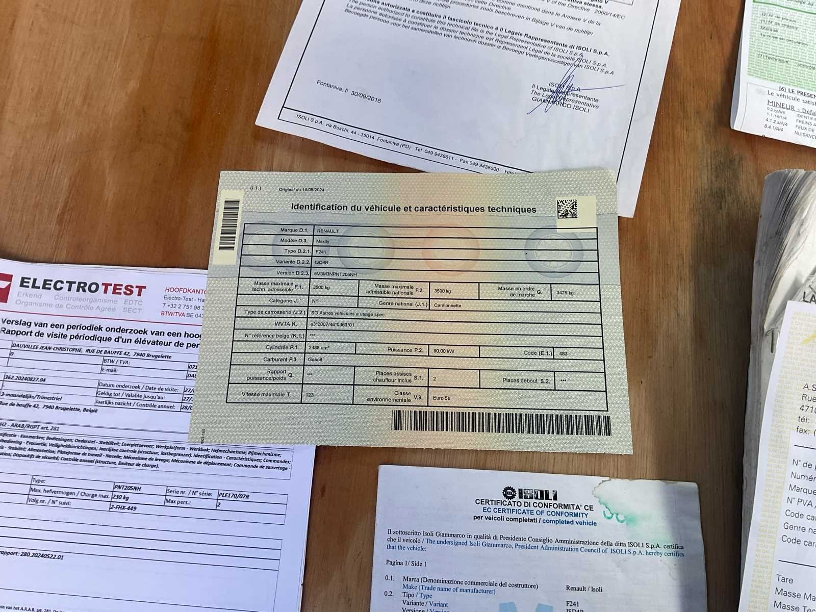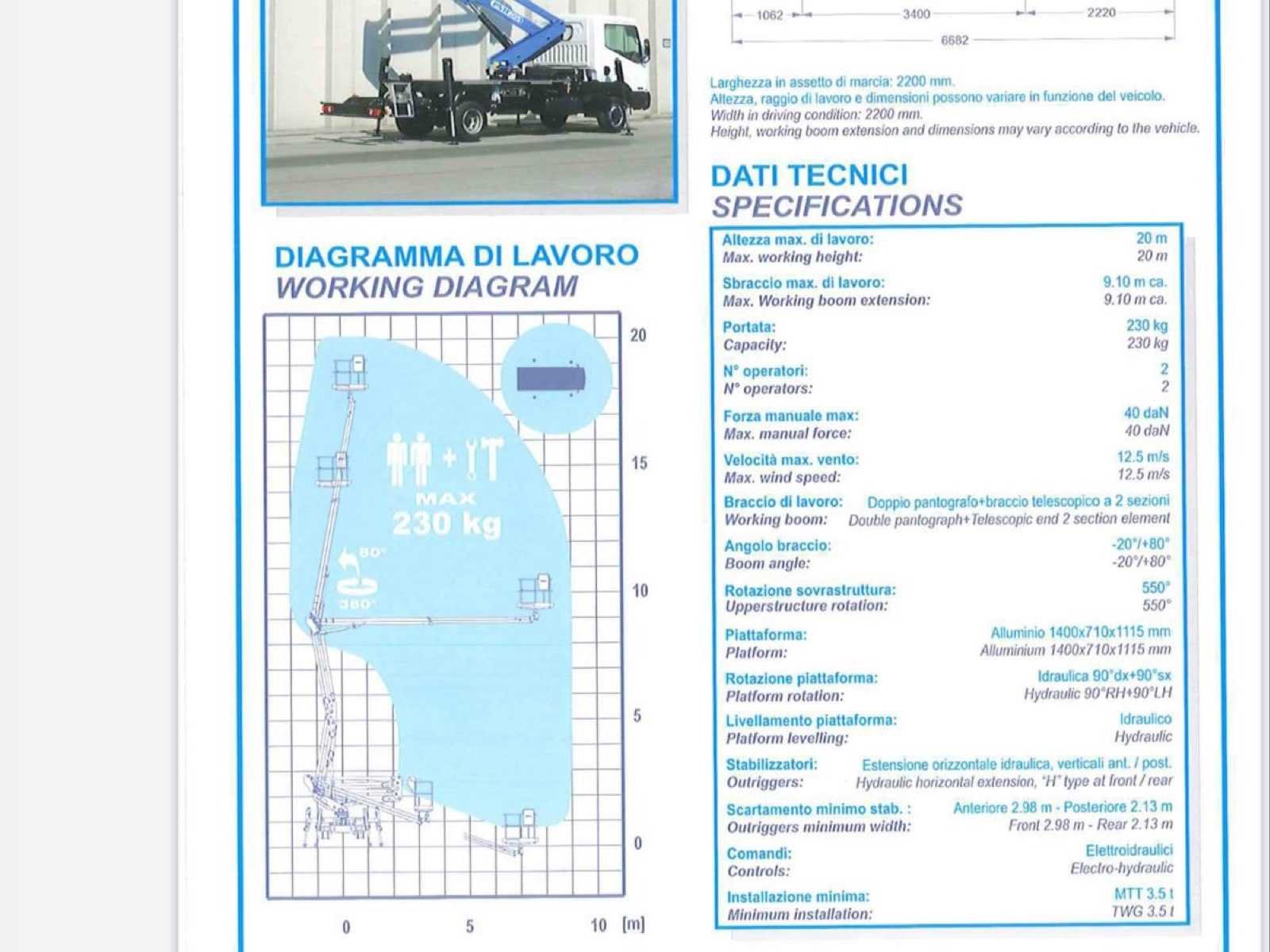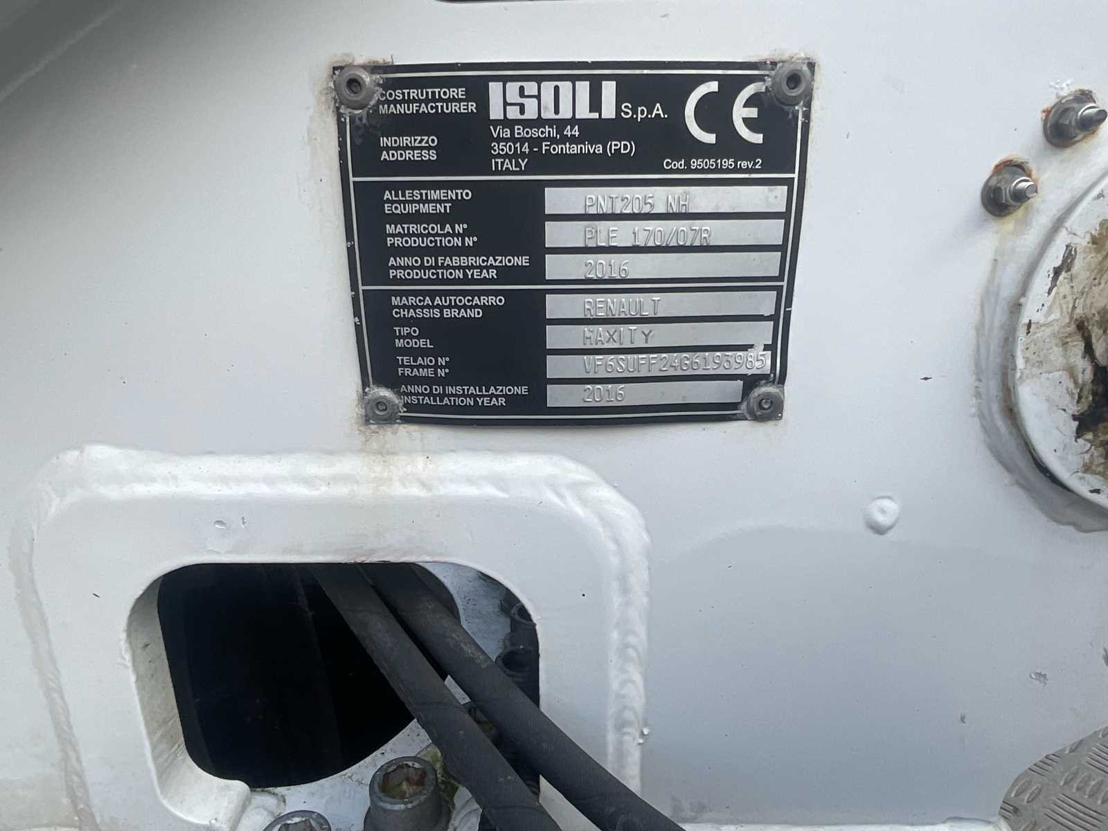 Renault Maxity boom lift truck + Isoli PNT205 gearticuleerde telescopische boom lift – 20 m – 2016 – CT OK Boom lift truck gemonteerd op een Renault Maxity chassis, uitgerust met een Isoli PNT205 NH telescopische en articulated boom lift, met een werkhoogte van ongeveer 20 meter. Ideale configuratie voor moeilijke toegang dankzij de telescopisch + gearticuleerde combinatie die uitstekende hindernisvermijding mogelijk maakt. 👉 Laatst gebruikt 🚛 Voertuig: Merk: Renault Model: Maxiteit Jaar van eerste registratie: 2016 Motor: Diesel Cilinderinhoud: 2488 cc Vermogen: 90 kW EURO-standaard: Euro 5b Kilometerstand: 95,452 km (bevestigd) Transmissie: Handgeschakeld Aantal zetels: 2 (zie noot) 🏗️ Carrycot: Merk: Isoli Model: PNT205 NH Type: Telescopisch en gearticuleerd Jaar: 2016 Werkhoogte: ± 20 m Zijbereik: ± 9,4 m Mandcapaciteit: 230 kg Openingstijden: ± 3.200 uur Capaciteit: 2 personen Winkelwagen- en vloercontroles Torenrotatie Stabilisatie door 4 hydraulische cilinders 230V-aansluiting in het mandje ⚙️ Uitrusting: Aluminium plaat Opbergdozen Volledig stabilisatiesysteem Plaatsbewegwijzering Banden in goede visuele staat Volledige en huidige orders 📄 Documenten: Registratiebewijs Certificaat van conformiteit Identificatierapport Inspectierapport luchtlift (Elektrotest) Technische keuring geldig tot 16-05-2026 🔍 Algemene toestand: Goede algehele conditie Normale slijtage gerelateerd aan professioneel gebruik Gelokaliseerde oxidatiesporen Interieur van de cabine in gebruikte staat Houten beslagen in de cabine Volledig en samenhangend pakket ⚠️ Belangrijke opmerkingen: Autoradio ontbreekt Voorpassagiersstoel aanwezig, met laadvermogenbeperking (GTV vereist) Ongedocumenteerd onderhoud Laatst gebruikt No Merk: Renault Maxity Type: + nacelle télescopique articulée Isoli PNT205 Bouwjaar: 2016 Serienummer: VF6SUFF24G6193985 Diesel: true Motorvermogen (kW): 90kW Schaarhoogwerker: true Telescoop hoogwerker: true Knikarm hoogwerker: true Werkhoogte: 20000mm Afgelezen urenstand: 3200