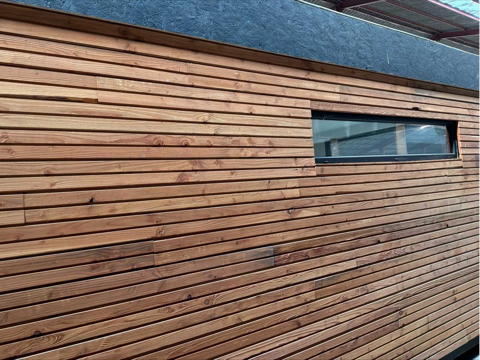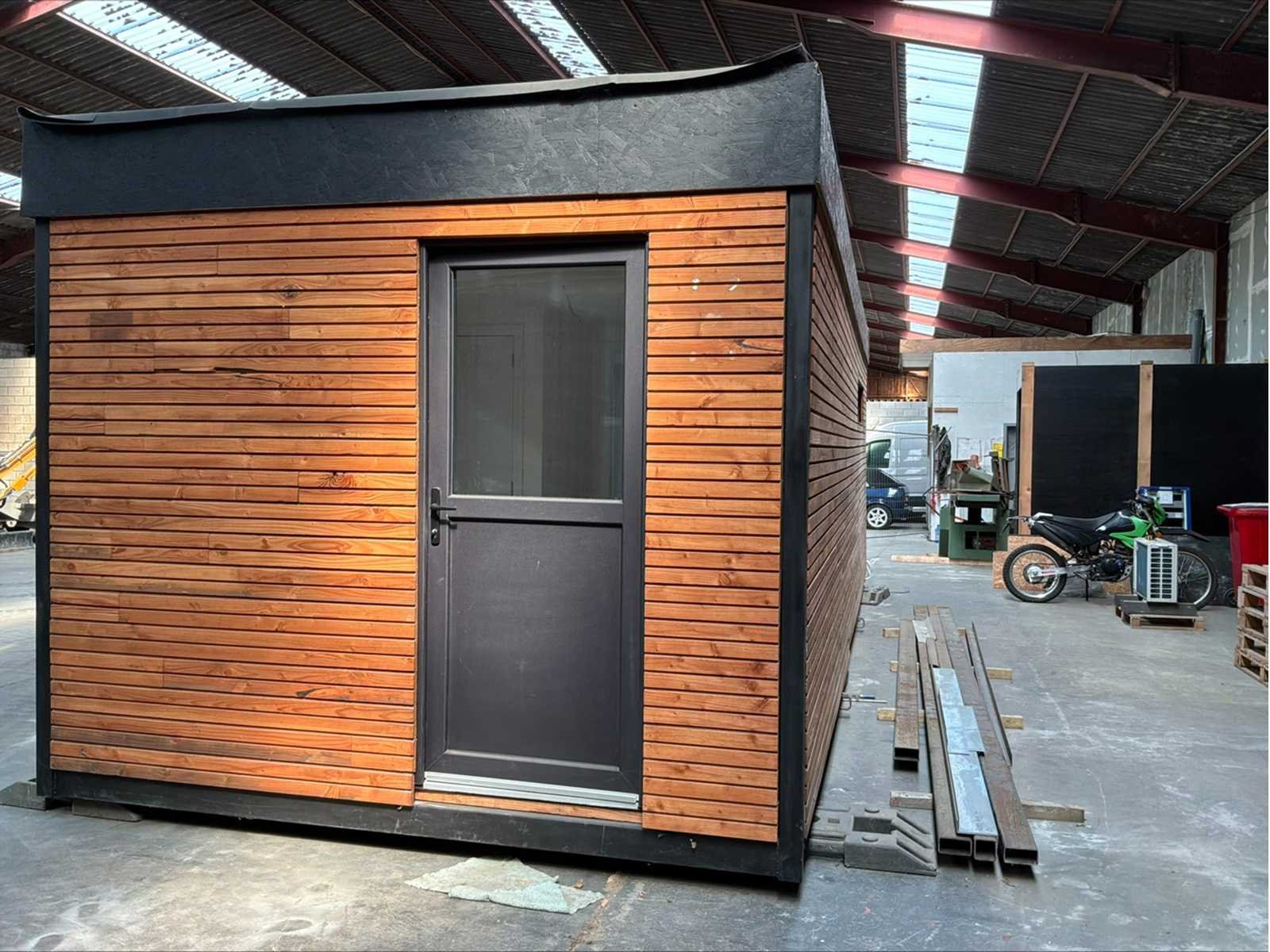 Module gebouwd met steenwolisolatie, met EPDM-dak en Douglashoutbekleding. Het omvat dubbelglasvensters, evenals afgewerkte vloeren en schilderijen. Afmetingen: 8 m lang, 3,20 m breed en 2,60 m hoog. Nee Totale afmeting L: 8000mm Totale afmeting Breedte: 3200mm Totale afmeting Hoogte: 2600mm