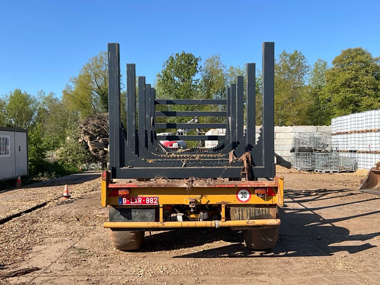 Deze aanhangwagen heeft een chassis van het merk ORKA. Op dat chassis werd een nieuwe stevige installatie gebouwd om bomen te transporteren. Deze is in werkende staat. No Laadvermogen: 15000kg Hydraulische remmen: true Totale afmeting L: 6000mm Totale afmeting Breedte: 2500mm Totale afmeting Hoogte: 3000mm
