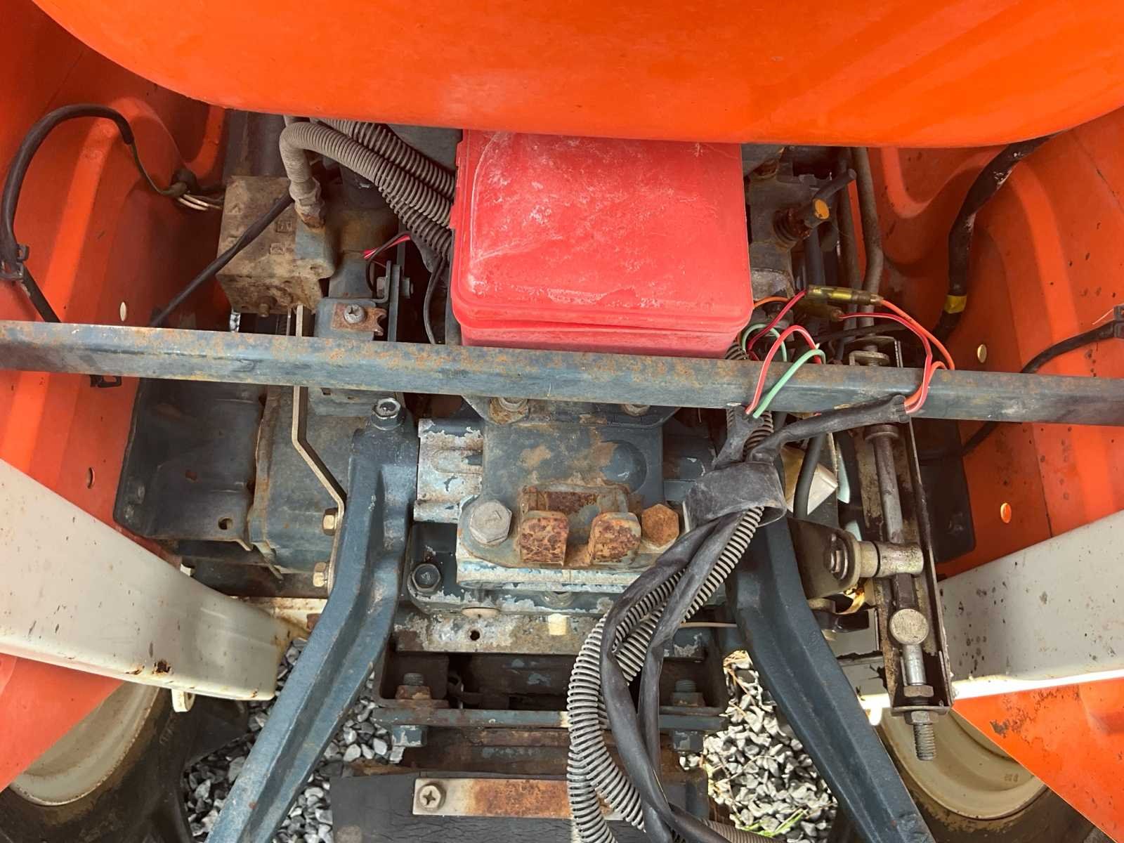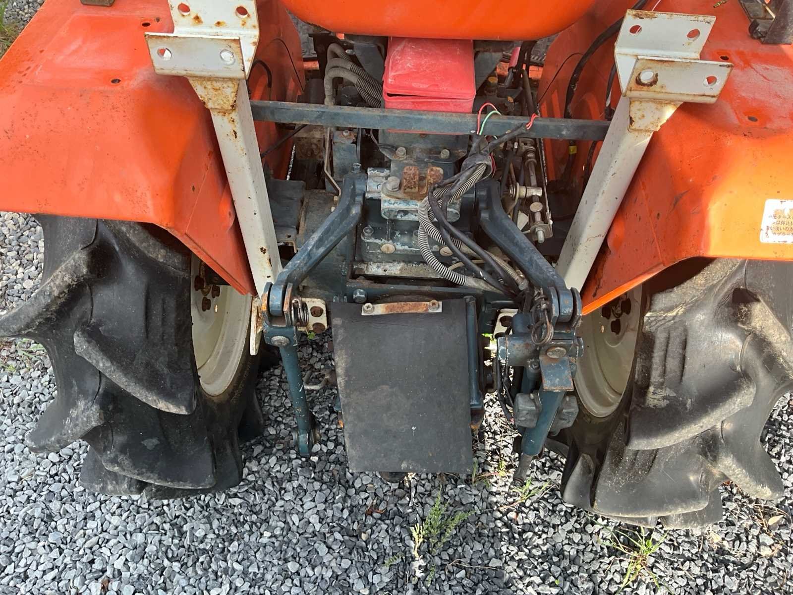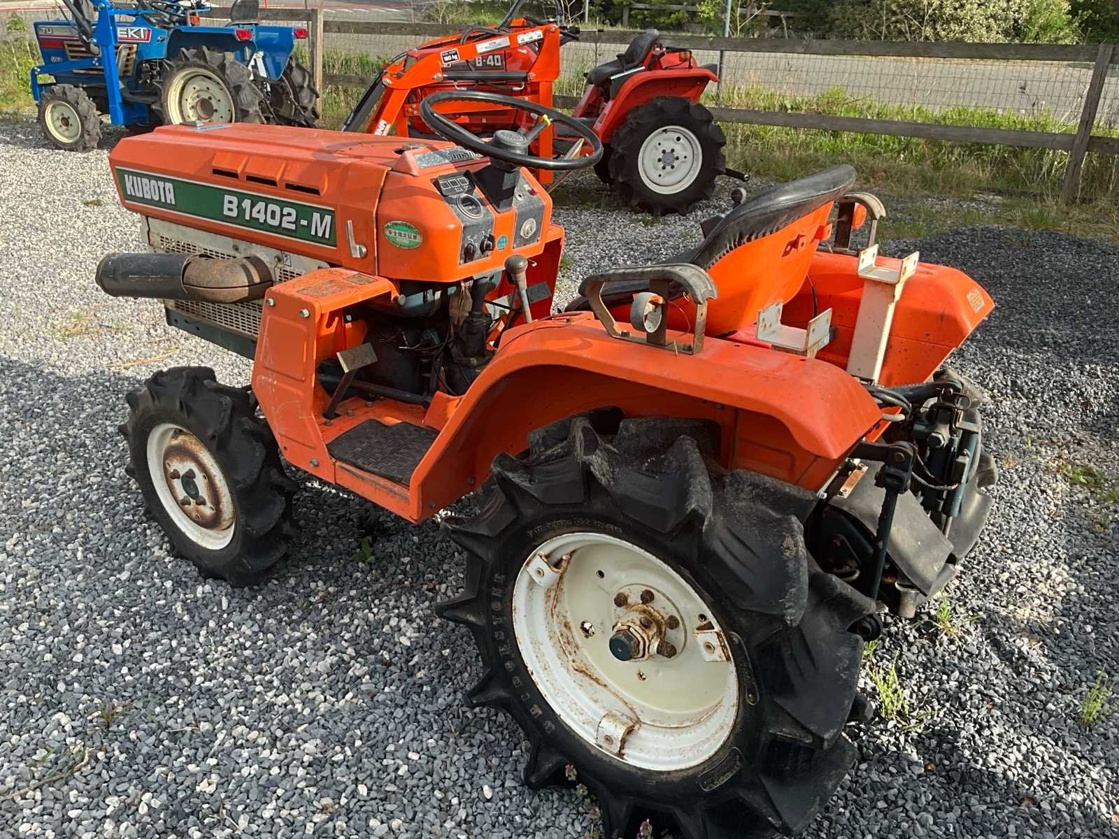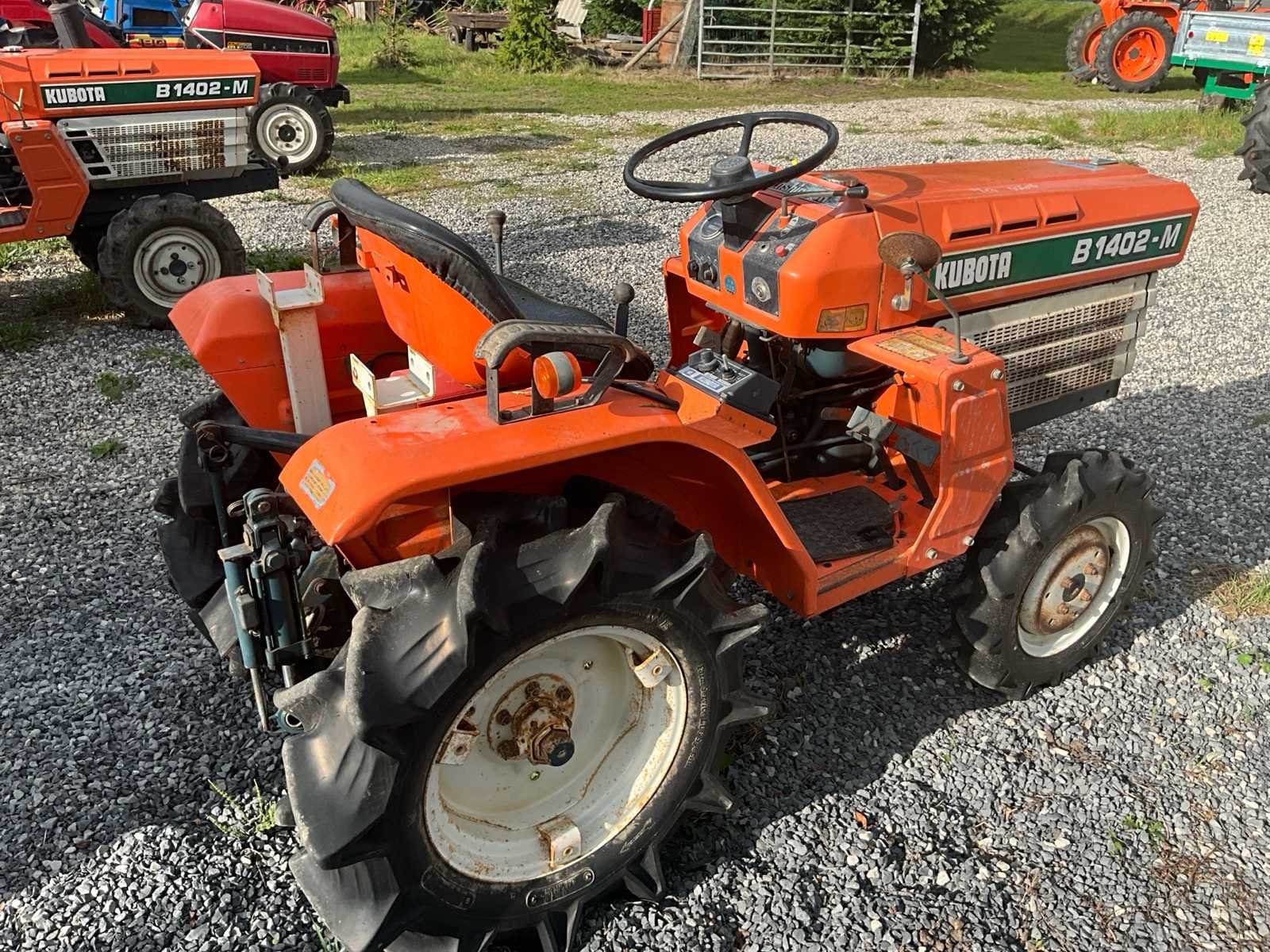 Afgelezeneurenstand: 5911 uur Versnellingsbak: Mechanisch (zichtbaar: N, 1, 2, 5 — shuttle/rijrichtingwissel) Fronthefinrichting: ✅ ja (zichtbaar vooraan) Aftakas: ✅ ja (zichtbaar op foto) Geschatte gegevens voor Kubota B1402: Eigen gewicht kg: ±670 kg Bandenmaat voor: 5.00-12 Bandenmaat achter: 8-18 Aftakastoerental rpm: 540 rpm GS Code: 8701.91 4WD: ✅ ja (DT = Drive Traction = 4WD) Nee Merk: Kubota Type: B1402-M Motorvermogen (kW): 10kW Afgelezen urenstand: 5911 Versnellingsbaktype: Mechanisch (zichtbaar: N, 1, 2, 5 — shuttle/rijrichtingwissel) Aantal hydraulische ventielen voor: 1 Aantal hydraulische ventielen achter: 1 Chassisnummer: 52614