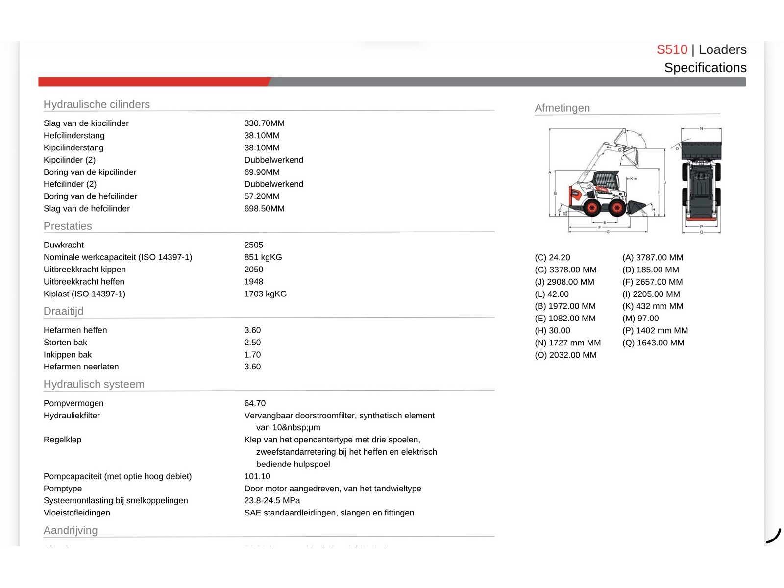 Blob:https://www.bobcat.com/a51f10ad-950c-4a50-be72-7a794f0a6fc2 Nee Merk: Bobcat Type: S510 Bouwjaar: 2017 Serienummer: AZN411662 Motorvermogen (kW): 36kW Brandstof: Diesel Afgelezen urenstand: 7990 Eigen gewicht: 2800kg