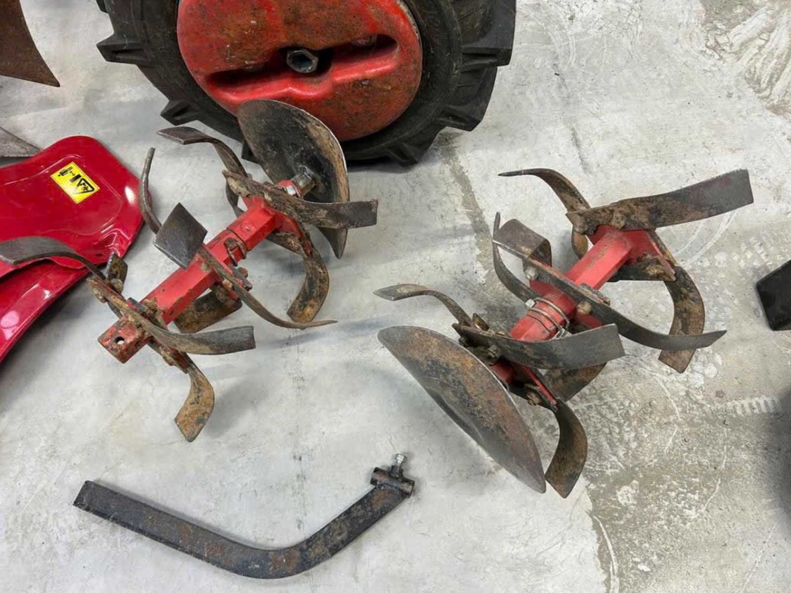 Honda F560 spade tweewielige tractor -Heel erg goede staat -Weinig zin -Geen kosten te verwachten -Zeer compleet: omkeerbare ploeg, frees, transportwielen, landbouwwielen, voorgewicht en massa in de wielen -Klaar om te gaan Verkocht zoals het is - zie foto's De Honda F560 is een professionele benzine-tractor met twee wielen, ontworpen voor intensieve grondbewerking: groentetuin, groot terrein, hard of agrarisch terrein. Het is een model dat bekendstaat om zijn robuustheid, veelzijdigheid en Honda-betrouwbaarheid. 👉 Hij wordt vaak aangeduid als een "tweewielige tractor", die in staat is verschillende landbouwmachines te vervangen. ⚙️ Motor & Prestaties Motor: Honda GX160 (4-takt, OHC) Verplaatsing: 163 cm³ Vermogen: ca. 3,6 kW (≈ 4,8 pk) Brandstof: Loodvrije benzine Luchtkoeling 👉 Zeer betrouwbare, koppelkrachtige motor, ontworpen om lang te werken zonder te oververhitten. 🔁 Transmissie & tandwielen Versnellingsbak: 6 voorverkeerssnelheden 2 achteruitversnellingen Mechanische transmissie met PTO Scramble verwijderingssysteem (maakt het makkelijker om te draaien) 👉 Biedt uitstekende controle afhankelijk van het type terrein (langzaam ploegen, snel bewegen). 🛞 Grondbewerking Werkbreedte: tot ~90 cm Diepte: tot ~30–33 cm Mogelijke hulpmiddelen: Aardbeien (rotavator) Ploeg Scorer Aardappeltrekker Harrow, scarifier 👉 Zeer veelzijdig: graven, hakken, ploegen, grondvoorbereiding. 🧰 Uitrusting & ergonomie Stuur: Hoogteverstelbaar Lateraal deportatie Omkeerbaar (werken zonder op de grond te lopen) Handgeschakelde koppeling "Dode man" beveiliging Power take-off (PTO) voor accessoires 👉 Ontworpen om vermoeidheid te verminderen en de werknauwkeurigheid te verbeteren. 📏 Afmetingen & Gewicht Gewicht: ~53 tot 66 kg afhankelijk van de versie Afmetingen: ca. 161 × 61 × 99 cm Tank: ~2,2 L 🚀 Gebruik Ideaal voor: Grote moestuinen Landbouwwerk Harde of verdichte vloeren Gebruik: Van semi-professioneel naar professioneel 👉 Zeer effectief waar een simpele tuinfreser niet voldoende is. No Merk: Honda Type: F560