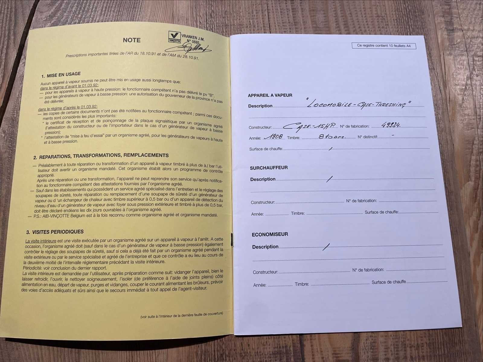 Oorsprong: Nevrasca 11 ton Houthoutskool Functioneel AIB Vincotte Certificaat van Aggregatie No Merk: Case Type: 65HP Bouwjaar: 1908