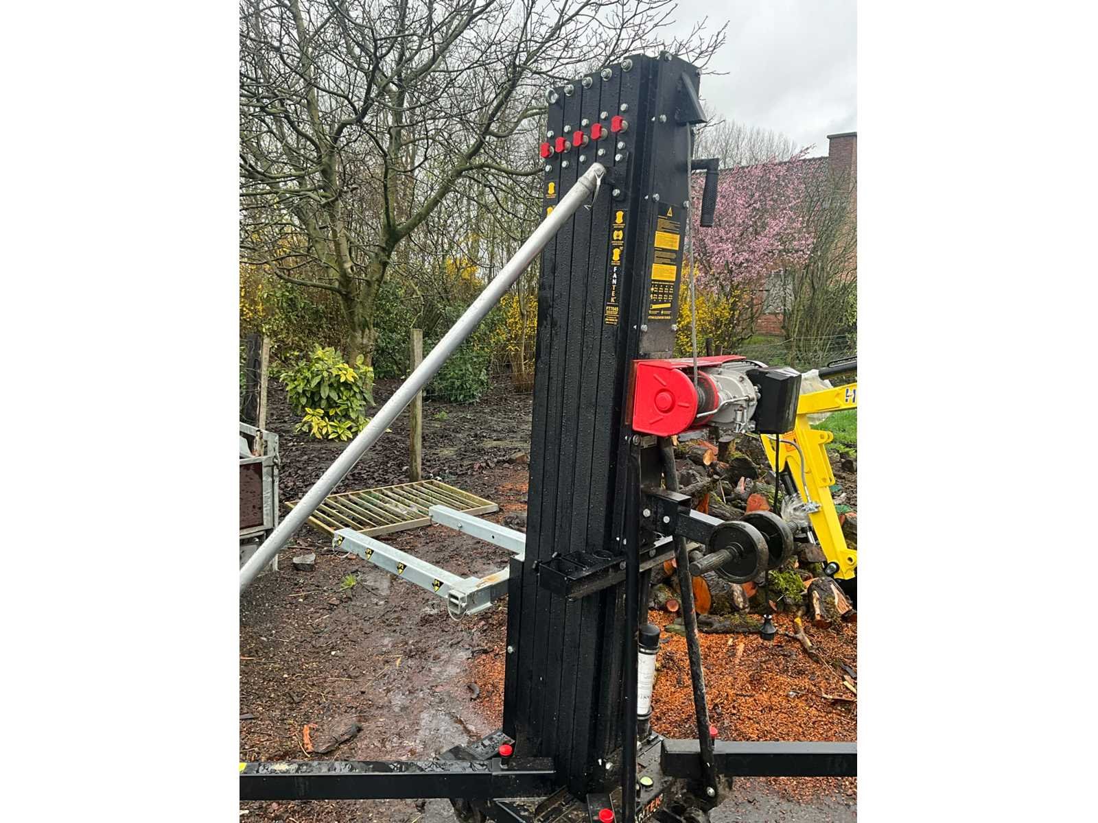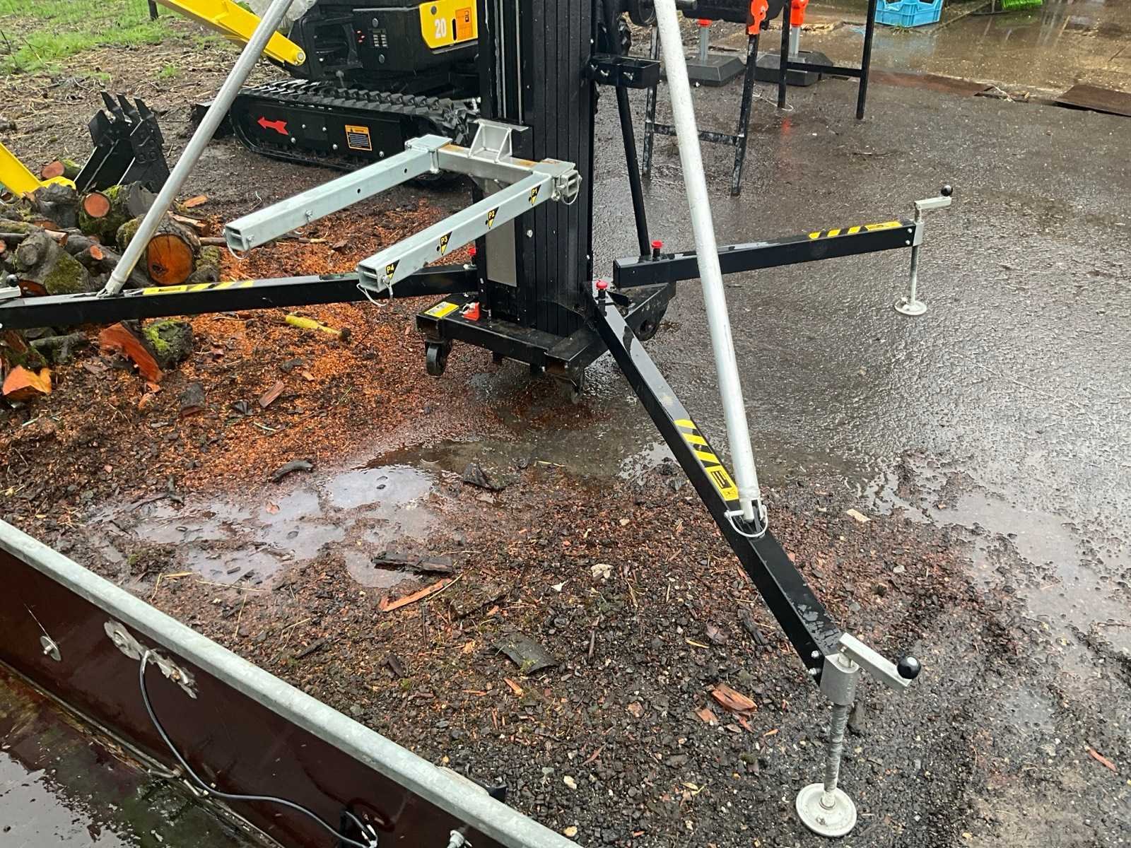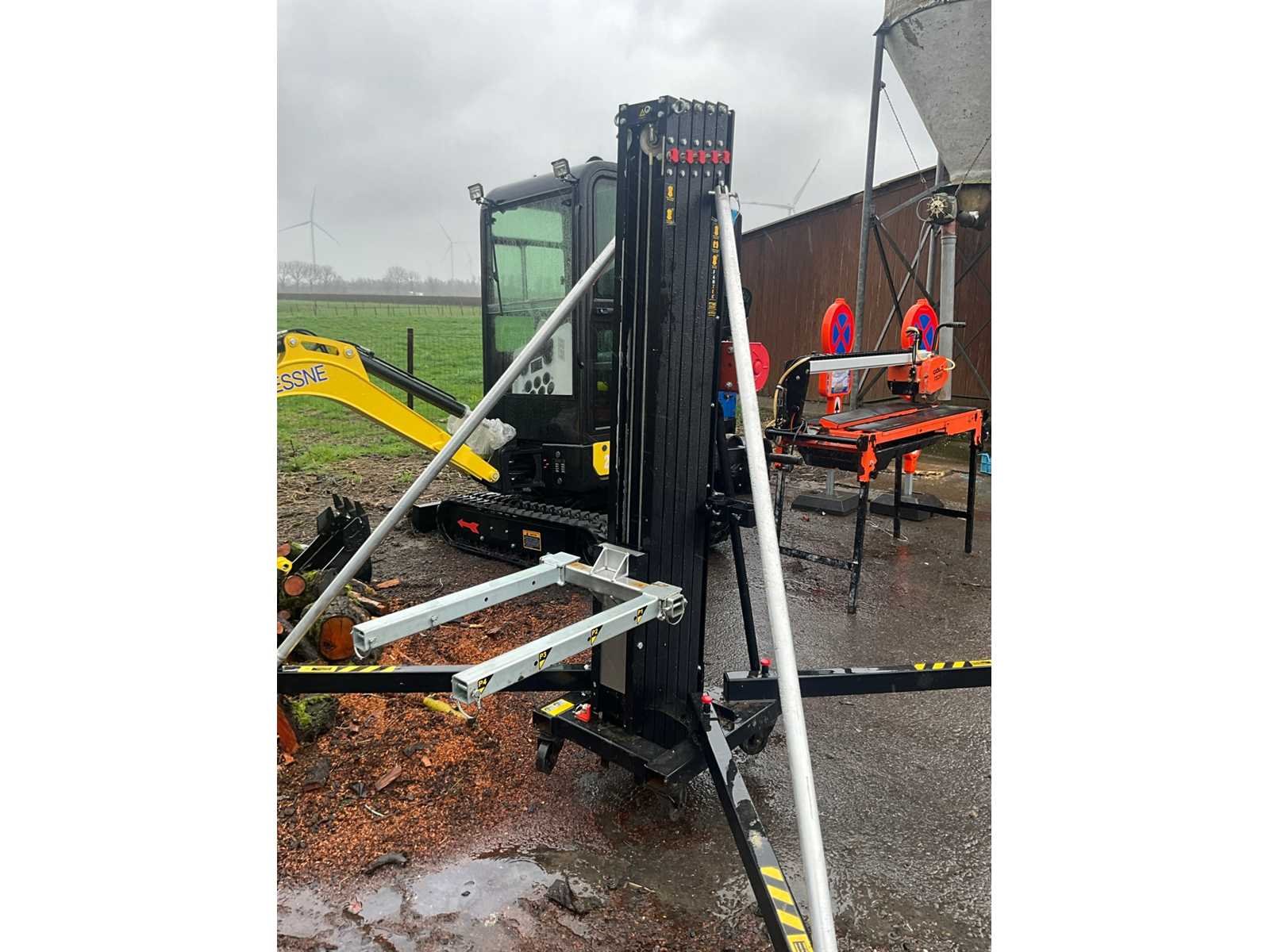 Met minimaal hoogte 190 cm en maximaal tot 672 cm. Maximum capaciteit 450 kg. Totaal circa 300 cm doormeter opgesteld. Statief verrijdbaar. No Merk: Fantek Type: 7045
