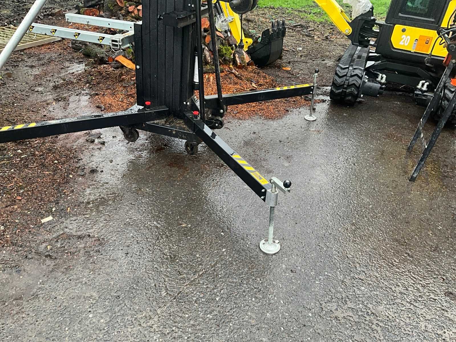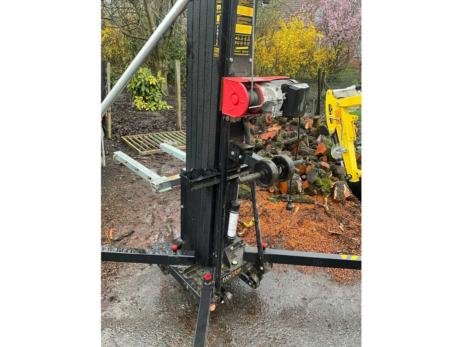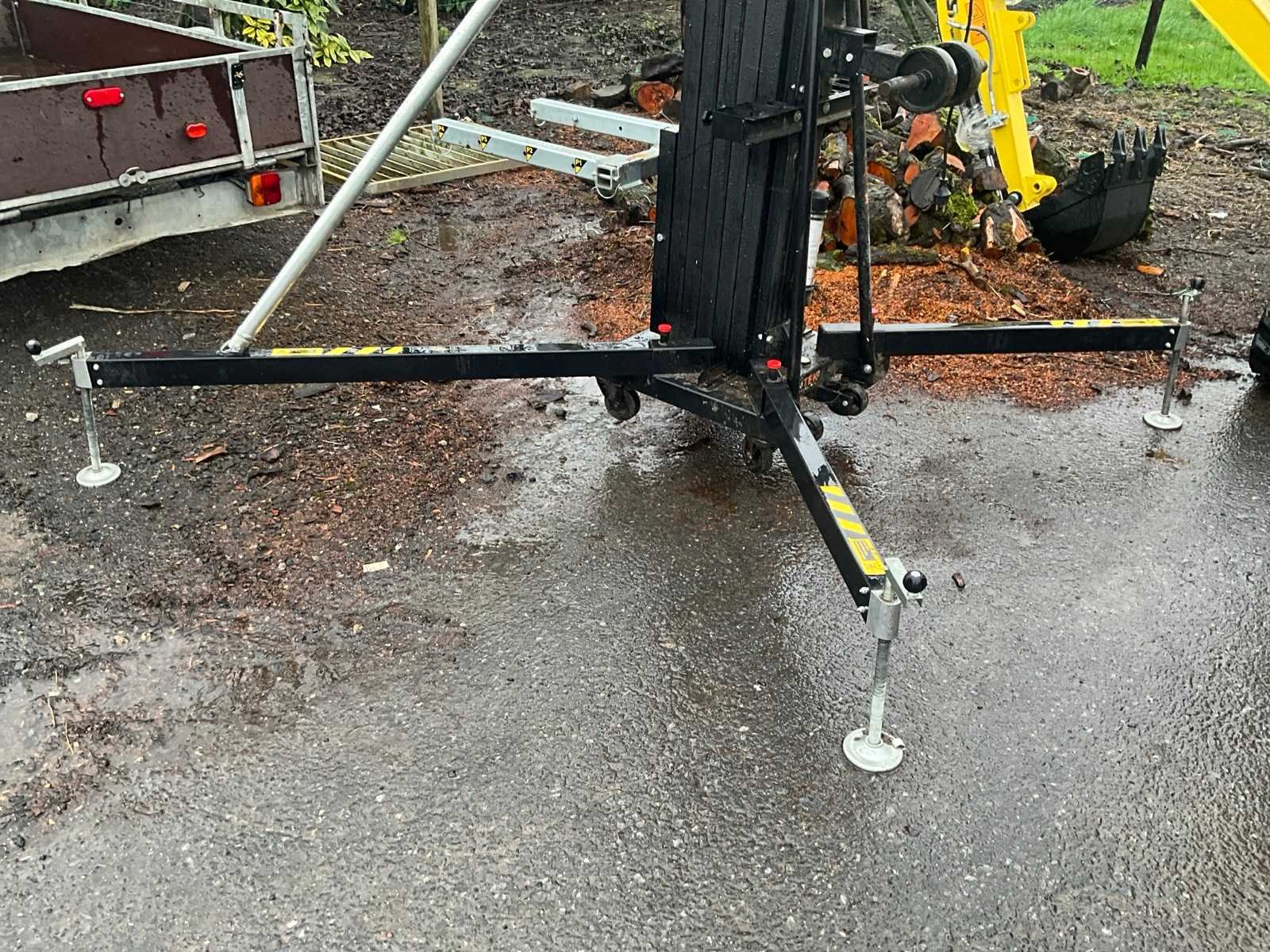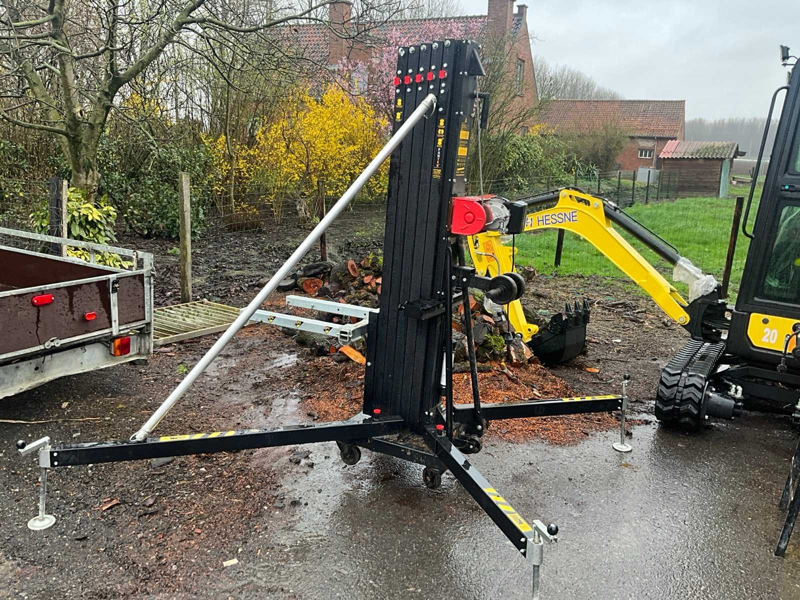Met minimaal hoogte 190 cm en maximaal tot 672 cm. Maximum capaciteit 450 kg. Totaal circa 300 cm doormeter opgesteld. Statief verrijdbaar. No Merk: Fantek Type: 7045