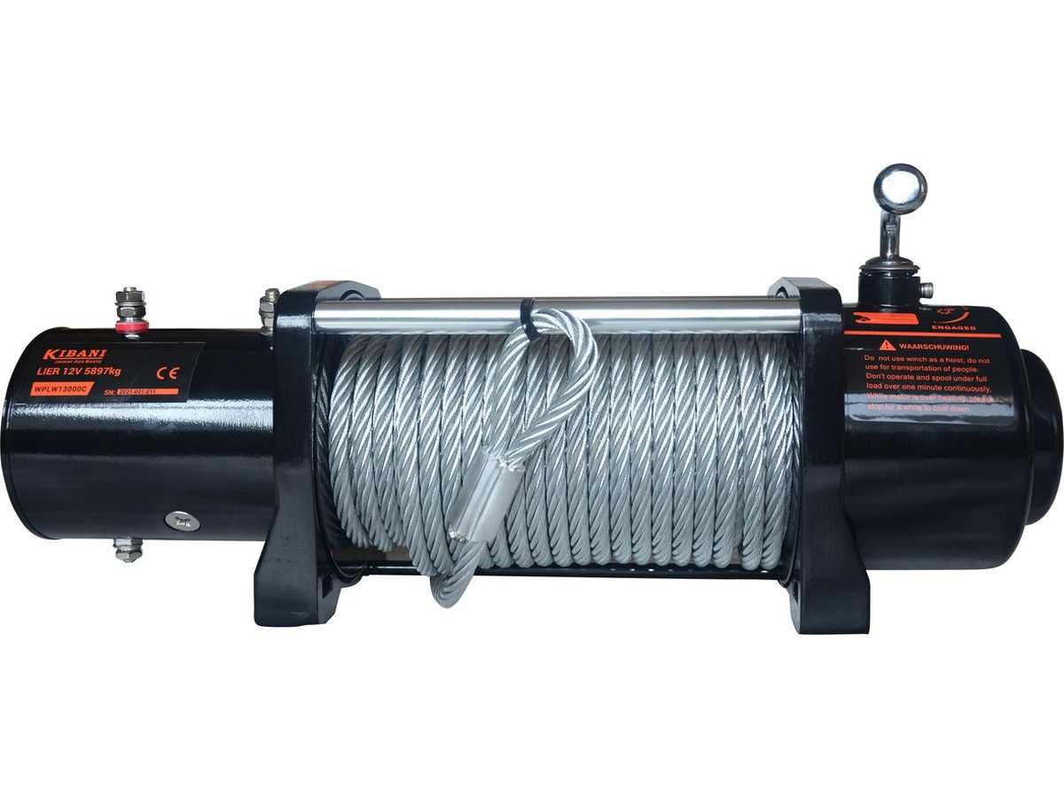 Staalkabel van 9.5 mm en een lengte van 26 meter. Nee Merk: Kibani Hijsvermogen: 5897kg Draadloze afstandsbediening: true Met kraanboek: true