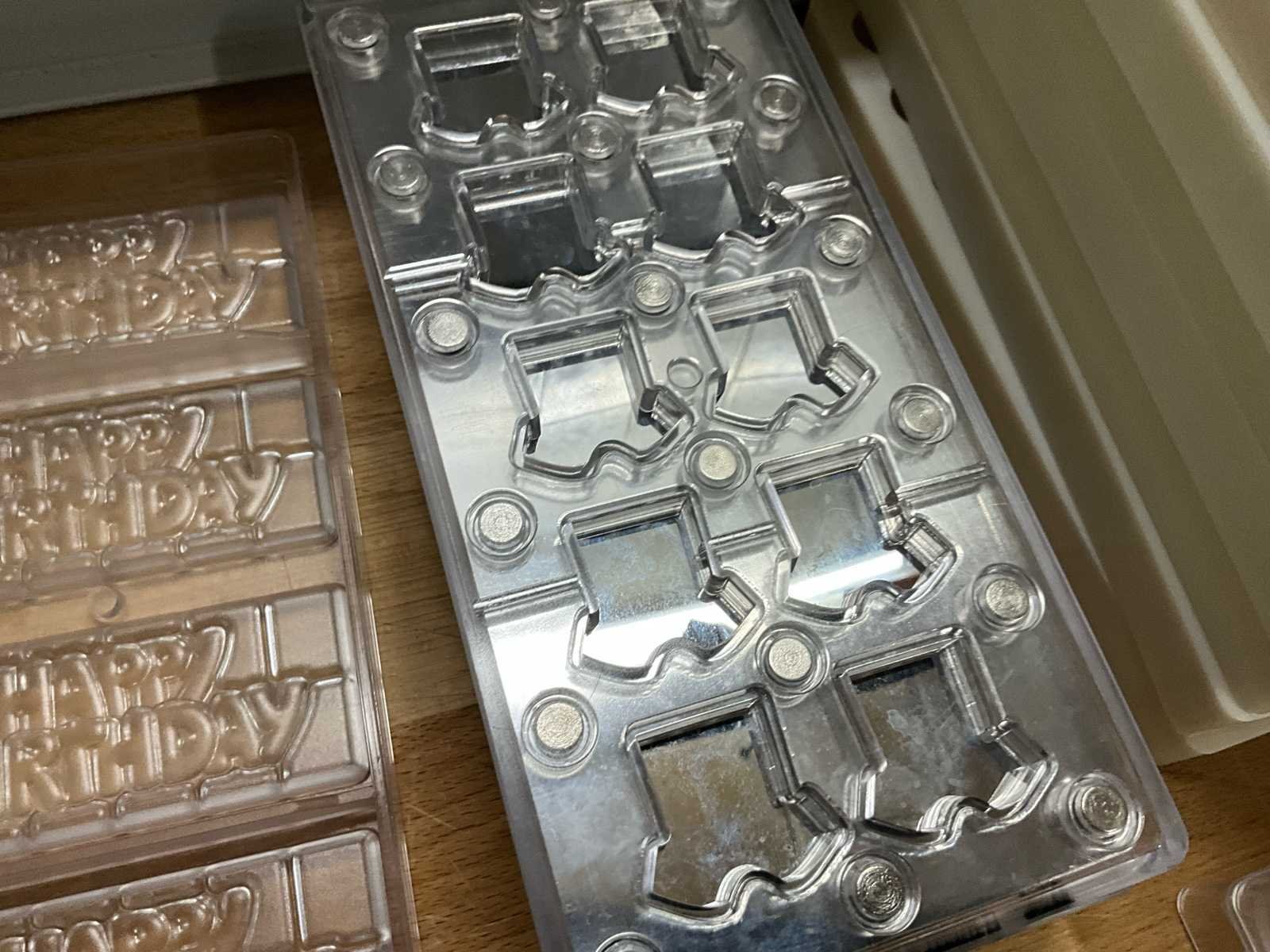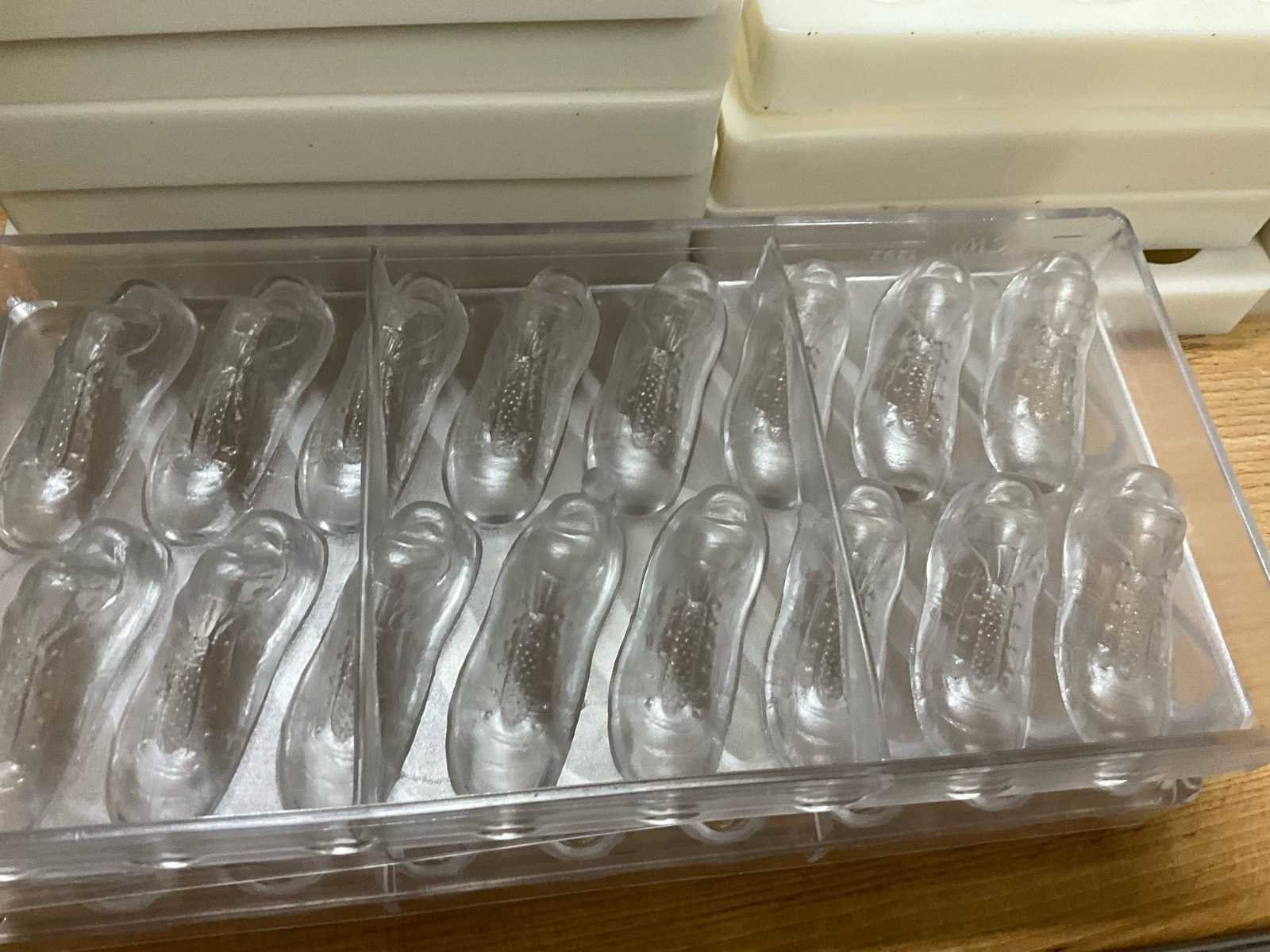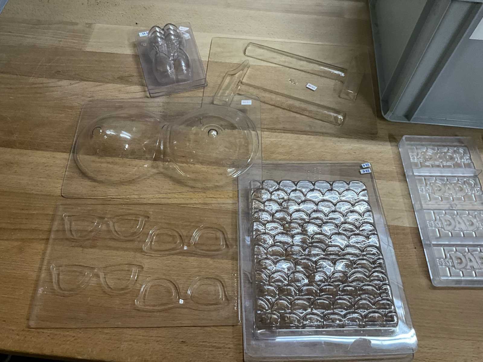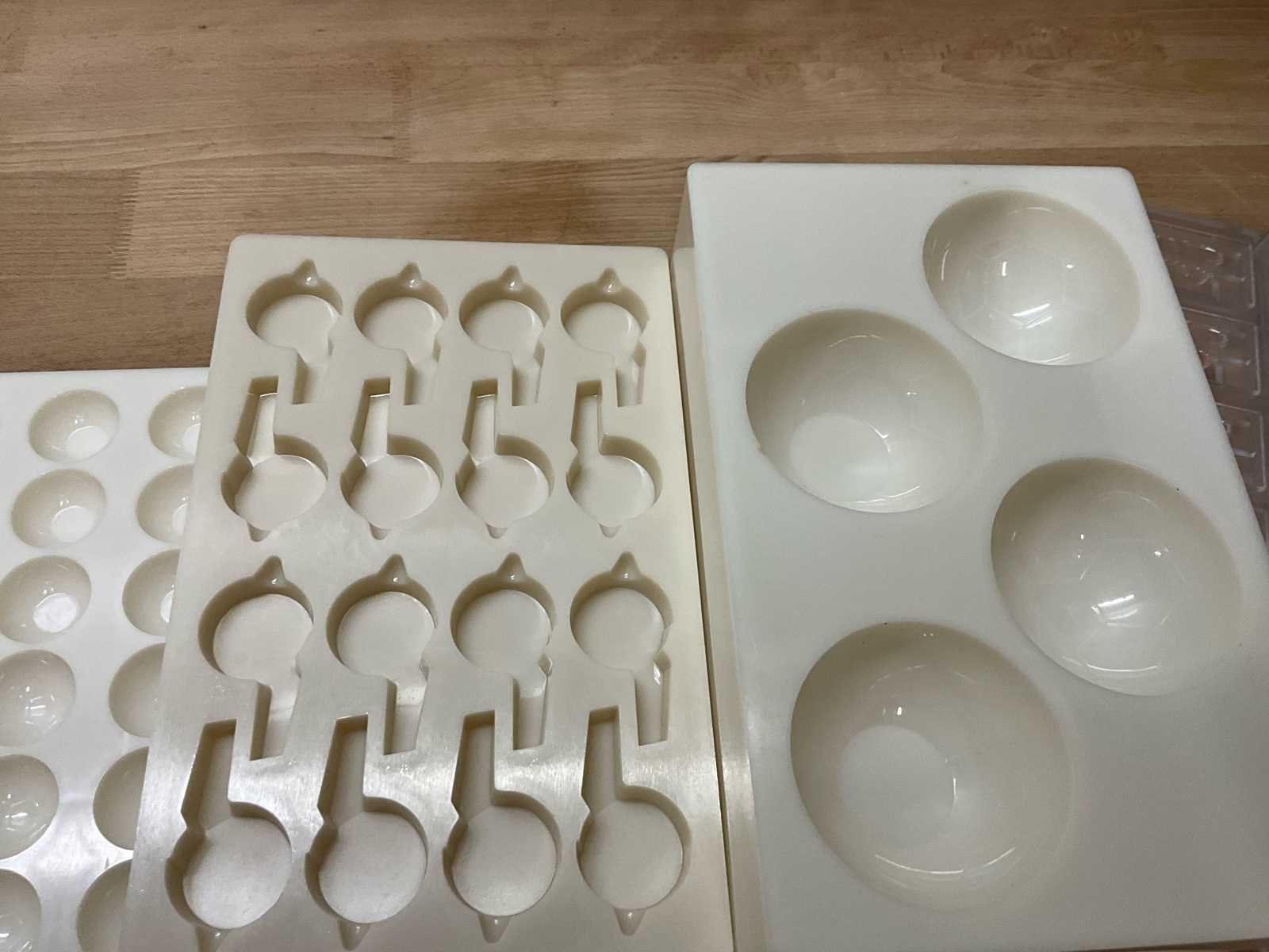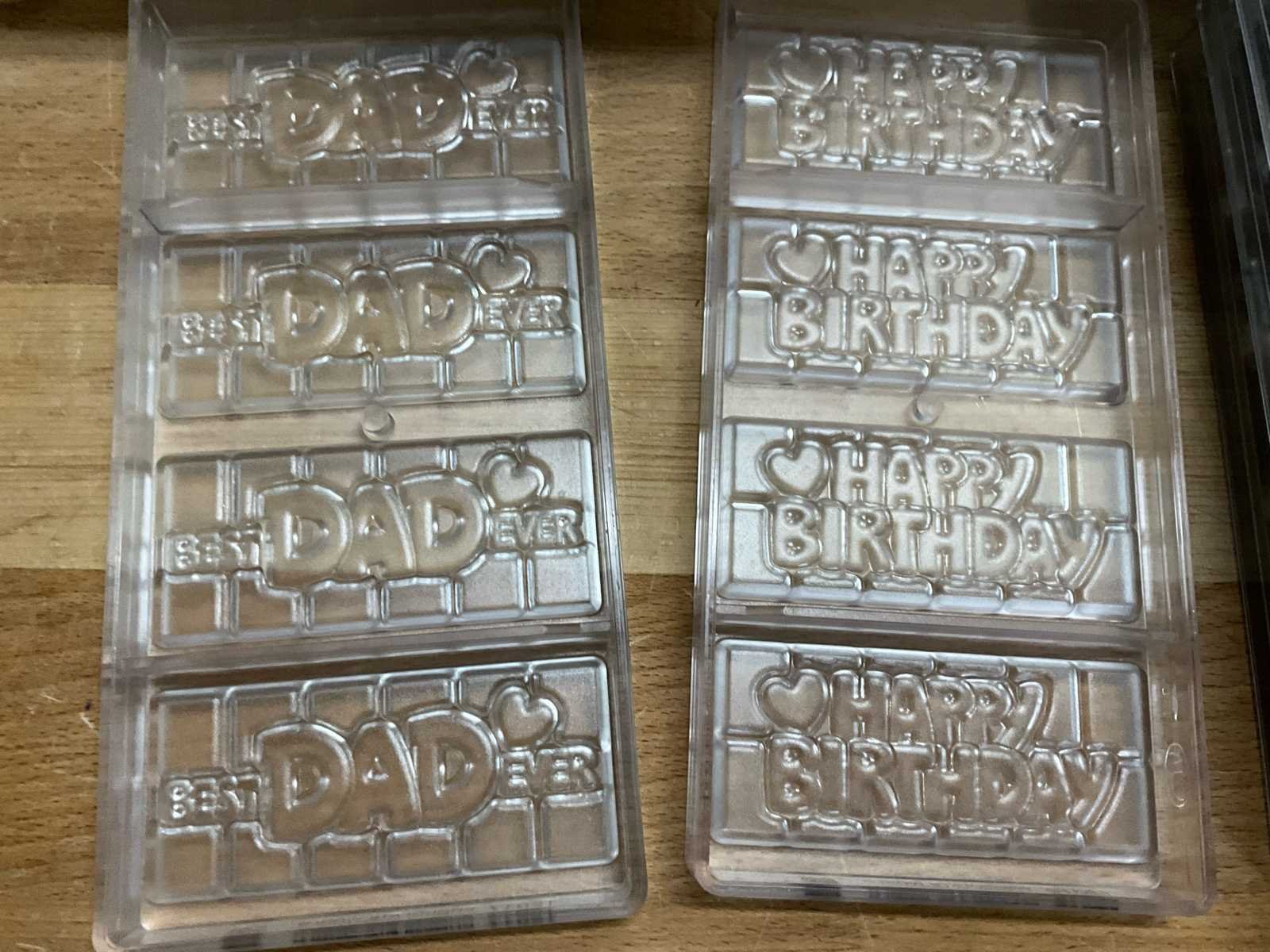 47 chocoladevormen / praline- en figuurmallen, mix van Chocolate World, Callebaut en andere kwaliteitsmerken. Mooie gevarieerde partij met seizoens- en themavormen zoals voetbal, Vaderdag, Moederdag, verjaardag, figuren, halve bollen en speciale vormen. Ideaal voor chocolatier, bakkerij, workshopruimte of hobbyist. Inhoud: 47 stuks totaal: Polycarbonaat mallen + witte productieplaten, Mix van professionele merken, Diverse thema’s en maten - Staat: nette gebruikte staat, direct inzetbaar.- opbergbox inbegrepen No Merk: Chocolate World