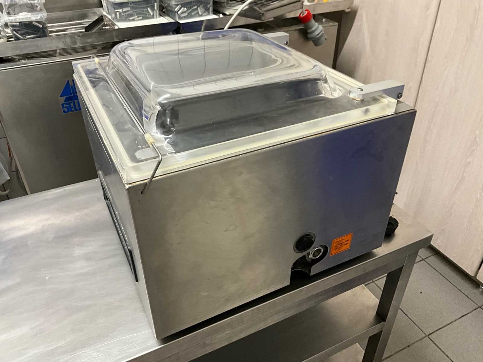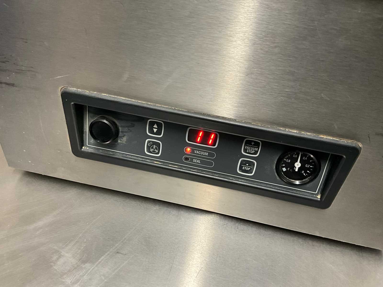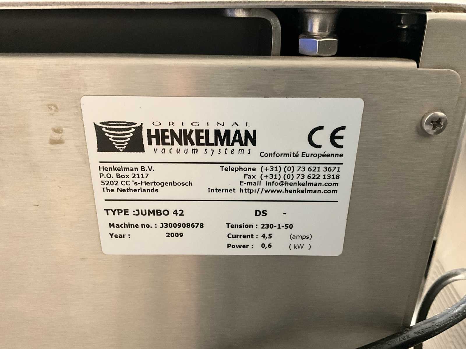Professionele en volledig functionele kamer-vacuümmachine van het gerenommeerde merk Henkelman, type Jumbo 42. Ideaal voor horeca, slagerij, traiteur, voedingsatelier of professionele keuken. Geschikt voor het vacuüm verpakken van vlees, vis, groenten, bereidingen en sous-vide toepassingen. Robuuste inox uitvoering met transparant deksel en eenvoudige bediening via frontpaneel. Machine werd getest en werkt correct. Inclusief 2 bakken met diverse vacuümzakken, onmiddellijk inzetbaar. No Bouwjaar: 2009