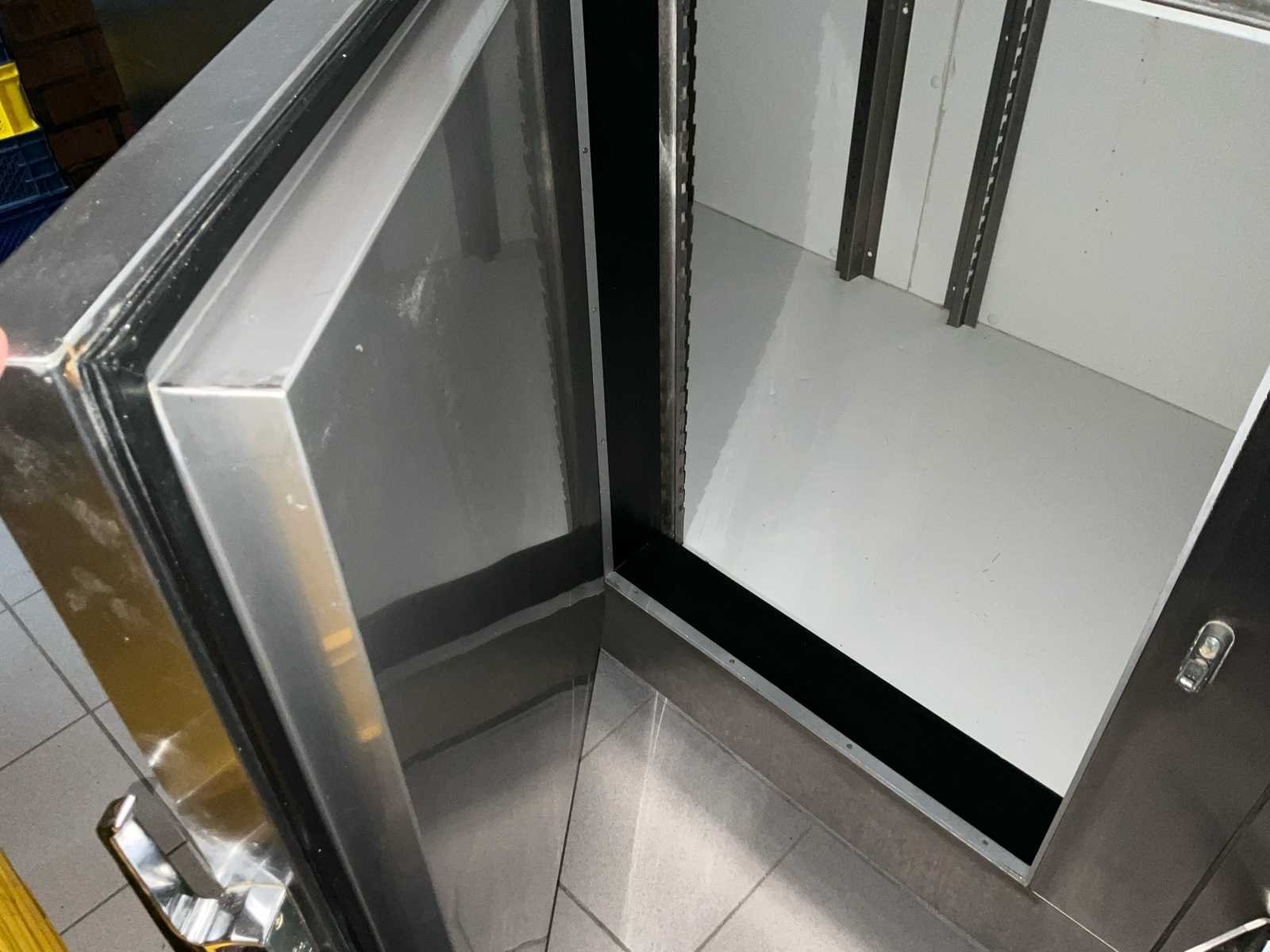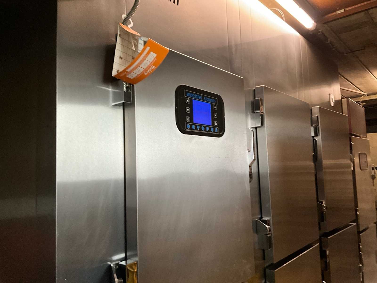 Zeer degelijke en professionele Wachtel Stamm OCTOPUS shockvriezer / snelkoeler in volledig roestvrij staal (inox). Dit groot industrieel model is uitgerust met 4 afzonderlijke geïsoleerde deuren, ideaal voor intensief professioneel gebruik in bakkerijen, patisserie, grootkeukens en voedingsproductie. Dankzij de digitale OCTOPUS computersturing kunnen verschillende koel- en vriesprogramma’s ingesteld worden. Op het scherm zichtbaar: Schokken – Bewaren – Handmatig. Binnenzijde voorzien van stevige rails/geleiders voor rekken, trays of bakplaten - Afmetingen: Breedte: 285 cm, Diepte: 120 cm, Hoogte: 265 cm - FUNCTIONEEL - normale gebruikssporen No Merk: Wachtel Stamm Model: Octopus Lengte: 120cm Breedte: 285cm Hoogte: 265cm