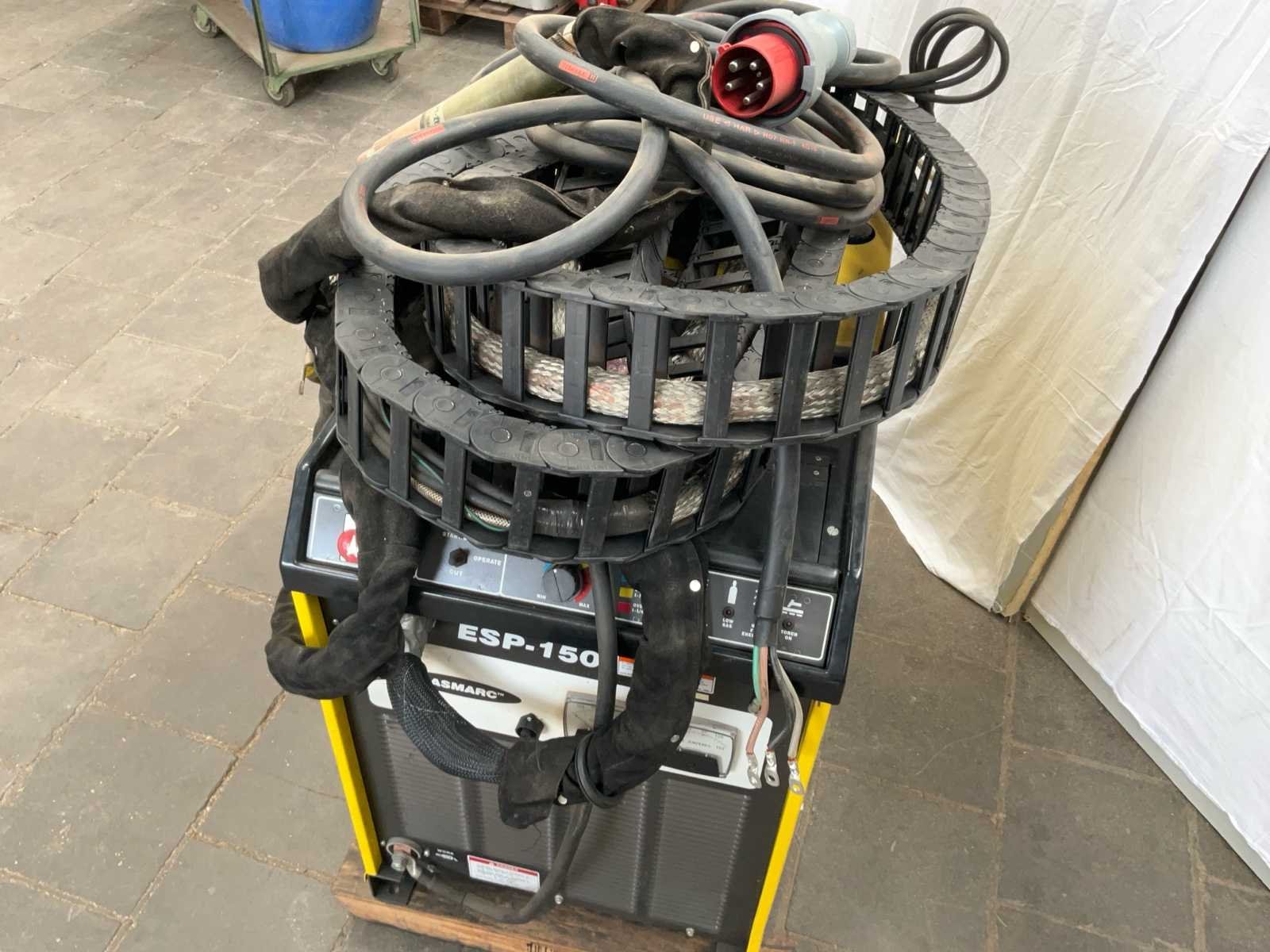 ESAB ESP-150 plasma snijmachine. 150A industriële plasmasnijder. 3-fase aansluiting 380/400/415V. Inclusief toorts en kabels. Fan cooling. Machinegewicht ca. 360 kg. Afkomstig uit bedrijfsomgeving. Nee Merk: ESAB Type: ESP-150 Plasma Bouwjaar: 2004 Serienummer: PS-K4110001 Nominale vermogen: 40kVA Max. lasvermogen: 50kVA Uitlading: 0mm Werkslag: 0mm Aansluiting: 400V Machinegewicht: 360kg Afmeting l: 1100mm Afmeting b: 700mm Afmeting h: 1100mm GS Code: 851531