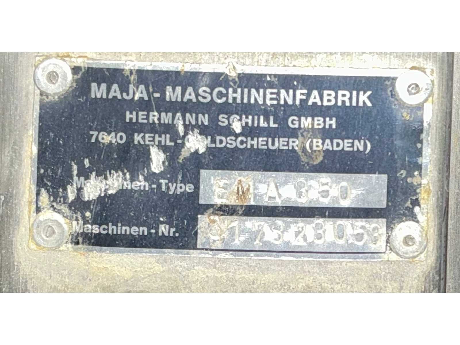 De MAJA EMA 350 is een compacte, verrijdbare ontzwoerdmachine, ontworpen voor gebruik in slagerijen en beenhouwerijen. Het is een betrouwbare machine die wordt gebruikt voor het efficiënt verwijderen van zwoerd (huid) van diverse stukken vlees. Nee Merk: Maja Type: EMA350 Totale afmeting L: 620mm Totale afmeting Breedte: 650mm Totale afmeting Hoogte: 980mm