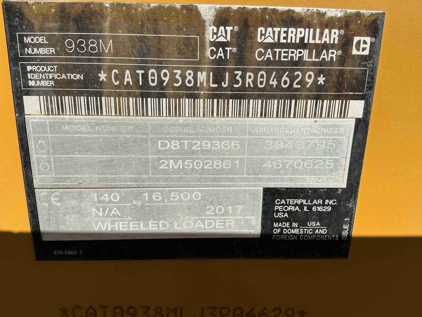 Voorzien van high lift Nee Merk: Caterpillar Type: 938M Bouwjaar: 2017 Serienummer: CAT0938MLJ3R04629 Motorvermogen (kW): 140kW Brandstof: diesel Bedrijfsgewicht: 16500kg Bandenmaat: 20.5R25 Afgelezen urenstand: 13993