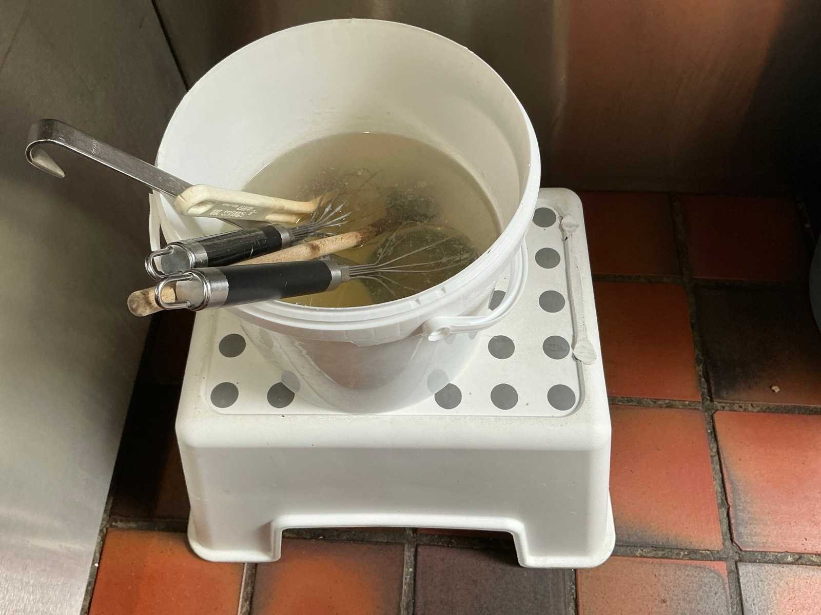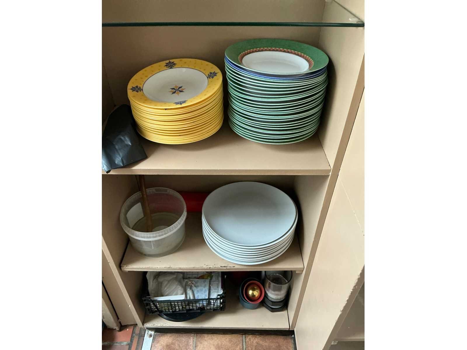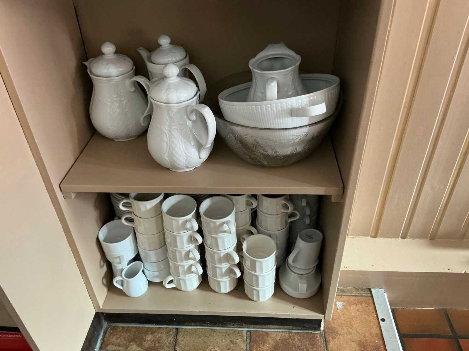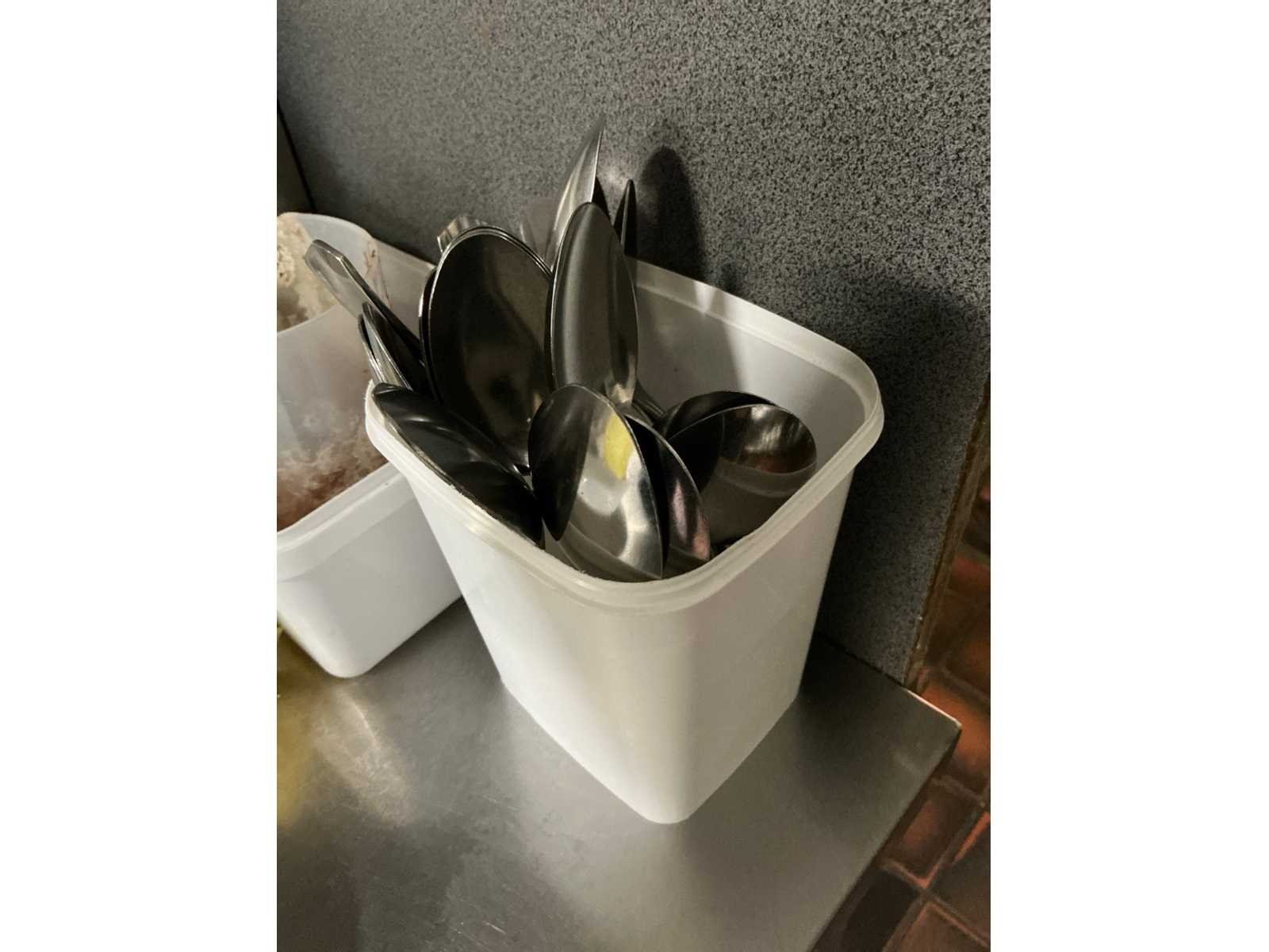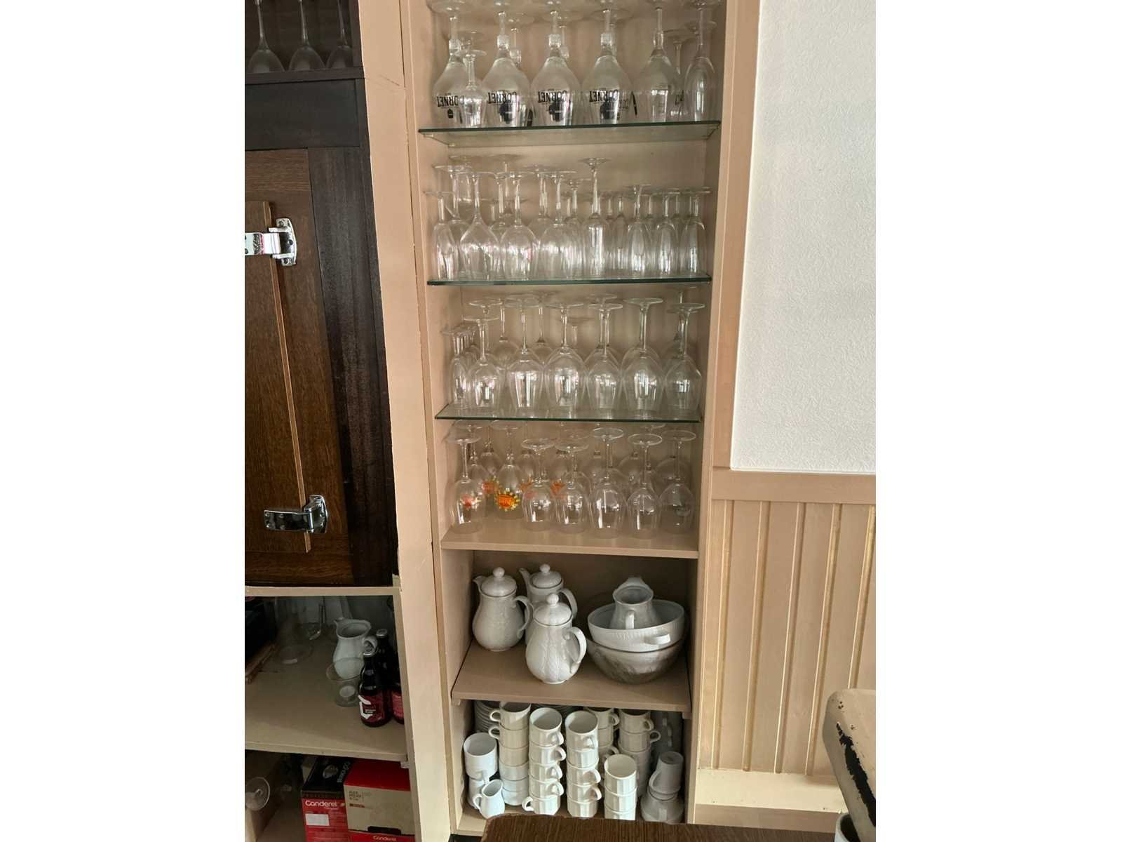Waaronder bestaande uit: Partij divers tafelporselein waaronder borden, kommen, sauskommetjes, schalen en tassen, Compleet met partij divers keukengerei waaronder messen, pollepels, gardes, schuimspanen en spatels, Enige kunststof opbergbakjes, 1 pvc afvalemmer en 1 pvc opstapje, 9 diverse ijscoupes en partij koks-/keukenlinnen, circa 70 divers bier- en wijnglazen, partij koffietassen, ondertassen en enige koffiekannen. Uitgezonderd genummerde kavels en eigendomsvoorbehoud, Afgifte volgens aanwijzing liggende in keuken doorgang en bar achteraan. Nee