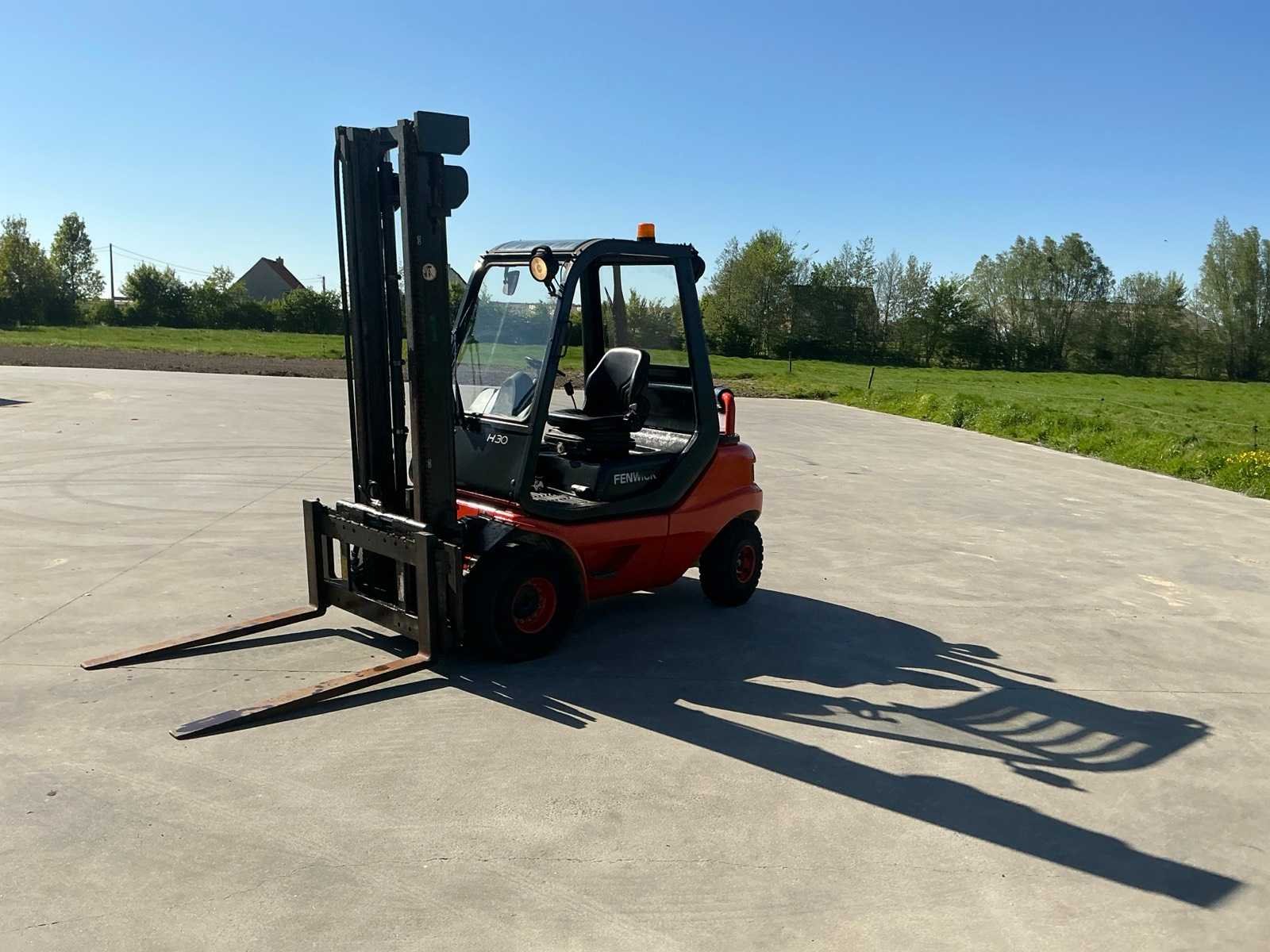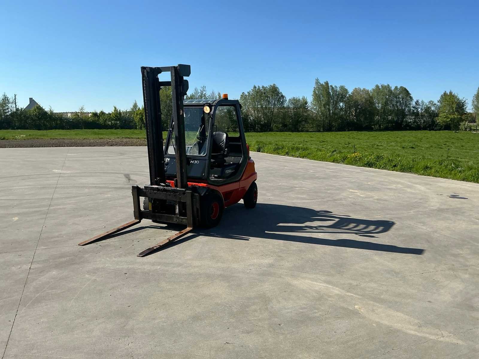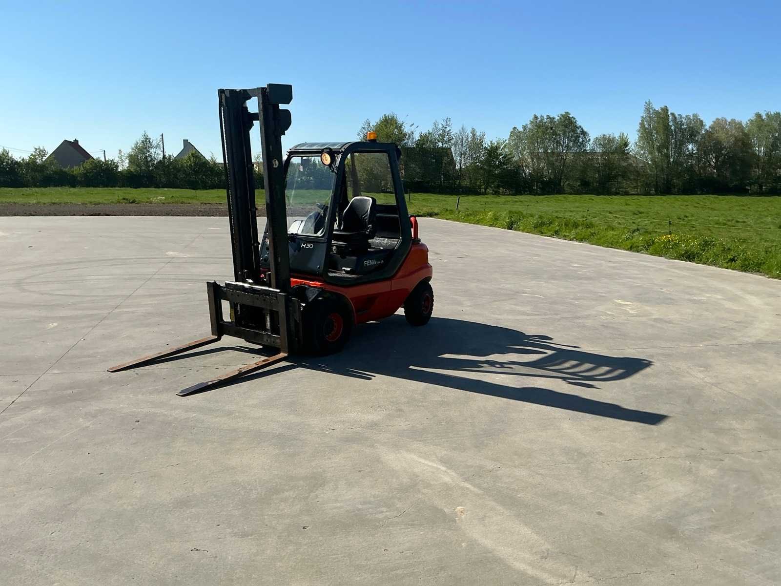 Werklichten voor en achter , flash light , geveerde stoel , Perkins motor Nee Merk: Linde Type: H30D-03 Bouwjaar: 2001 Serienummer: H2X351M03194 Brandstof: Diesel Mast: Duplex Soort band: Volrubber banden Aantal wielen: 4 Afgelezen urenstand: 4900 Side-shift: true Duplex mast: true Eigen gewicht: 5100kg Hefvermogen: 3000kg Lepellengte: 1200mm Min. hefhoogte: 0mm Hefhoogte: 4000mm Vol rubber banden: true Totale afmeting L: 3000mm Totale afmeting Breedte: 1250mm Totale afmeting Hoogte: 2700mm Diesel: true Leveringsvoorwaarden: Gratis op vrachtwagen