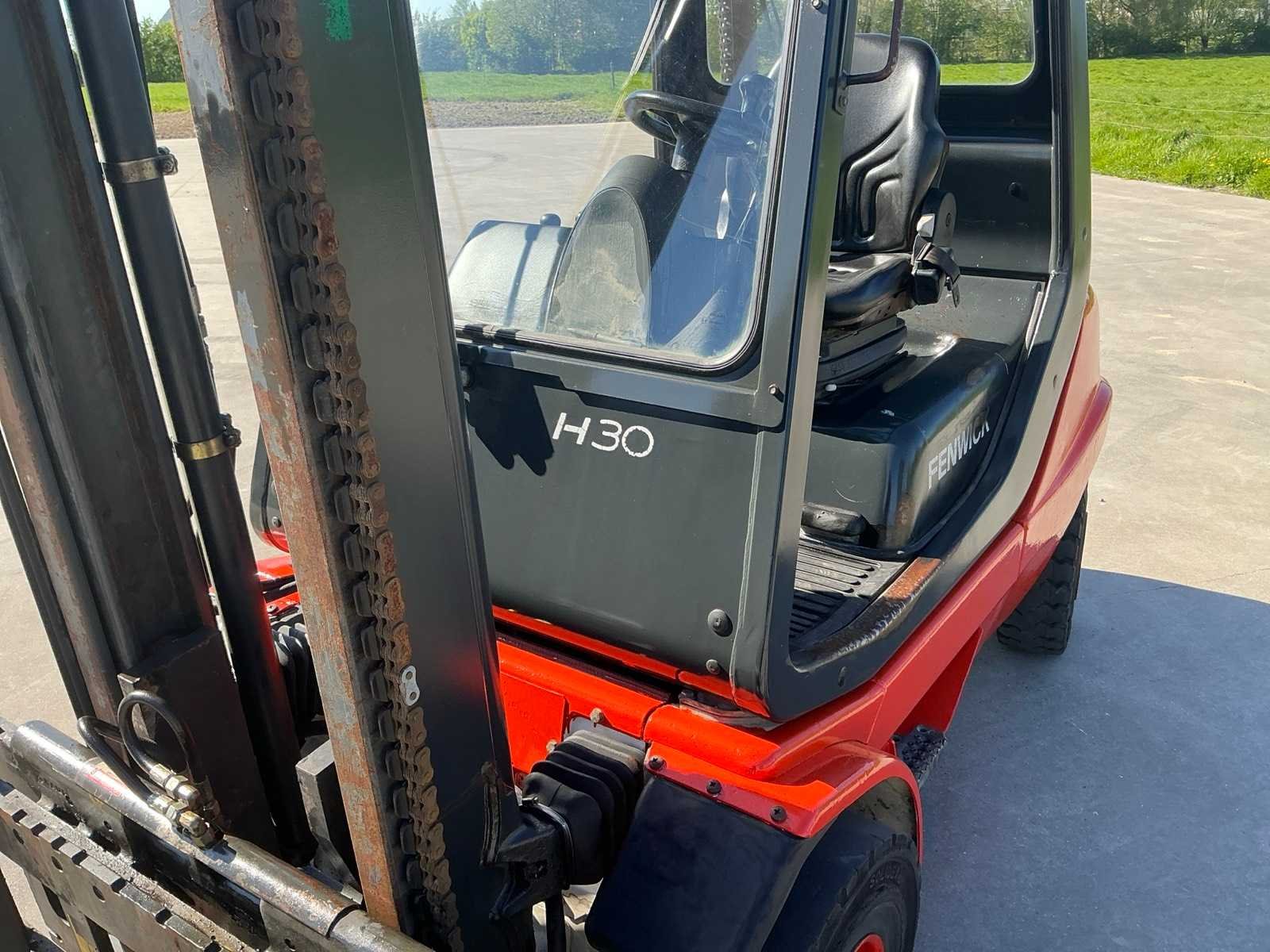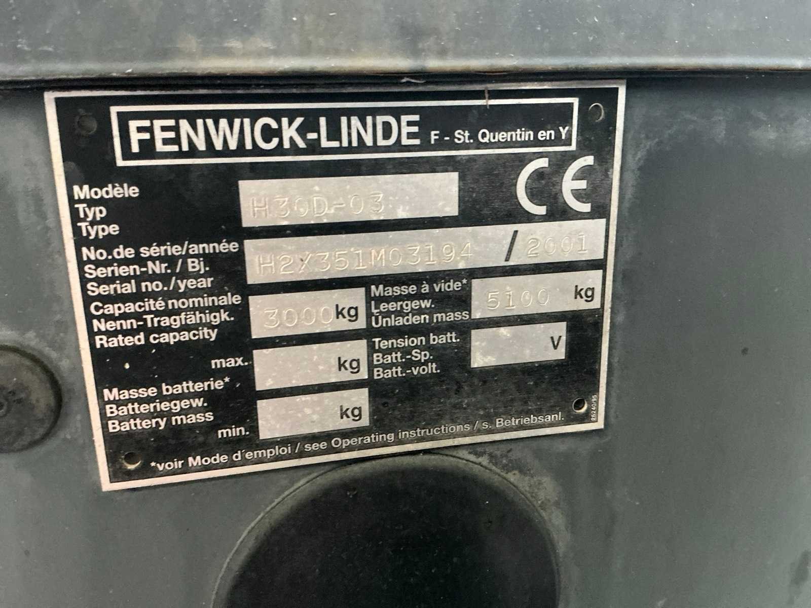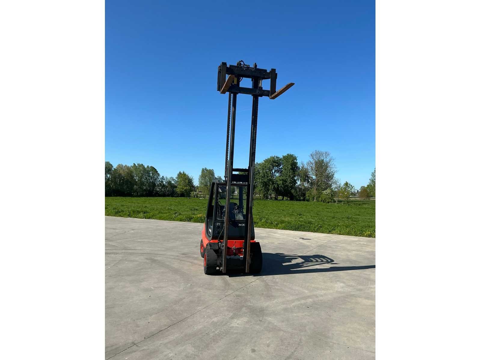 Werklichten voor en achter , flash light , geveerde stoel , Perkins motor Nee Merk: Linde Type: H30D-03 Bouwjaar: 2001 Serienummer: H2X351M03194 Brandstof: Diesel Mast: Duplex Soort band: Volrubber banden Aantal wielen: 4 Afgelezen urenstand: 4900 Side-shift: true Duplex mast: true Eigen gewicht: 5100kg Hefvermogen: 3000kg Lepellengte: 1200mm Min. hefhoogte: 0mm Hefhoogte: 4000mm Vol rubber banden: true Totale afmeting L: 3000mm Totale afmeting Breedte: 1250mm Totale afmeting Hoogte: 2700mm Diesel: true Leveringsvoorwaarden: Gratis op vrachtwagen